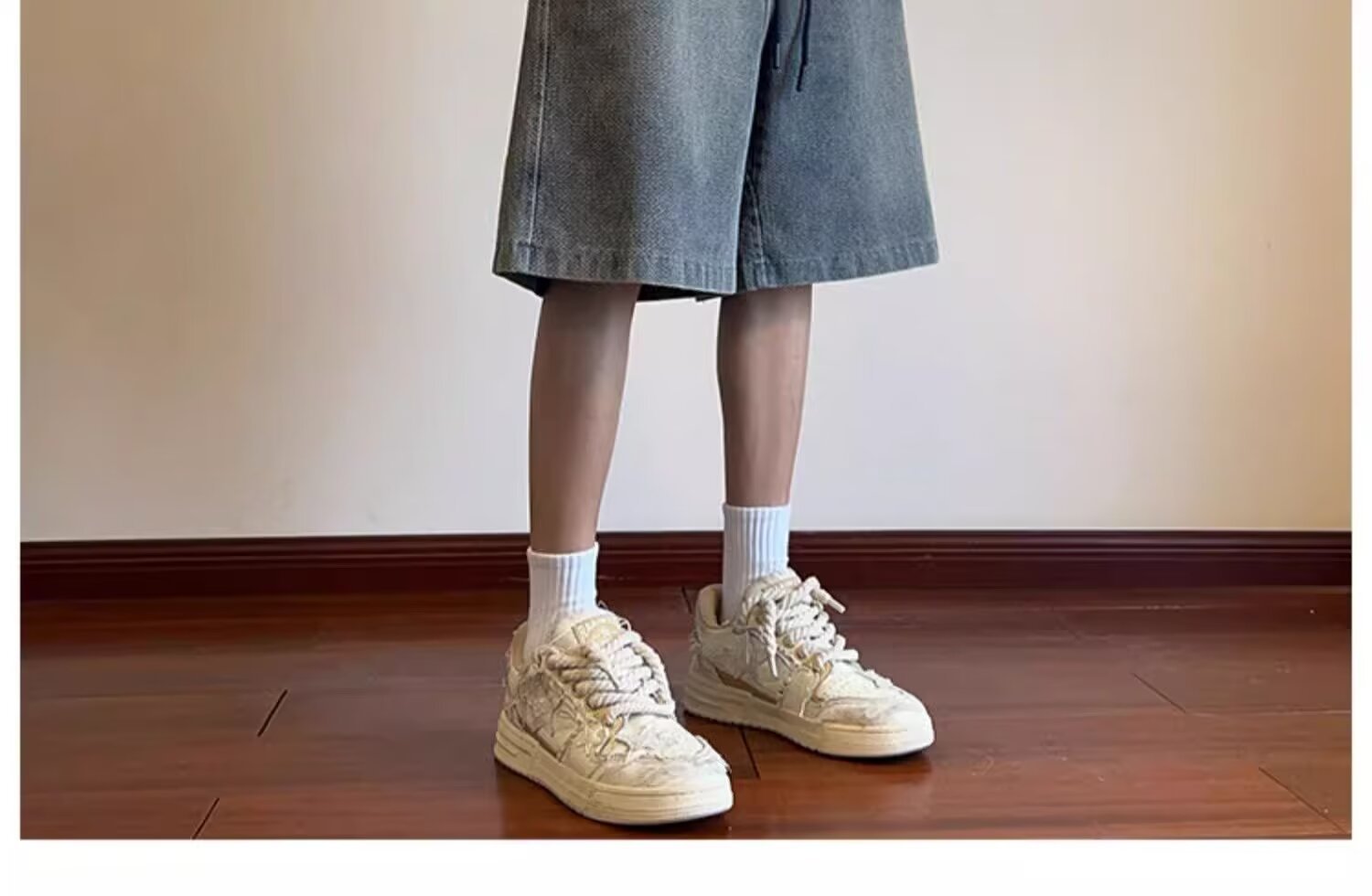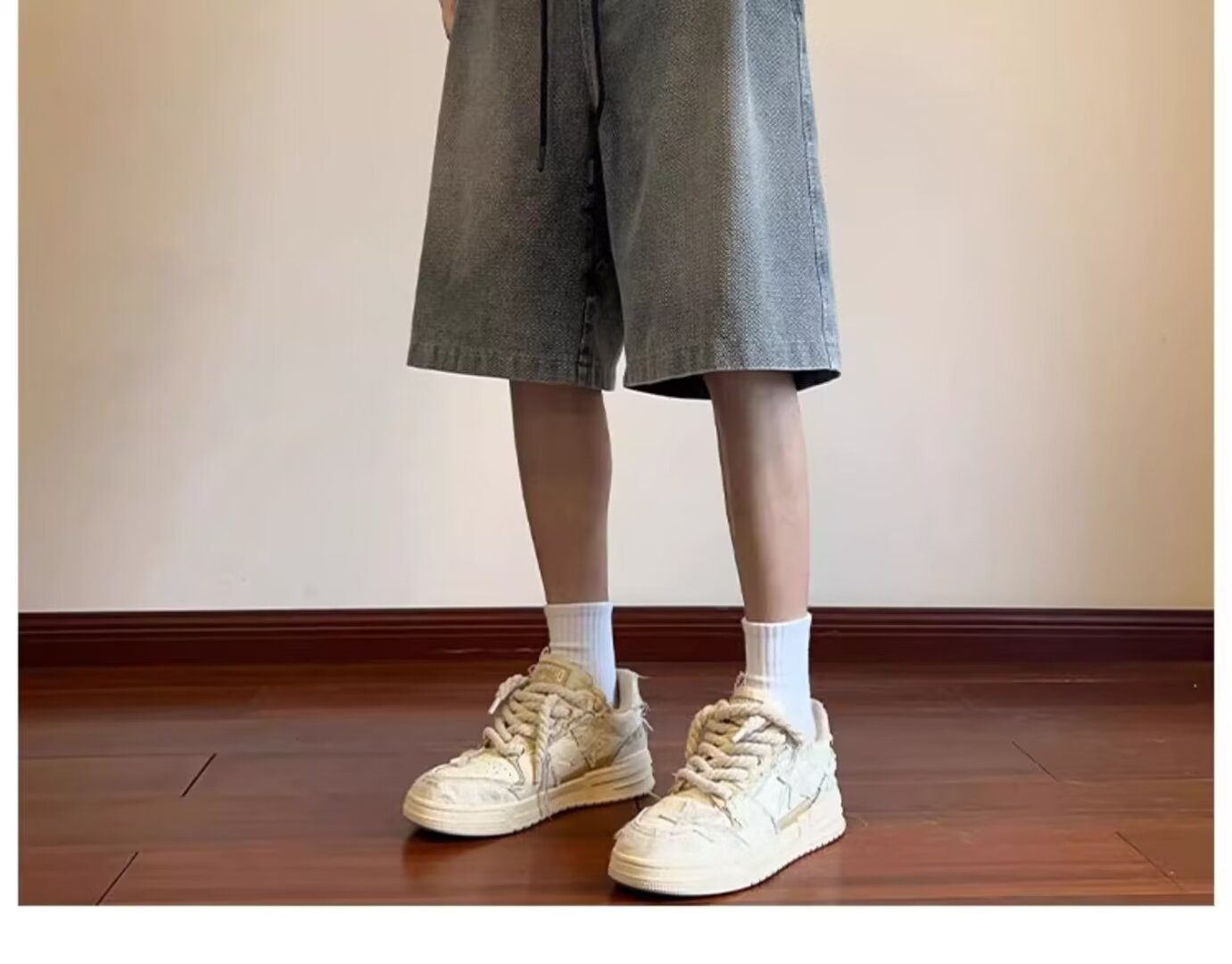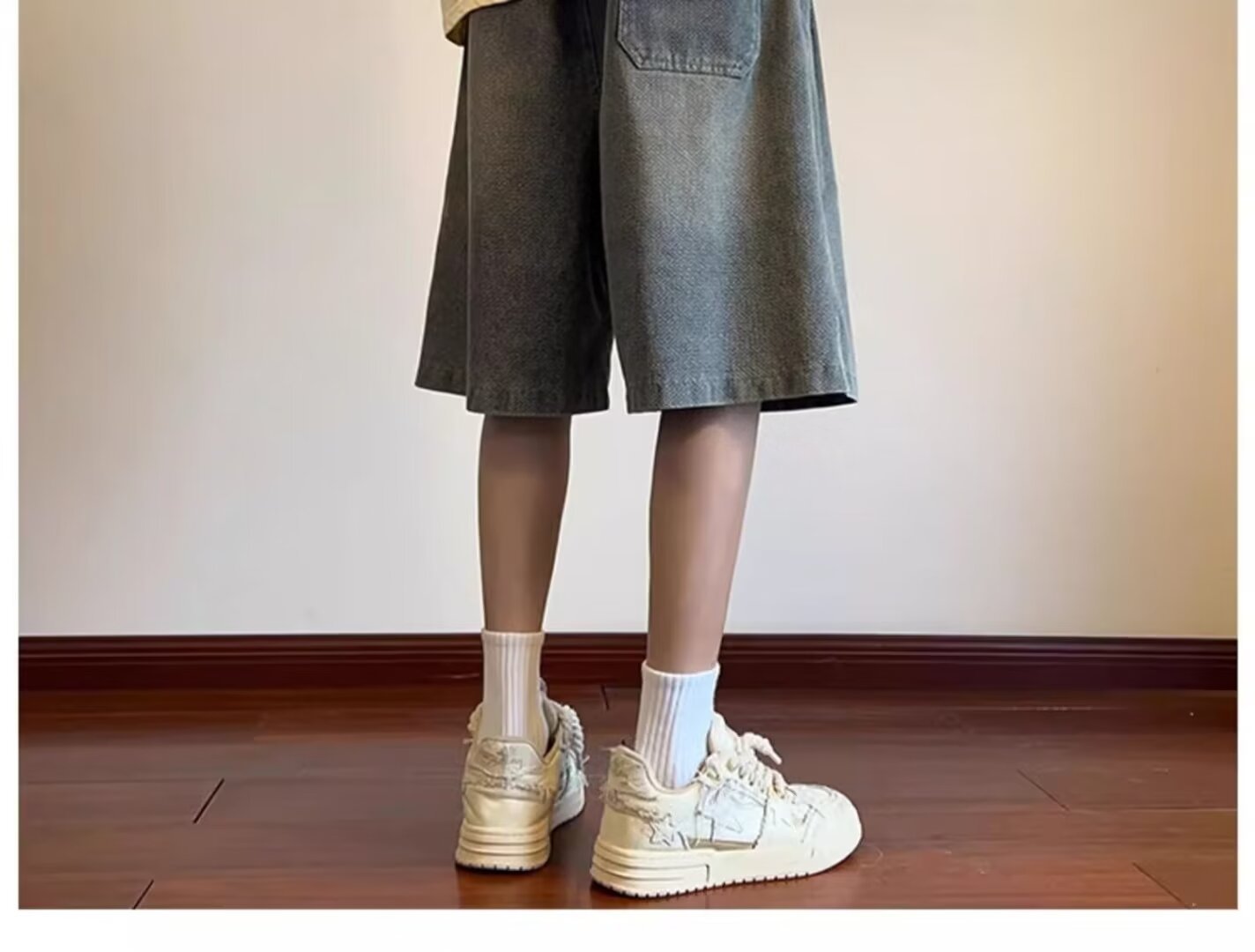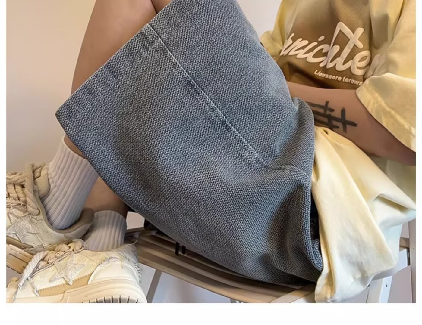 Moda japonesa cityboy pantalones cortos de mezclilla azul de cinco puntos pantalones sueltos rectos de moda de verano para hombres