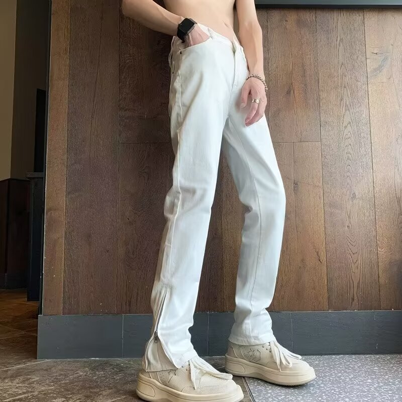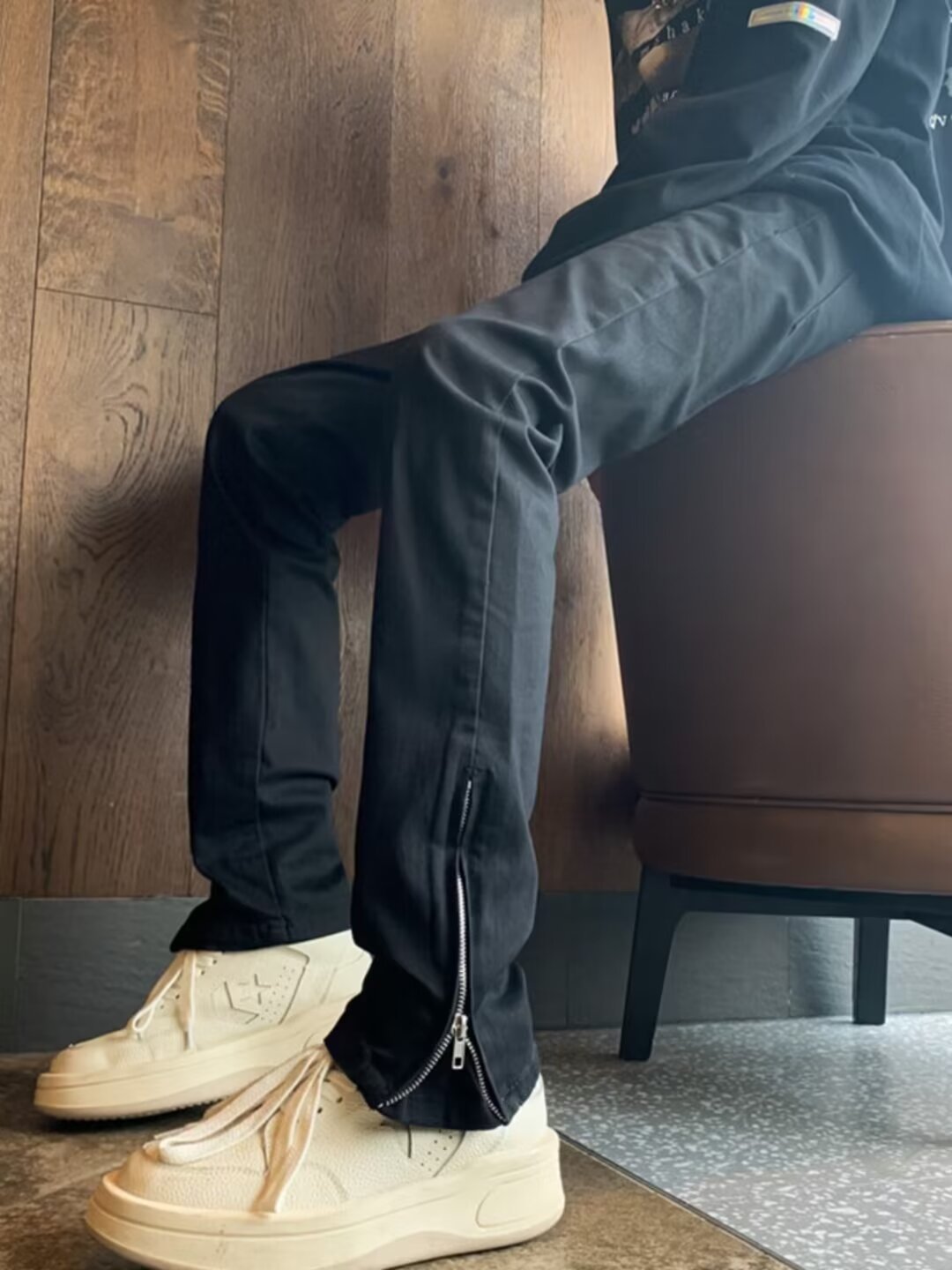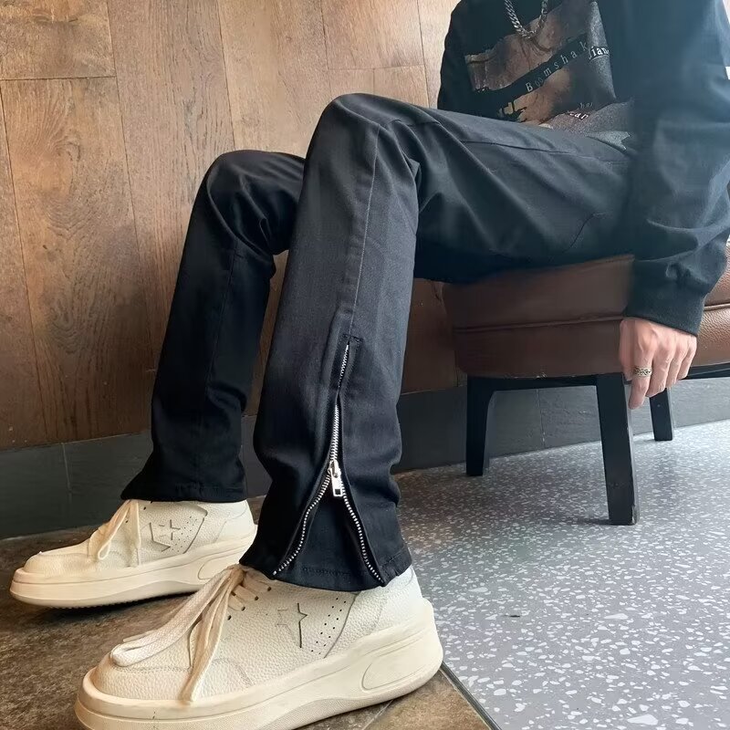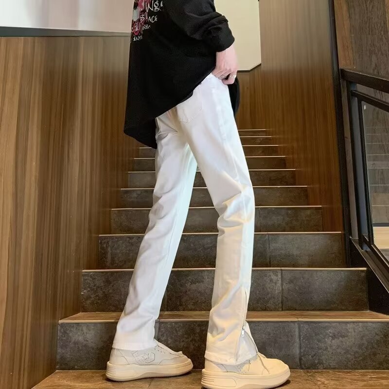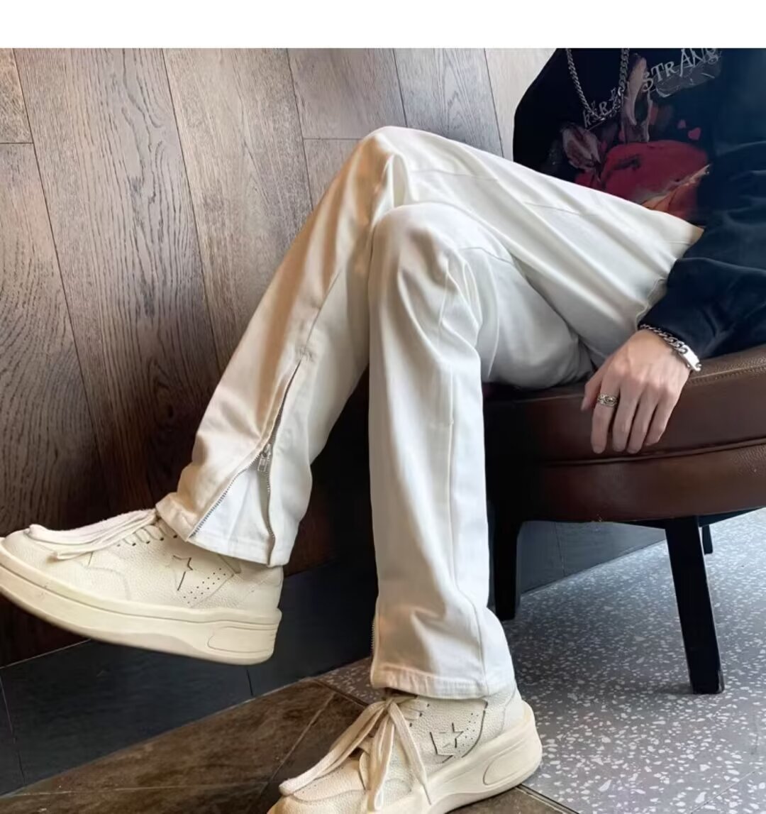 Pantalones vaqueros rasgados viejos lavados de la calle americana primavera y otoño de los hombres pantalones largos de estilo vibe de la calle alta de la moda recta suelta