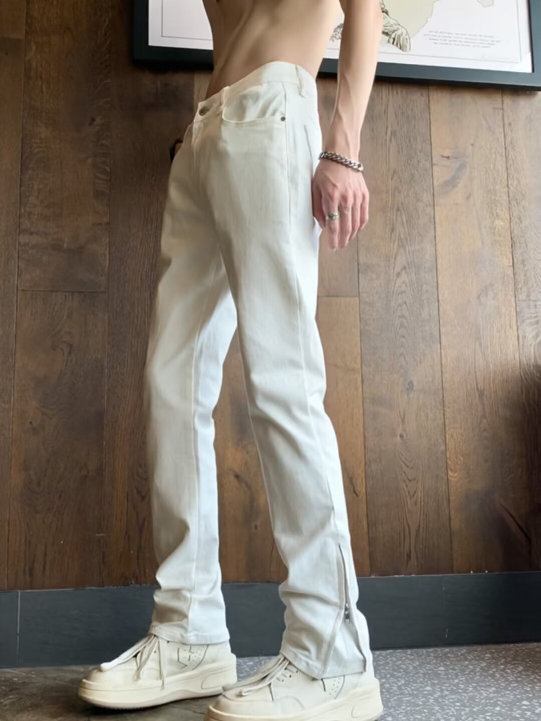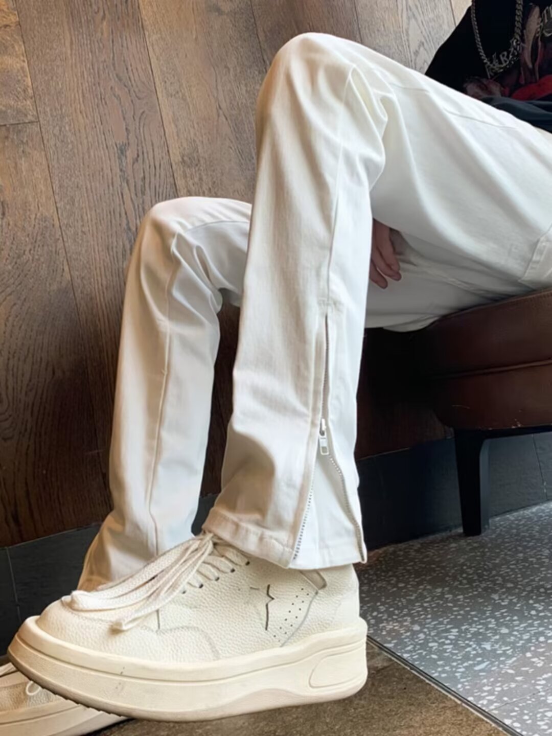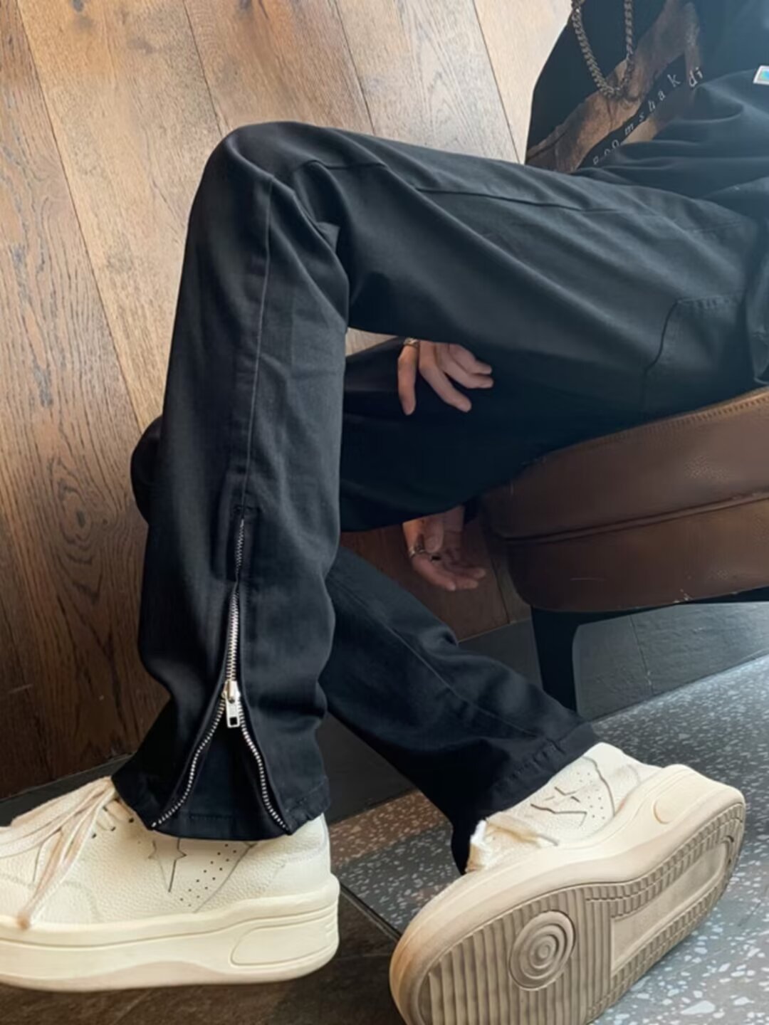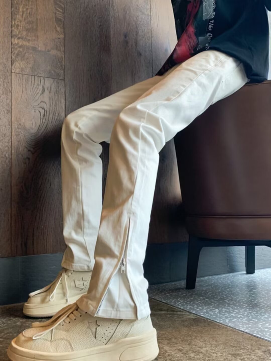 Pantalones vaqueros rasgados viejos lavados de la calle americana primavera y otoño de los hombres pantalones largos de estilo vibe de la calle alta de la moda recta suelta