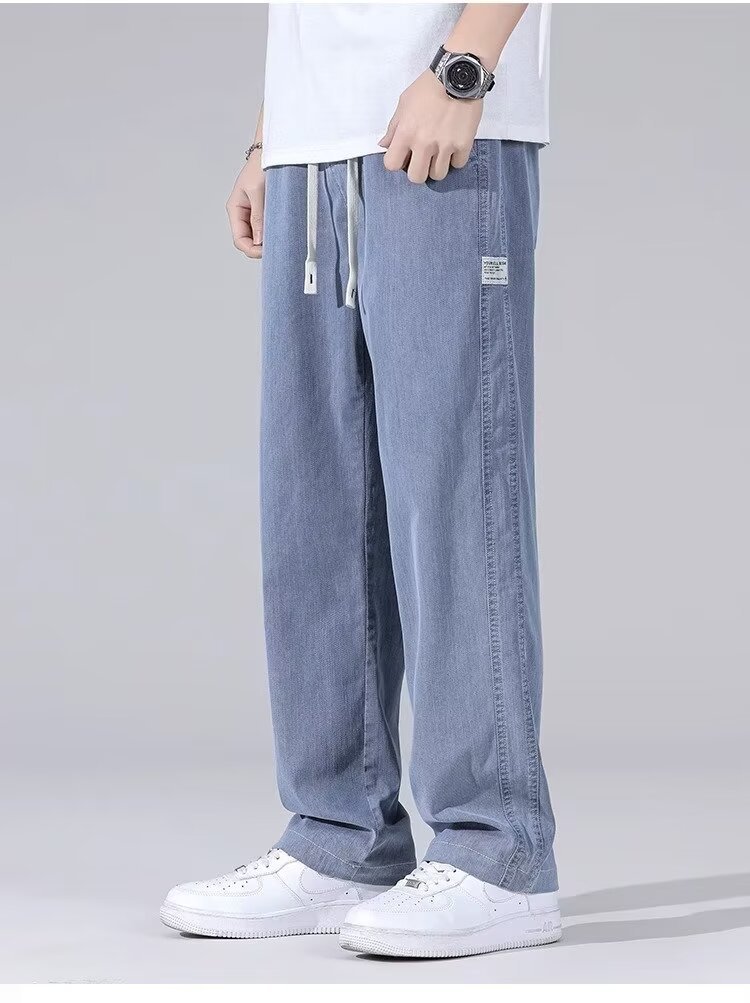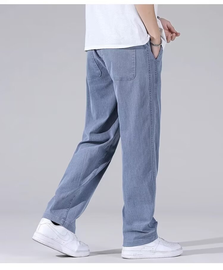 Moda y popular pantalones de mezclilla ajustados de pies pequeños para hombres marca de moda joven social micro-elástico pantalones casuales 2024