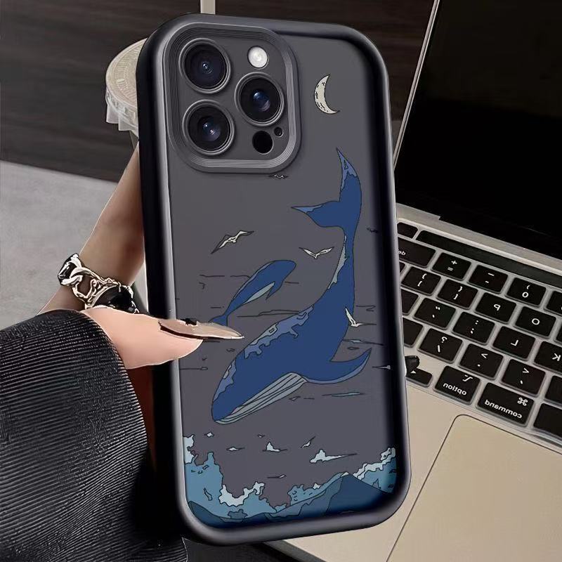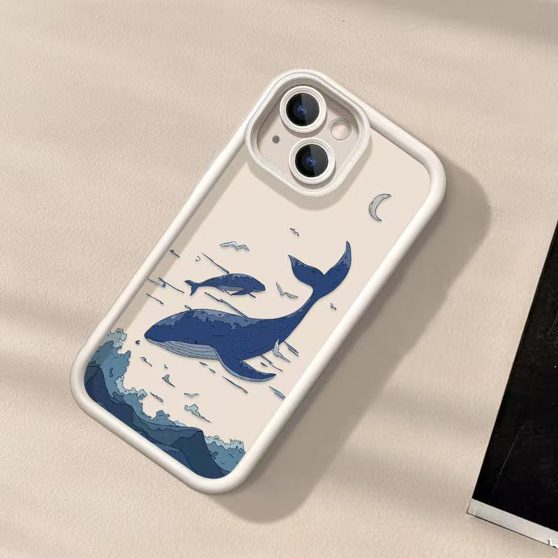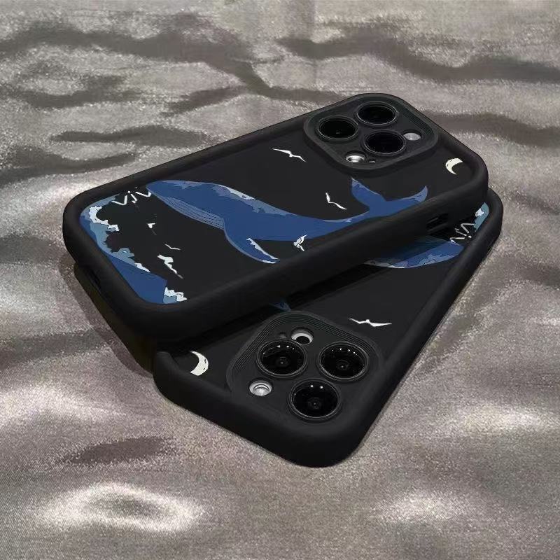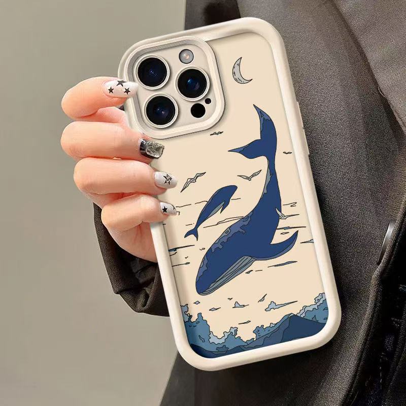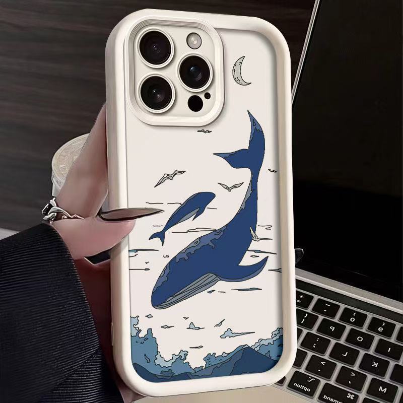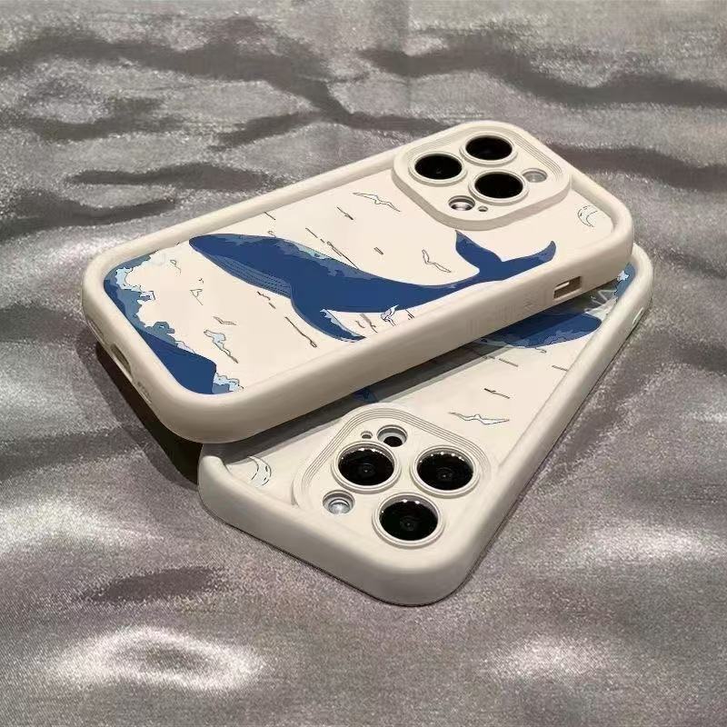 Sky Blue Whale para iPhone 16pro funda para teléfono móvil Apple 15 anti-caída 14 Europa y América 13promax nuevo 12x