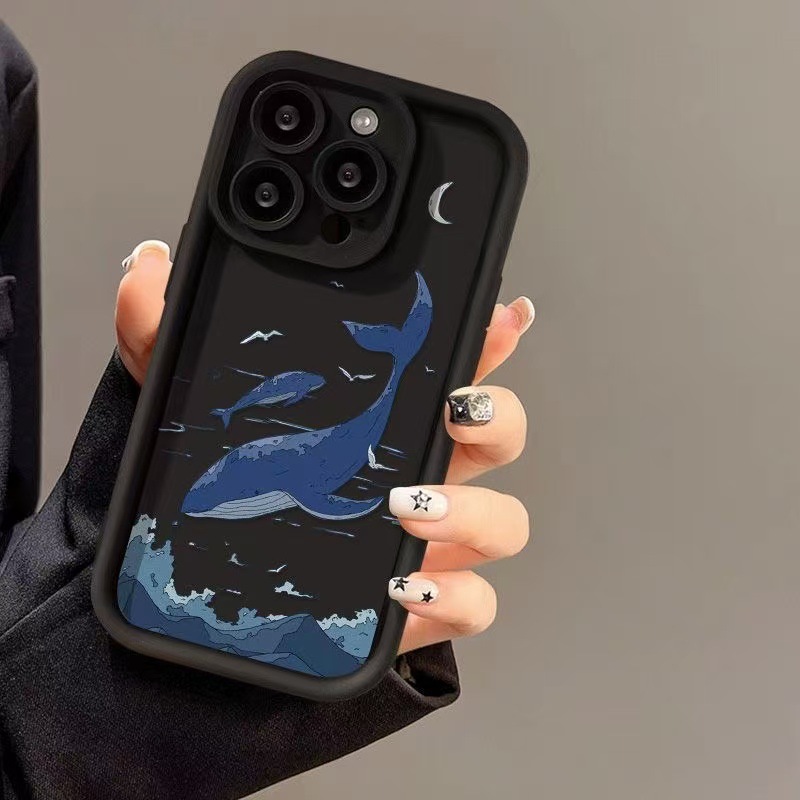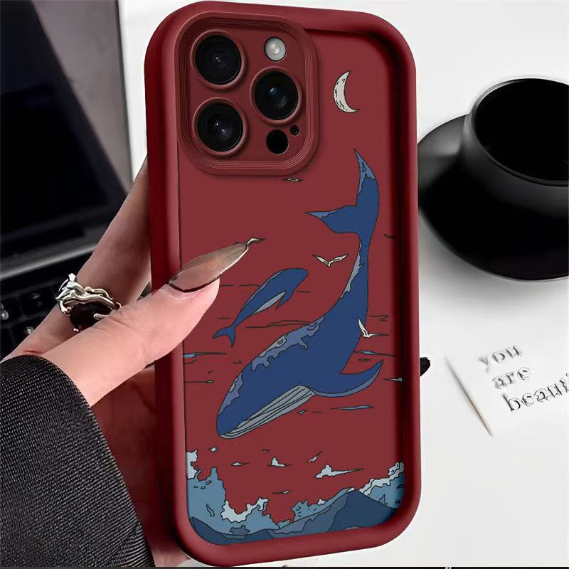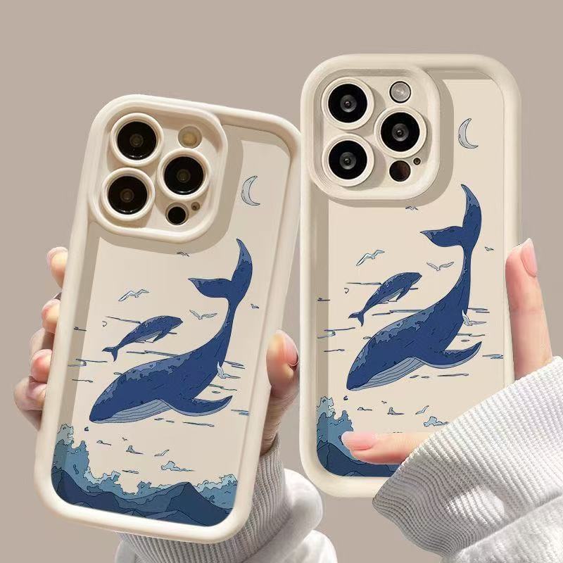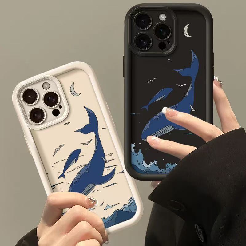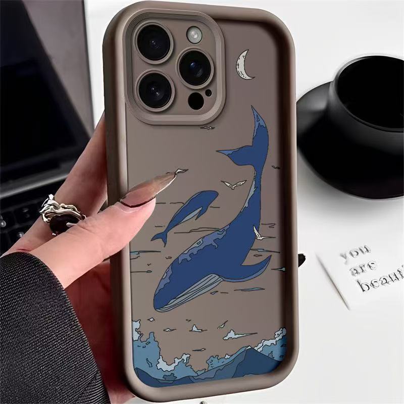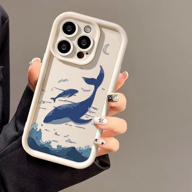 Sky Blue Whale para iPhone 16pro funda para teléfono móvil Apple 15 anti-caída 14 Europa y América 13promax nuevo 12x