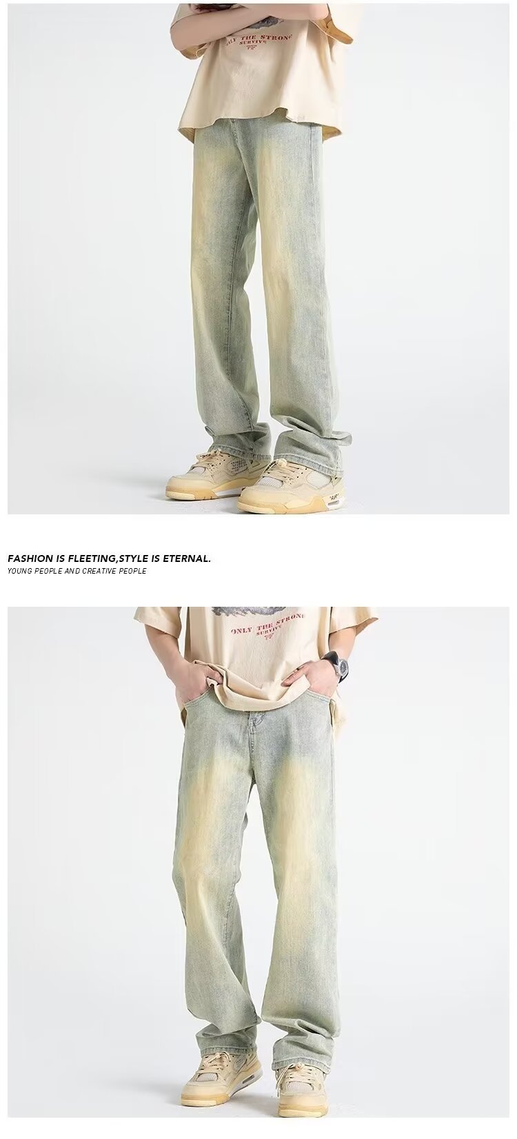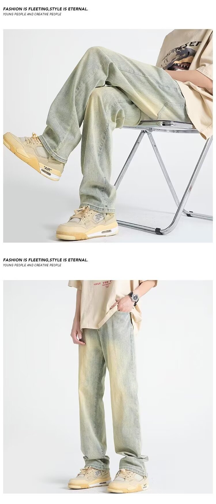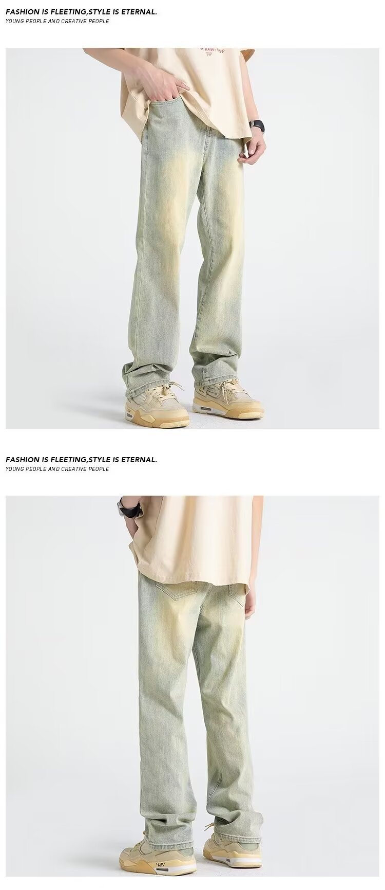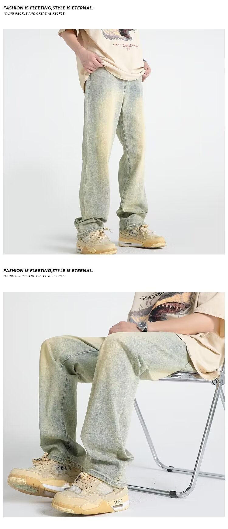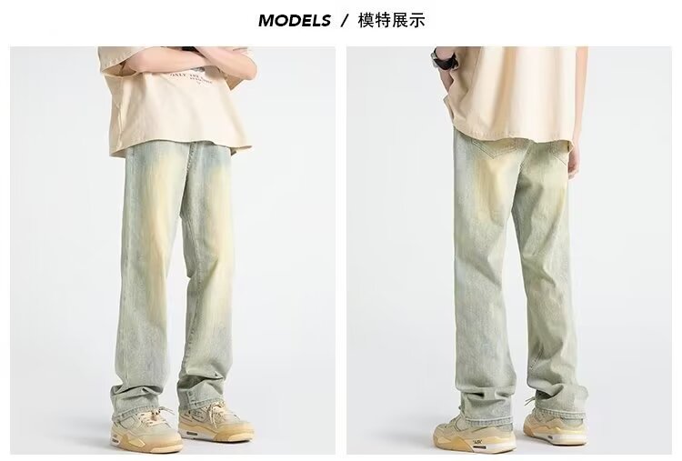 Vaqueros vintage desgastados, marca de moda de otoño para hombres, pantalones anchos de trapeador sueltos rectos y guapos de la calle alta americana