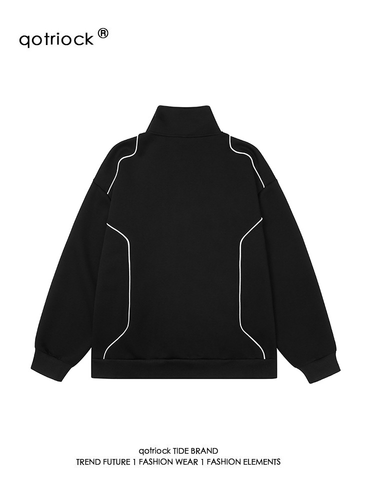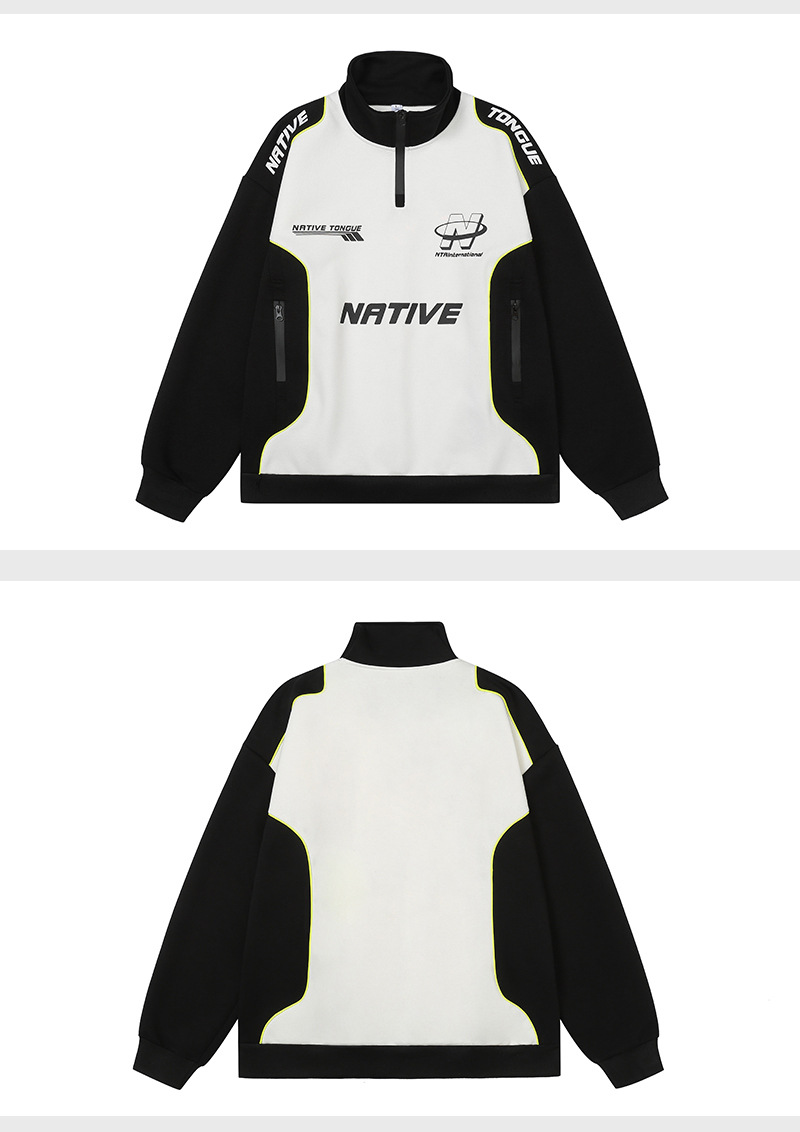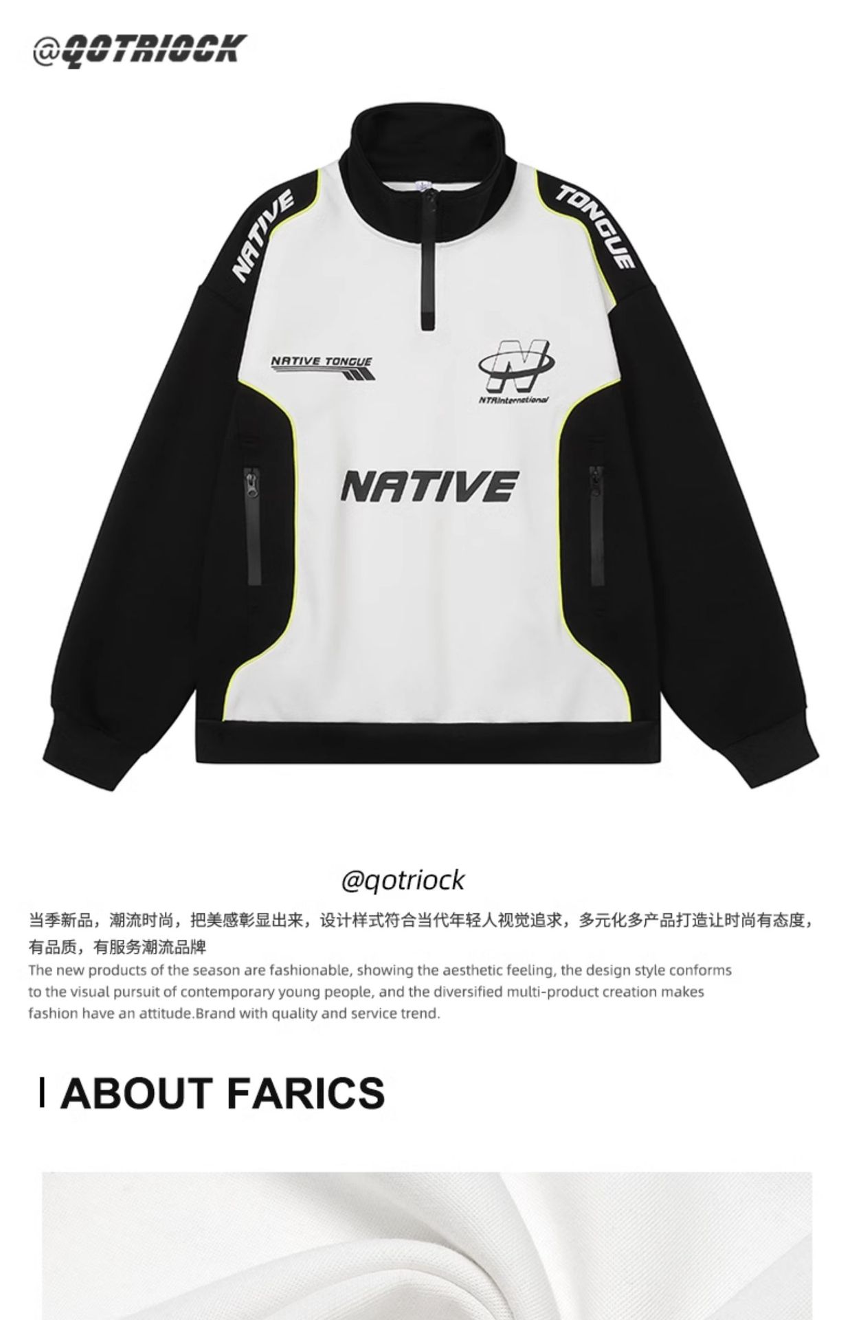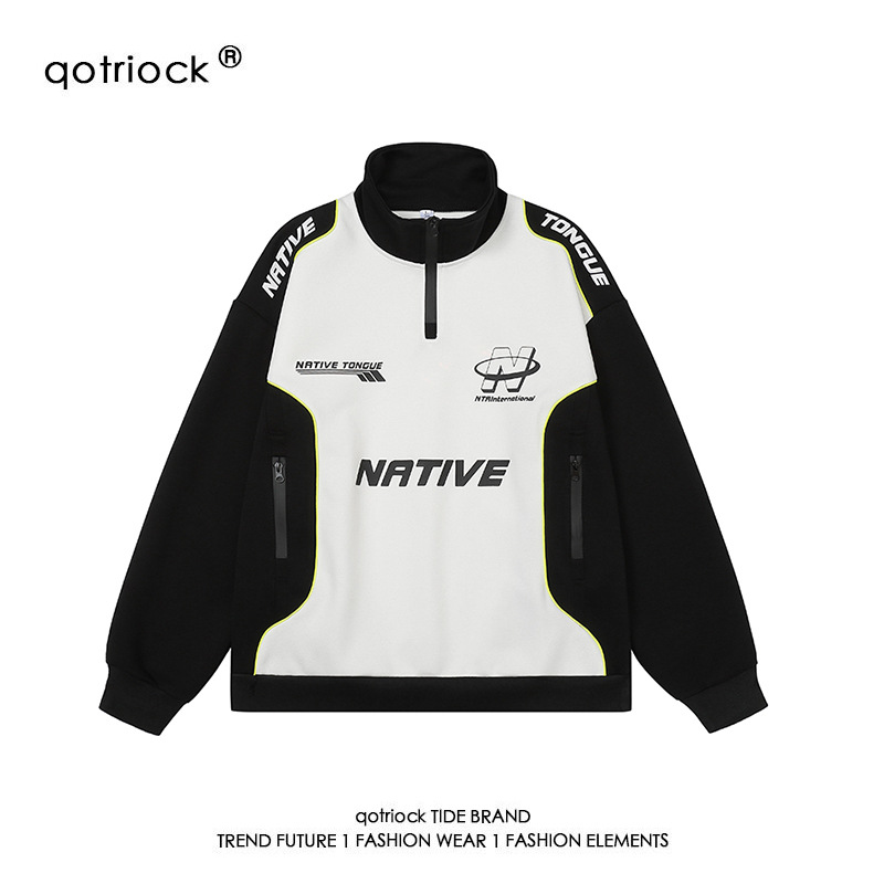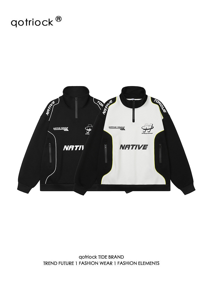 American Retro Letter Fashion Color a juego de carreras Suéter Marca de moda para hombres Chaqueta superior suelta de cuello alto de la calle
