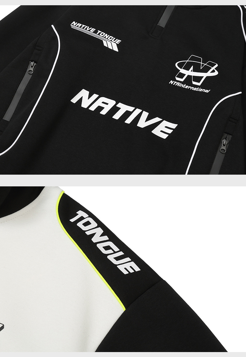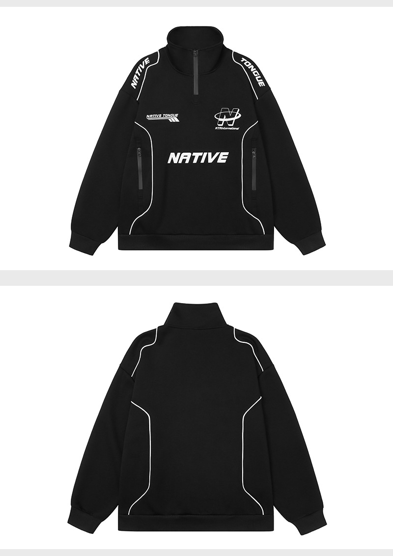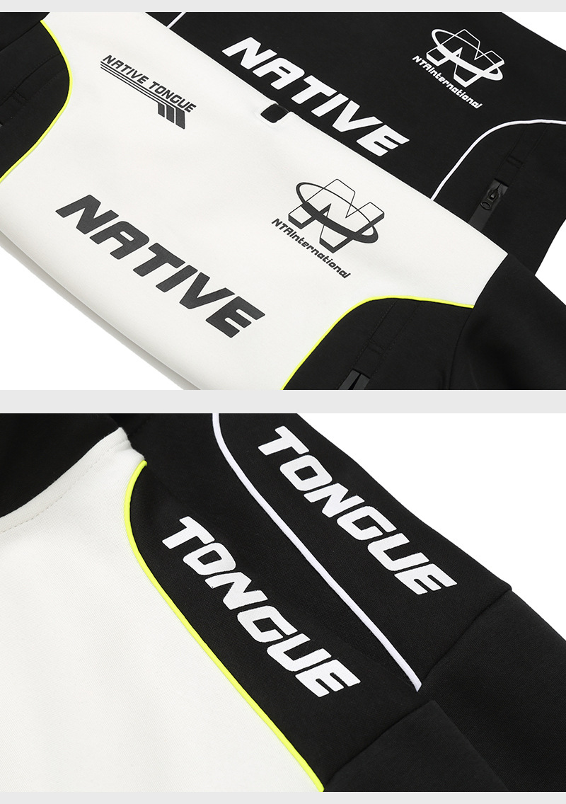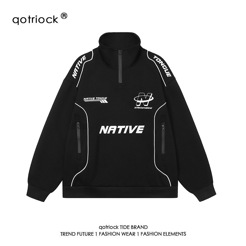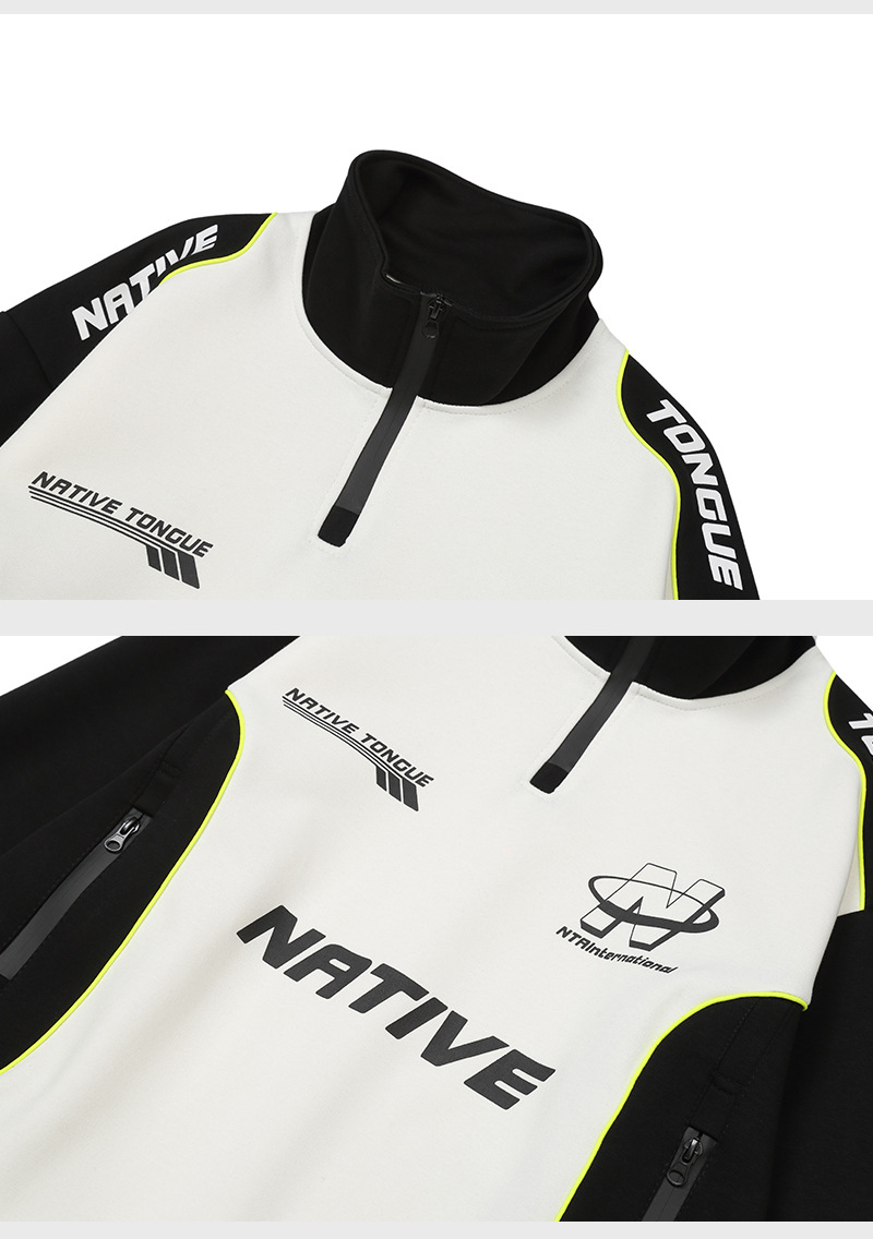 American Retro Letter Fashion Color a juego de carreras Suéter Marca de moda para hombres Chaqueta superior suelta de cuello alto de la calle