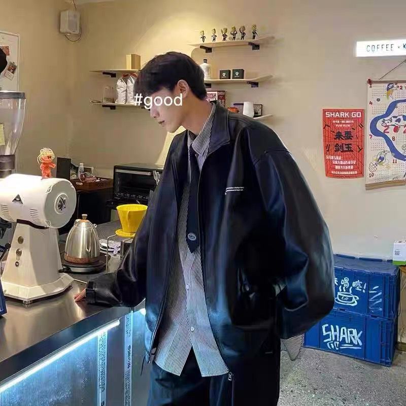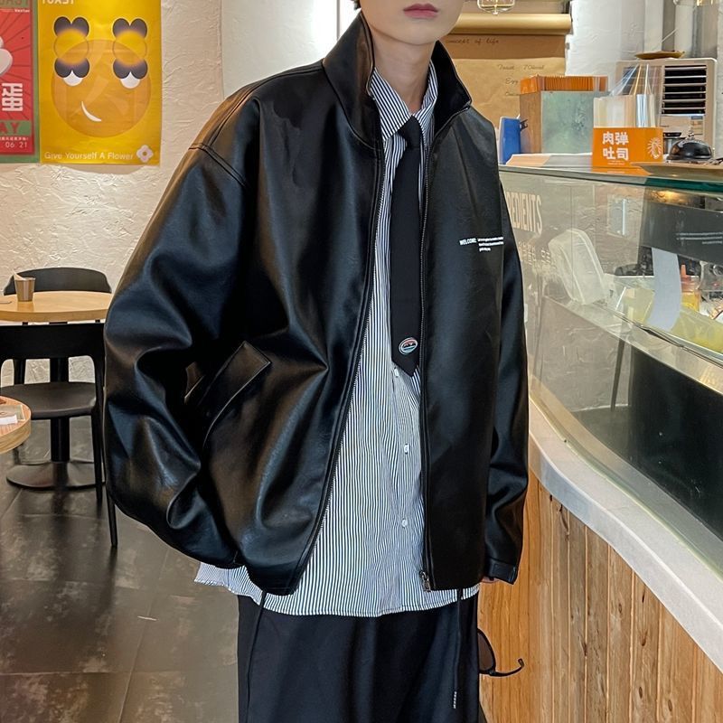 PY2105 estilo explosivo chaqueta de cuero con costuras de mezclilla de calidad original más chaqueta de cuero gruesa de terciopelo tiene grandes productos P155