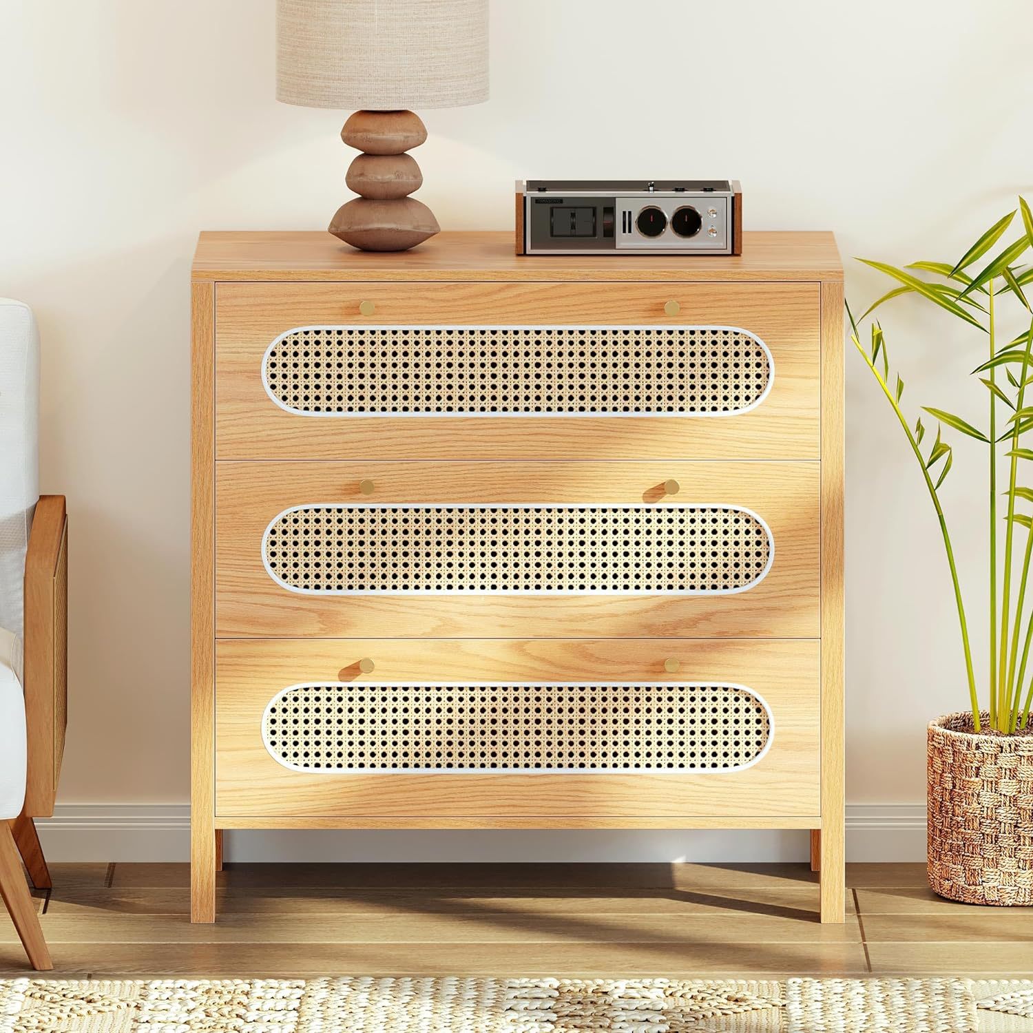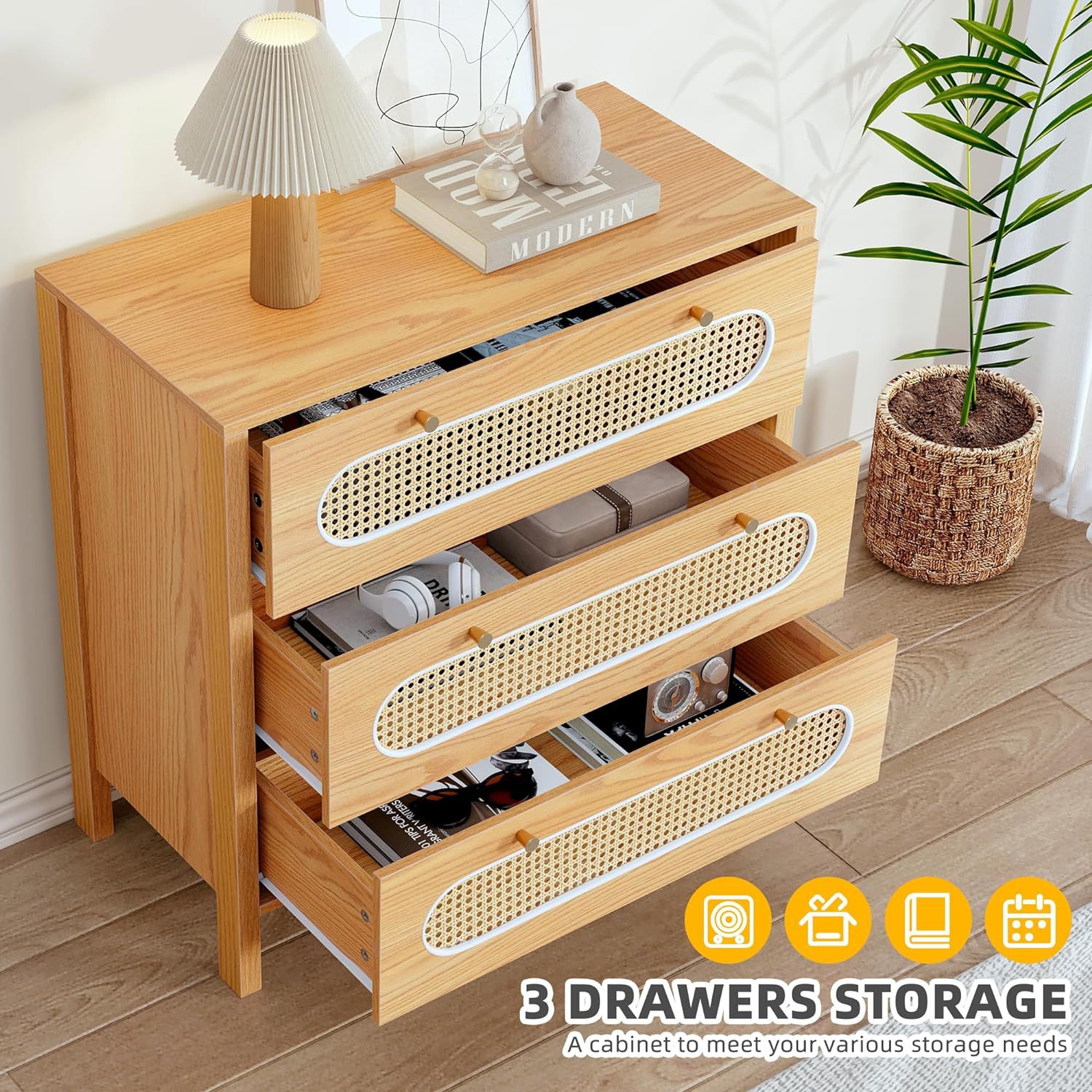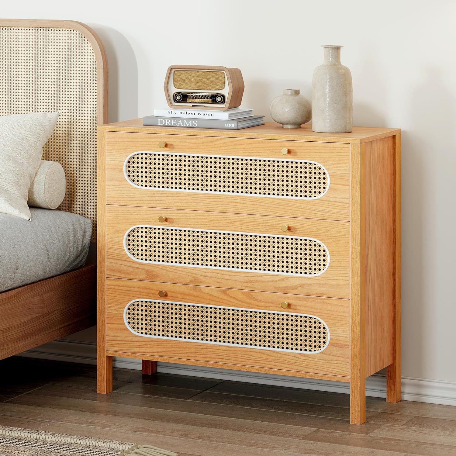 Wardrobe de caña moderna 3 cajones Wardrobe de caña Wardrobe Wardrobe Entrada de vestuario Oficina en casa