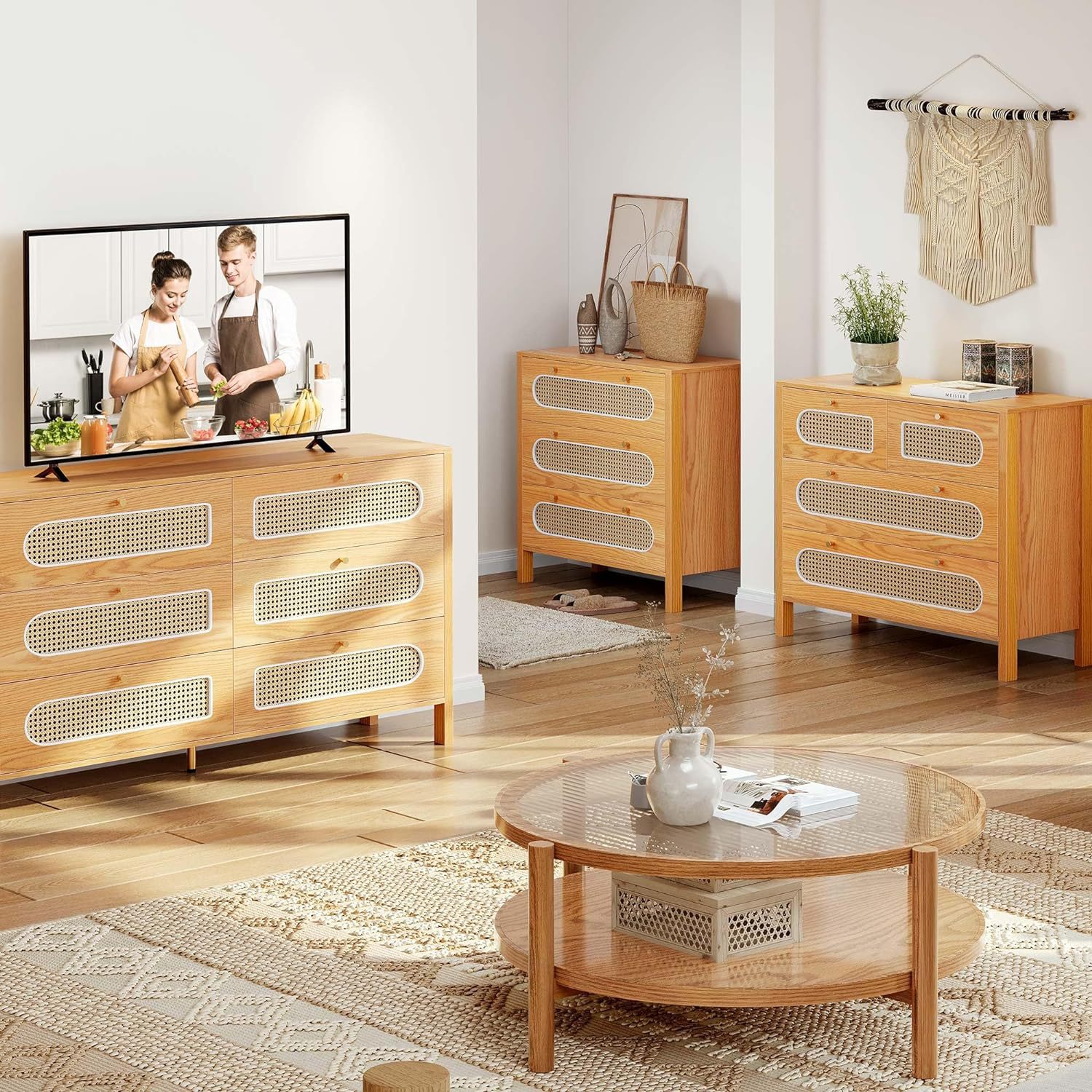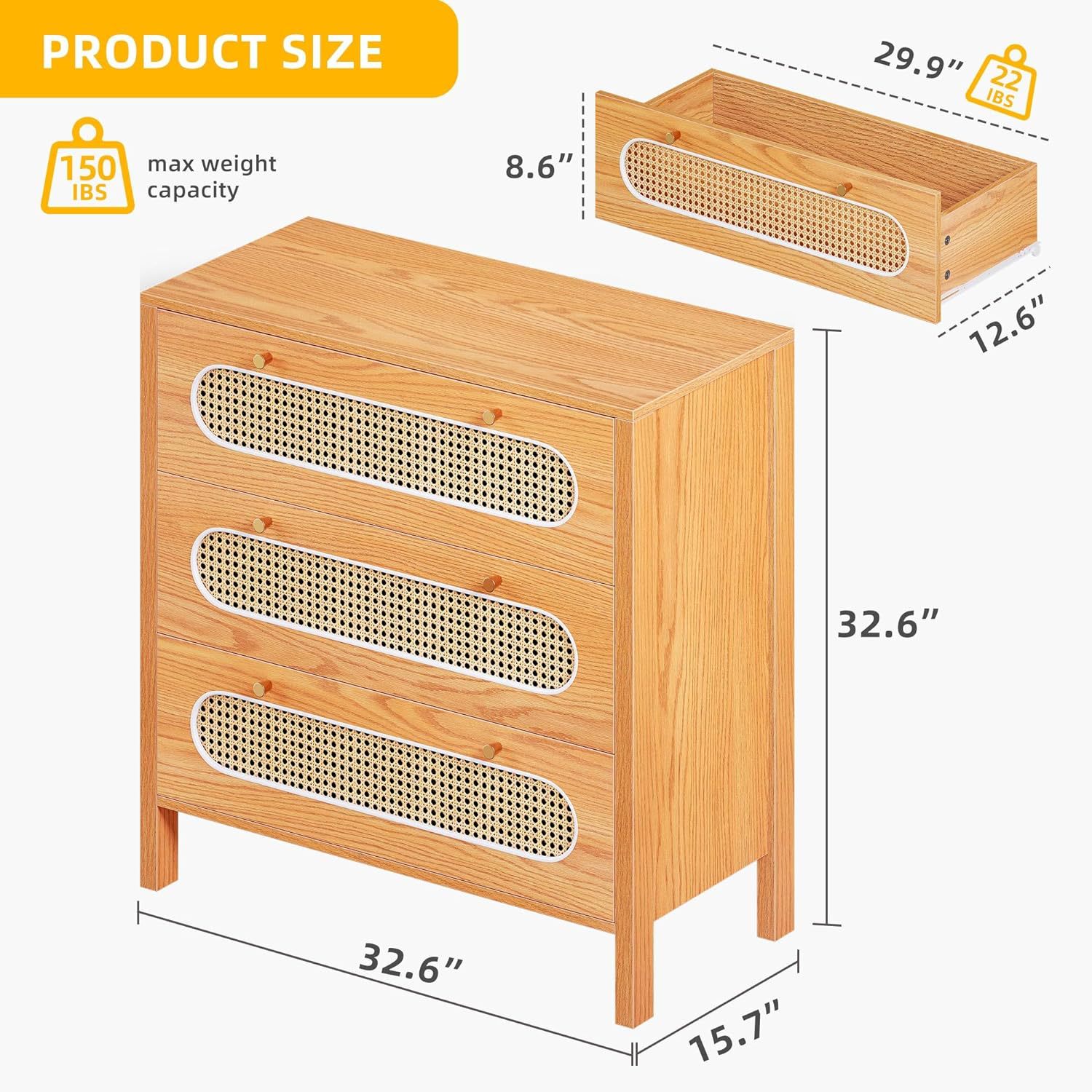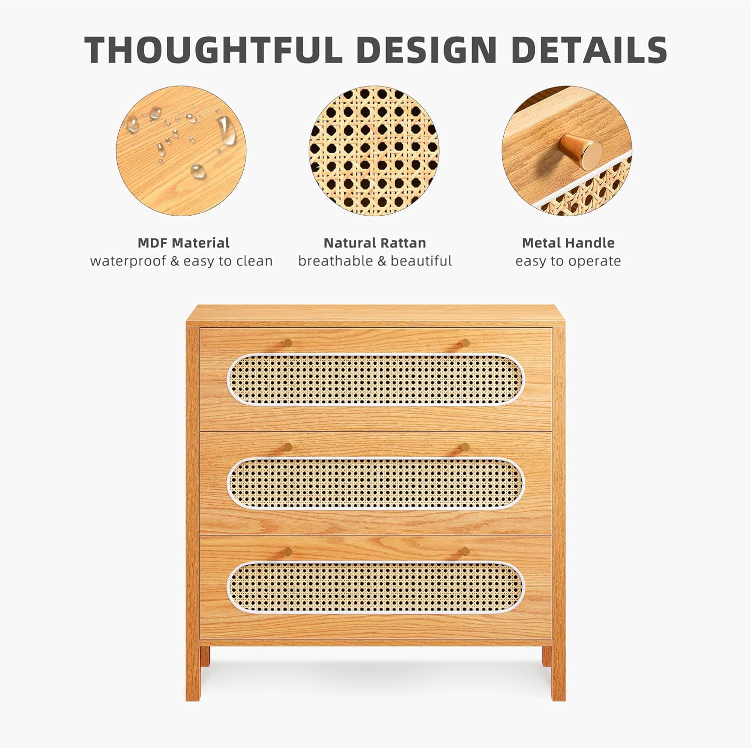 Wardrobe de caña moderna 3 cajones Wardrobe de caña Wardrobe Wardrobe Entrada de vestuario Oficina en casa