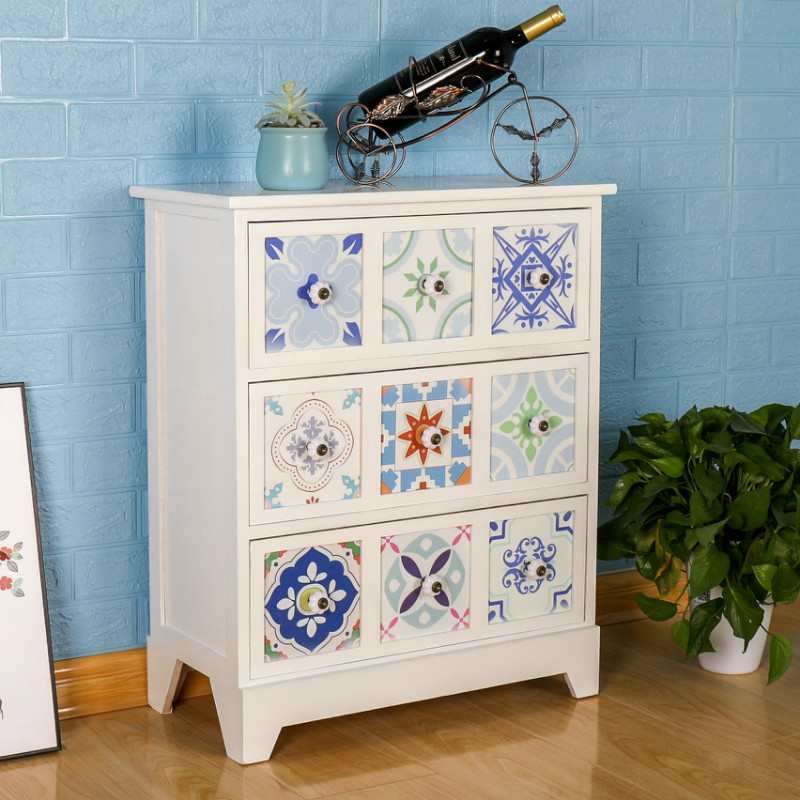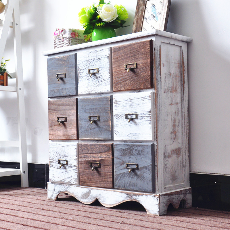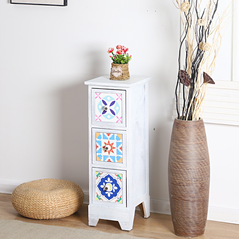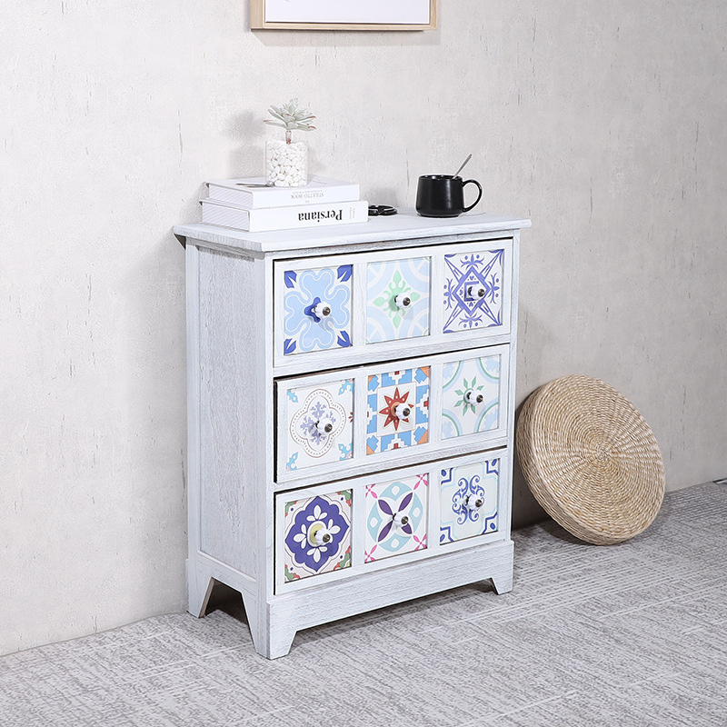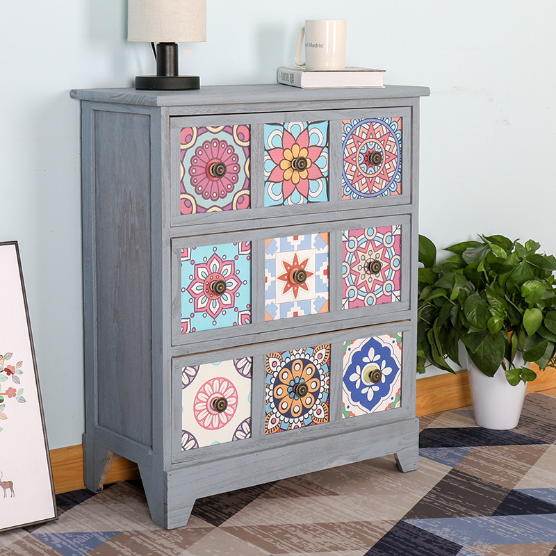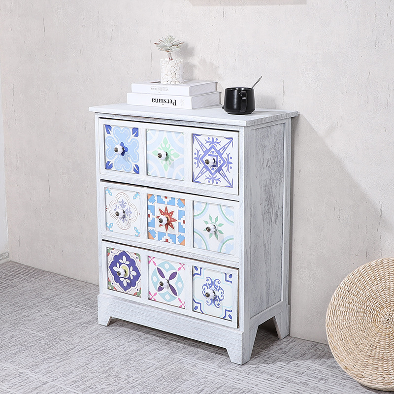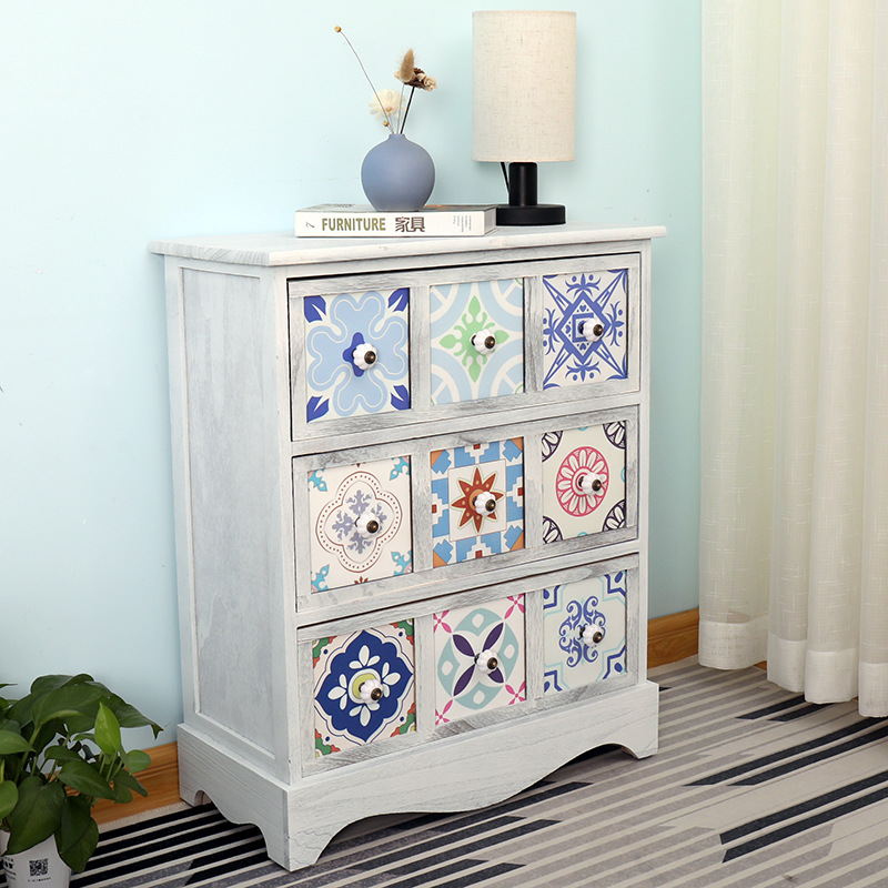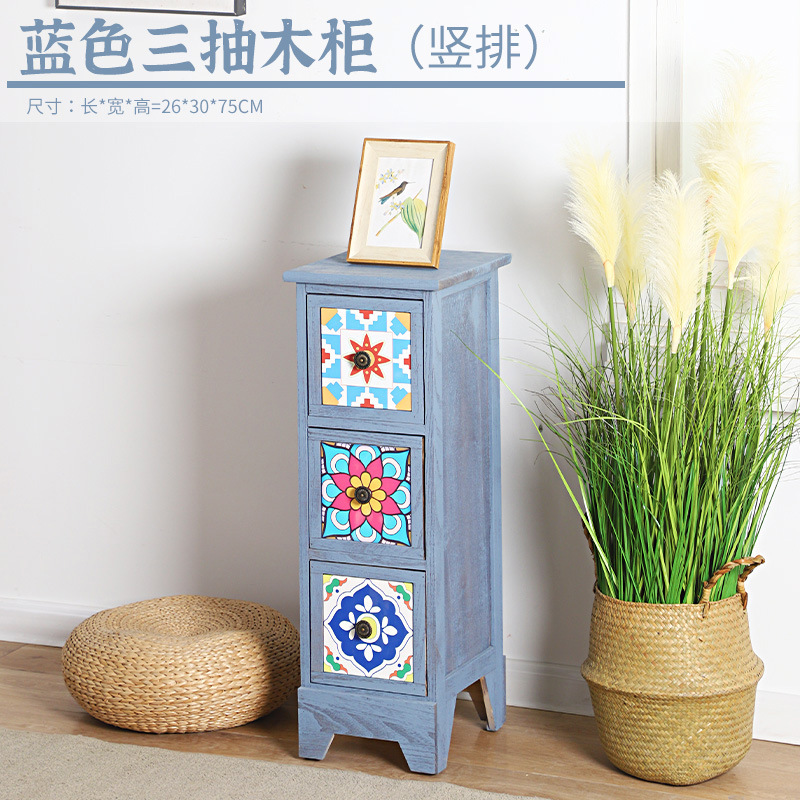 Mesita de noche americana, armario de almacenamiento creativo pastoral retro, armario de almacenamiento de madera, armario de almacenamiento de estilo étnico pintado