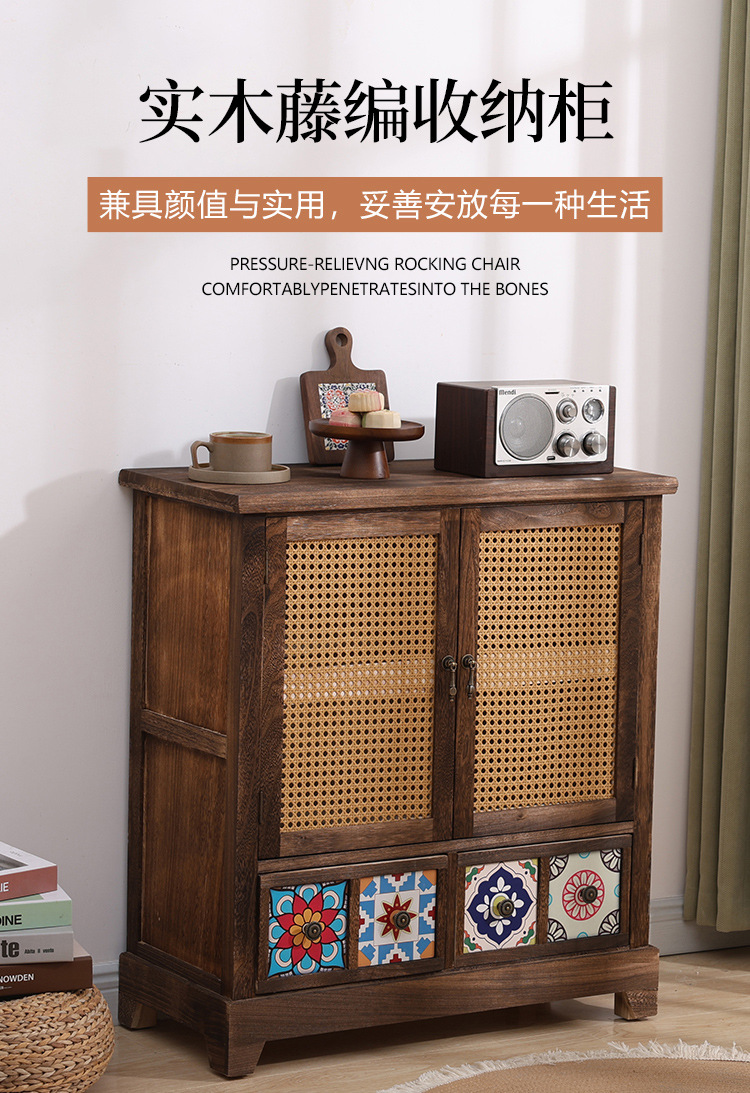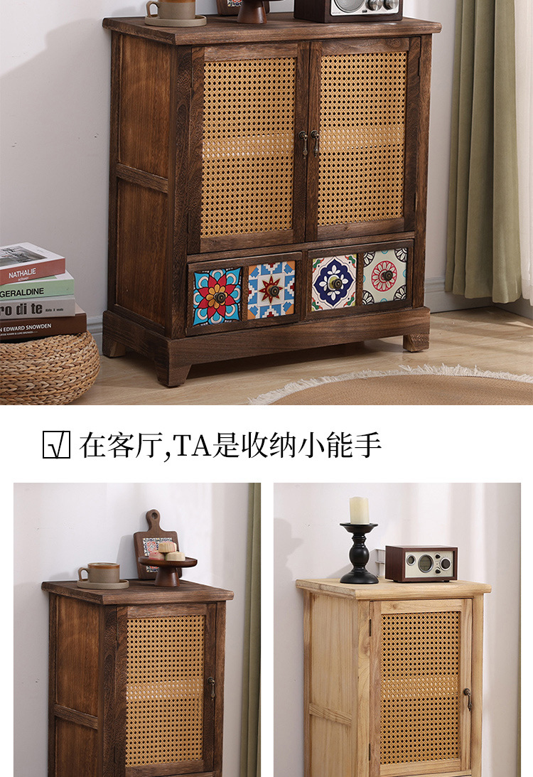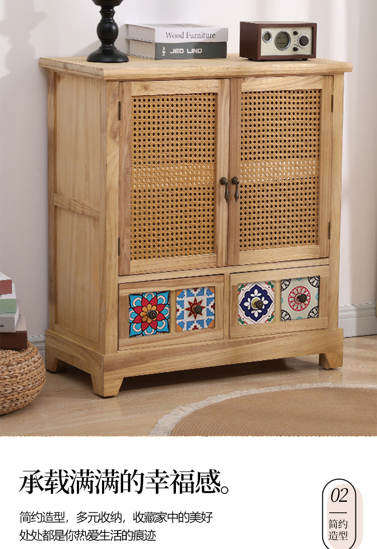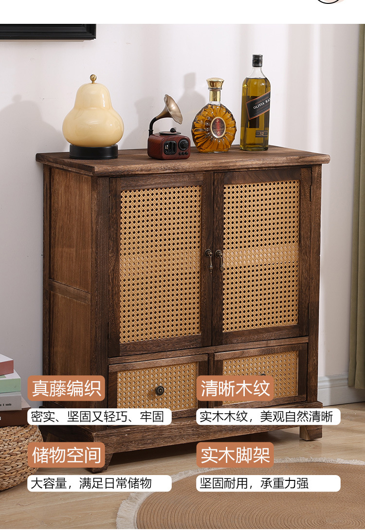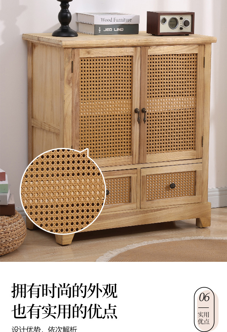 Armario nórdico armario de almacenamiento de ratán de madera maciza sala de estar armario de porche moderno simple armario de almacenamiento de apartamento pequeño armario de zapatos armario lateral