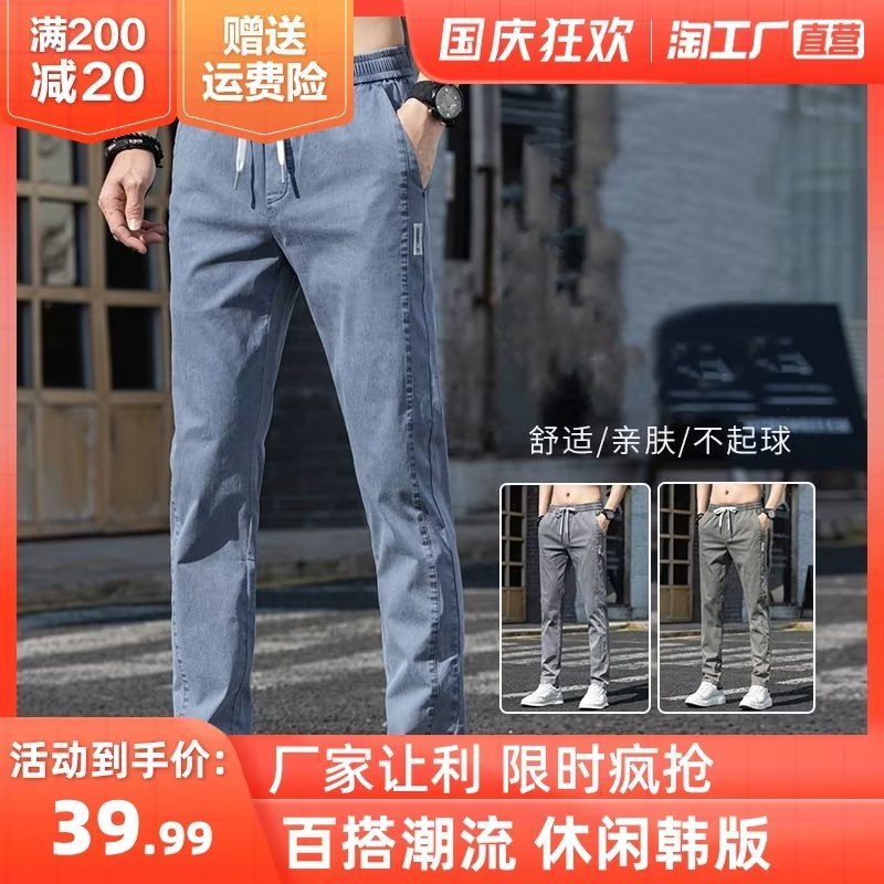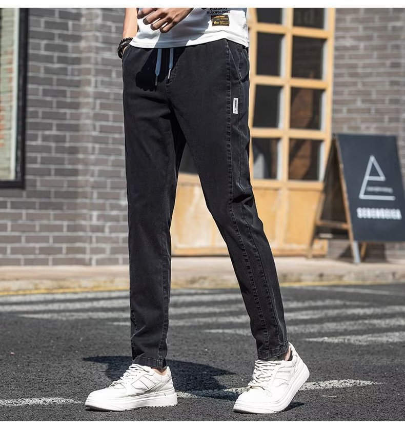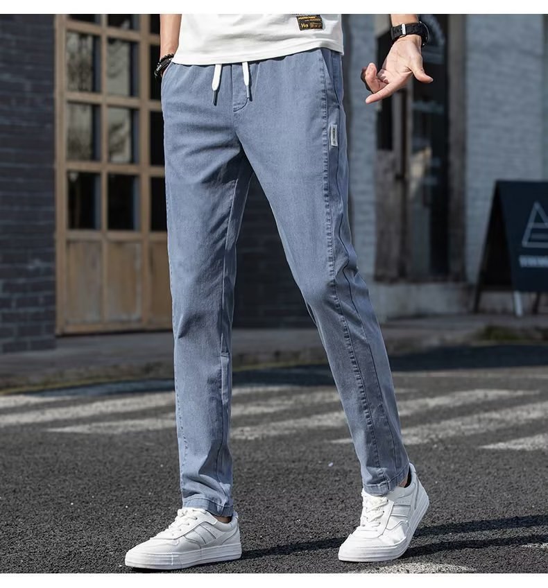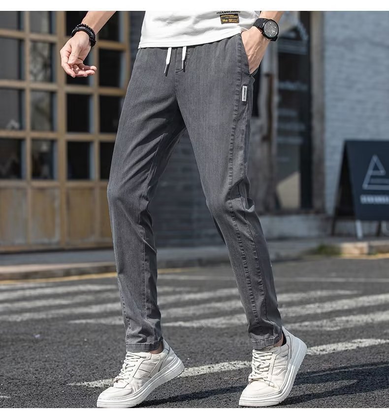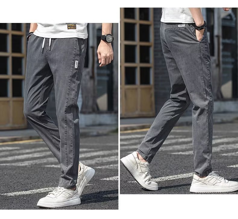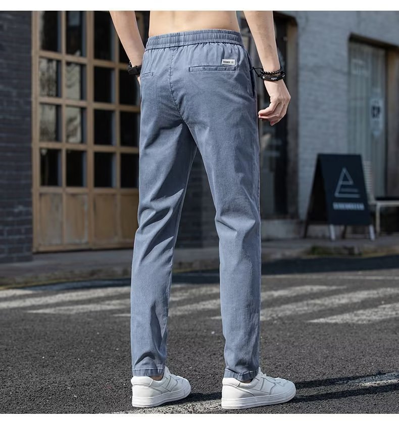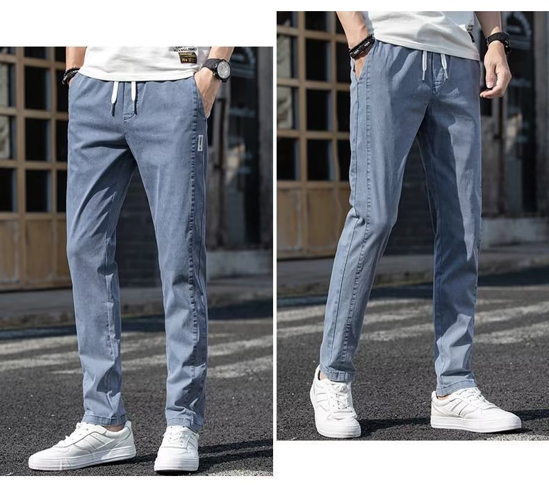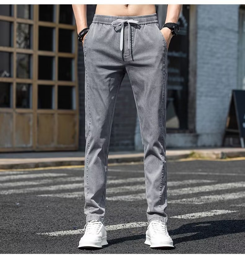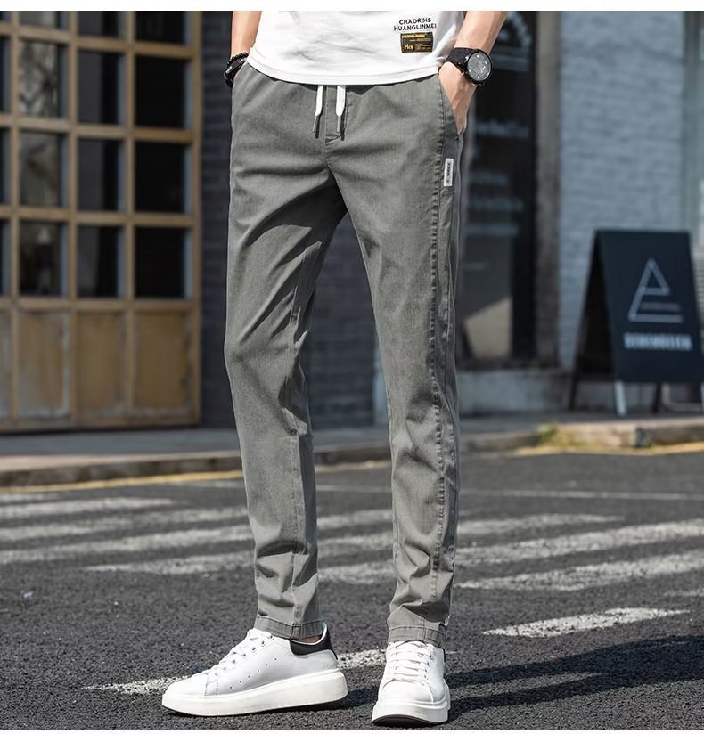 Jeans Pantalones de hombre rectos ajustados para hombre Pantalones casuales de moda coreana de estilo fino de verano Pantalones largos de seda de hielo para hombre