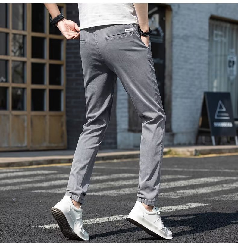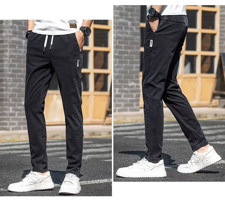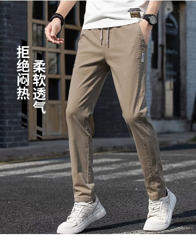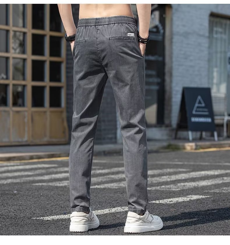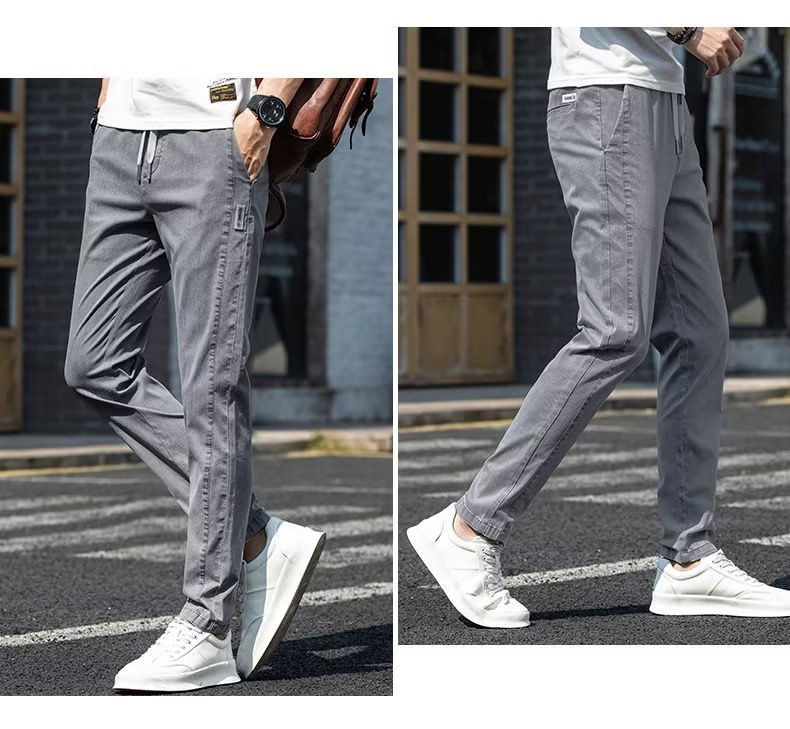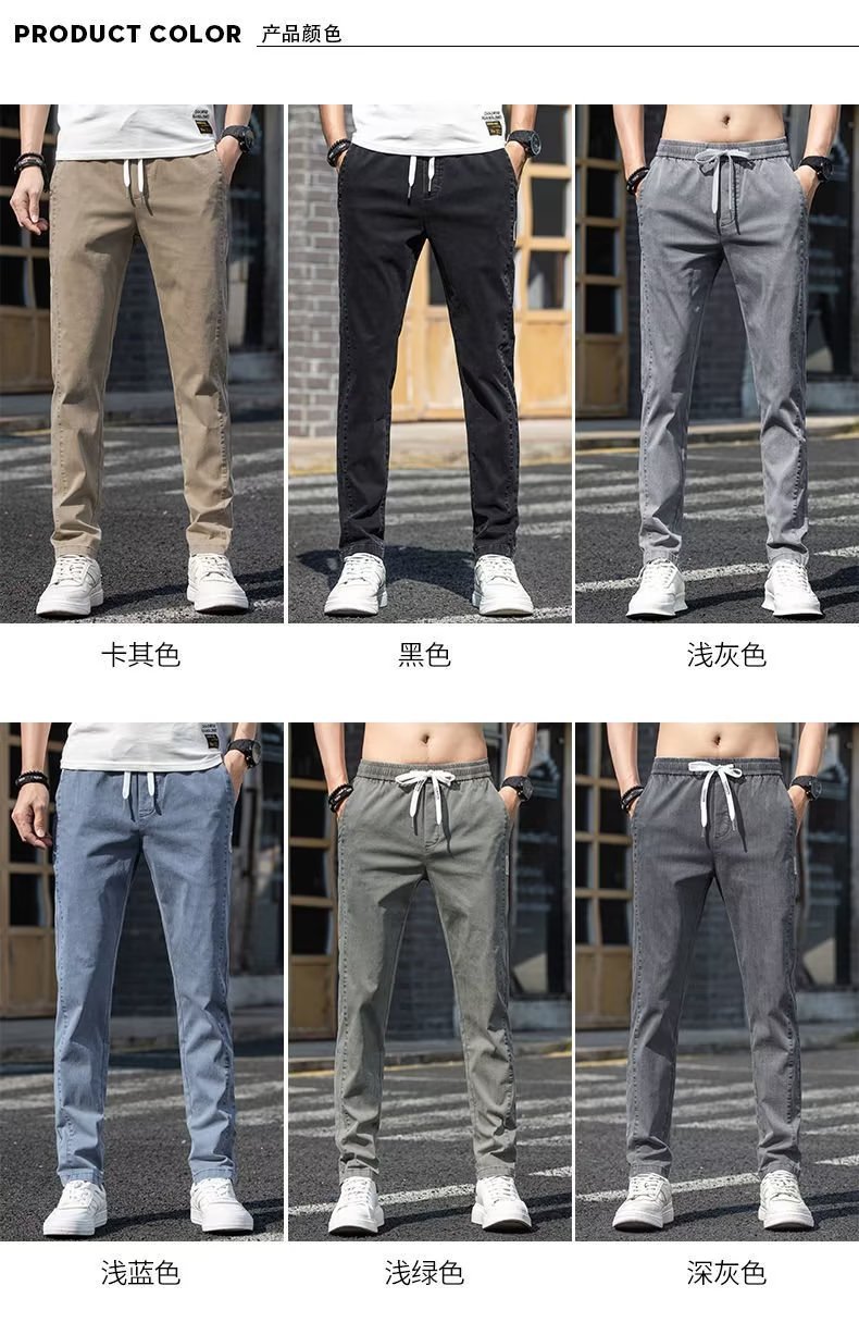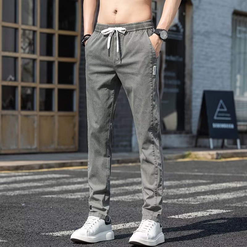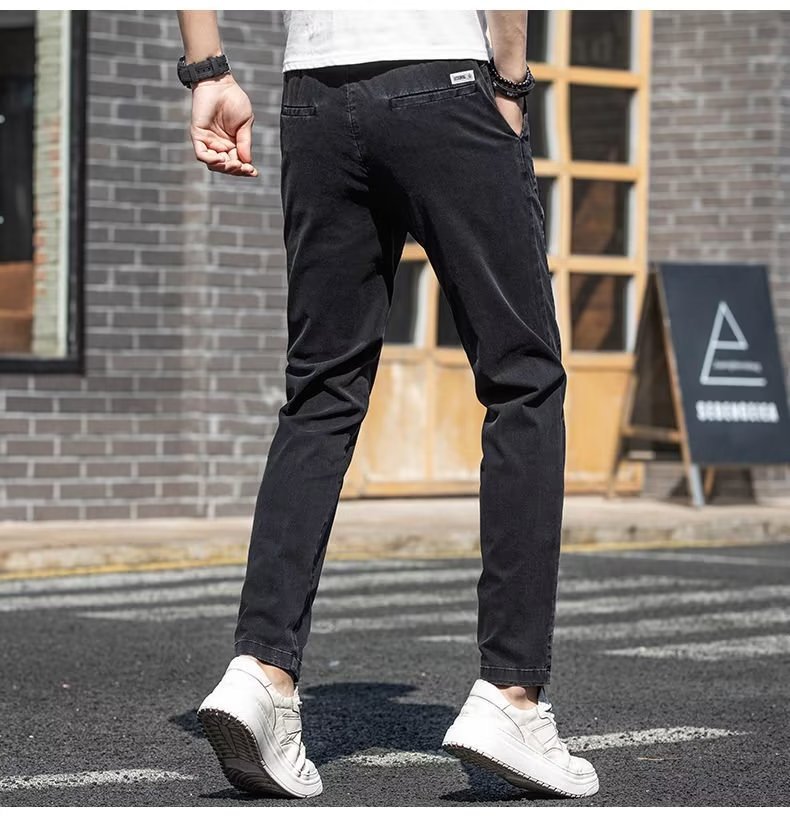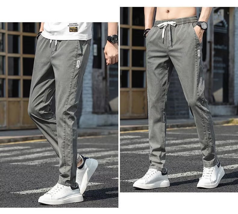Jeans Pantalones de hombre rectos ajustados para hombre Pantalones casuales de moda coreana de estilo fino de verano Pantalones largos de seda de hielo para hombre
