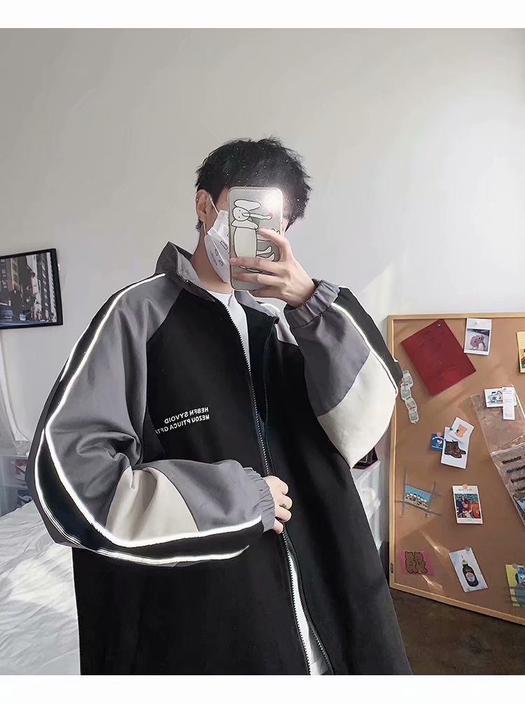 2024 nueva chaqueta de otoño para hombre, suelta, talla grande, tendencia de la calle alta, guapo, chaqueta de calle frita reflectante, ventilador de gama alta