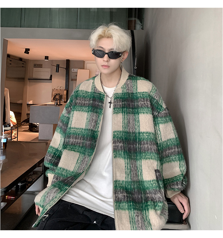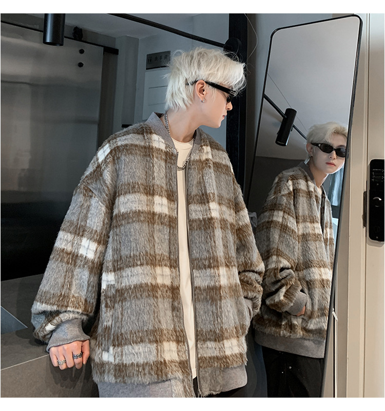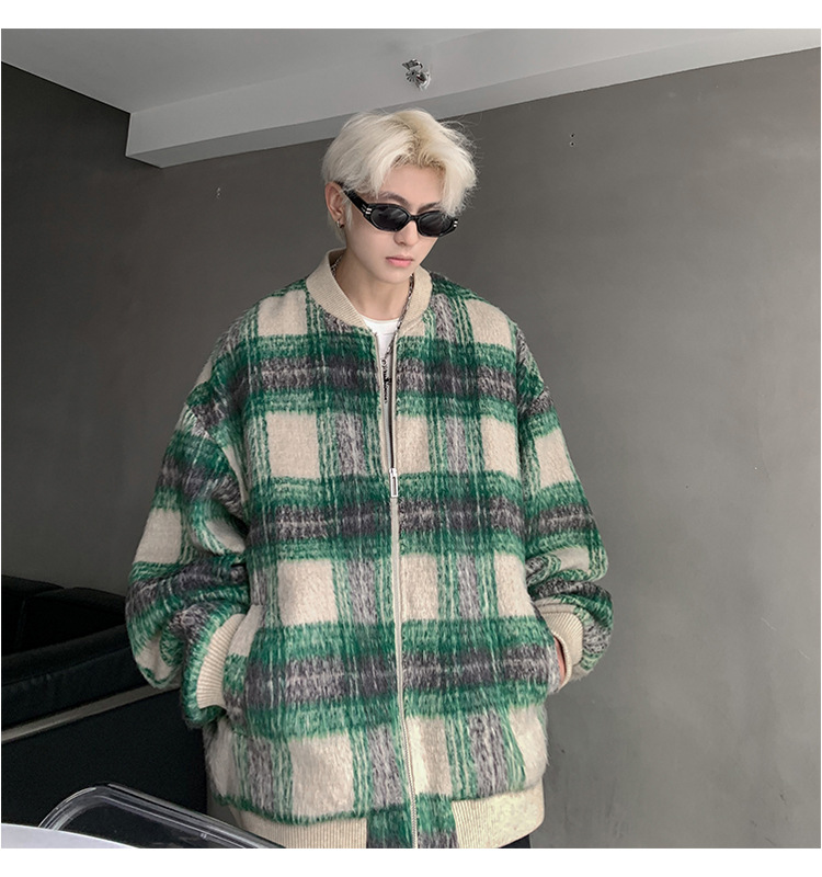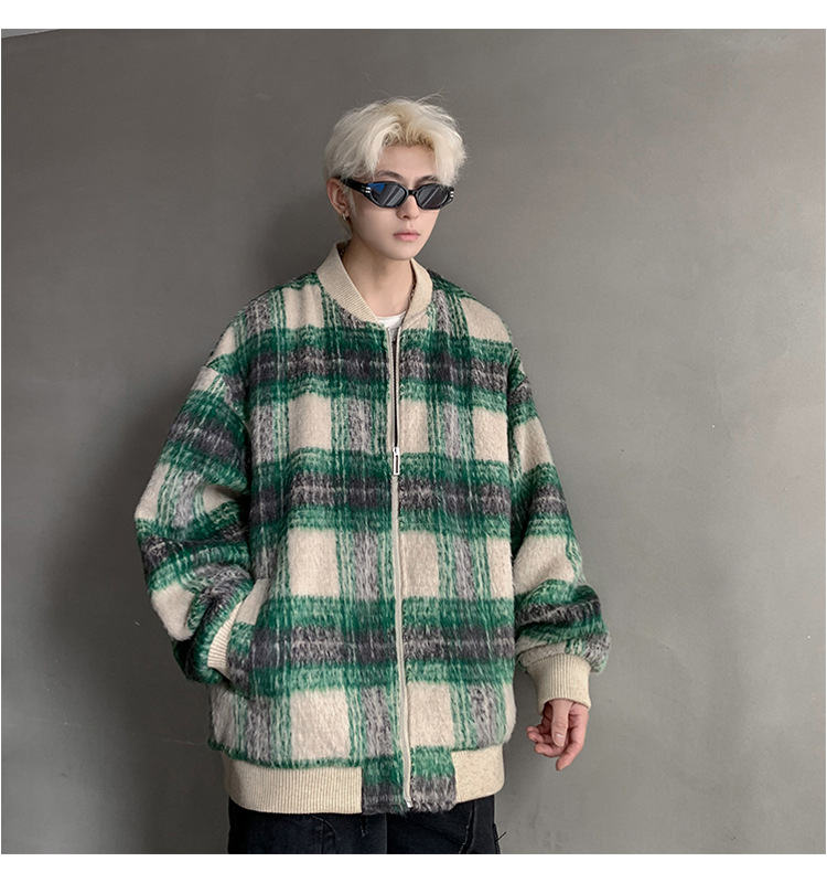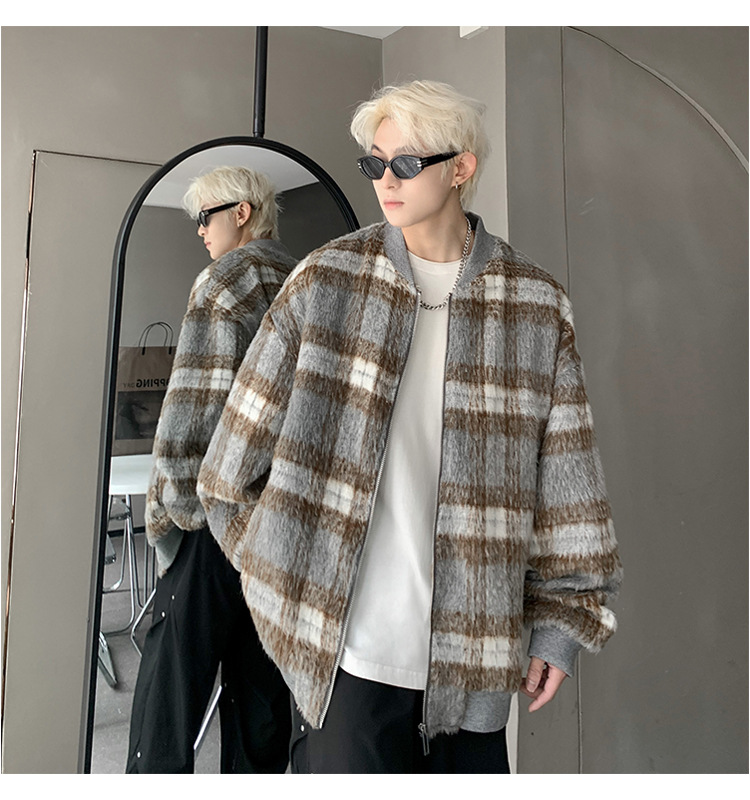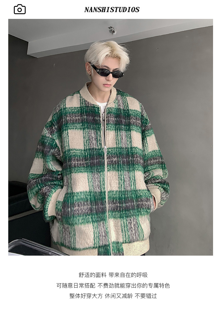 Tendencia de moda cleanfit marca de moda americano retro camisa de lana a cuadros chaqueta pequeña fragancia pareja