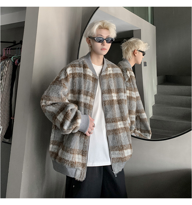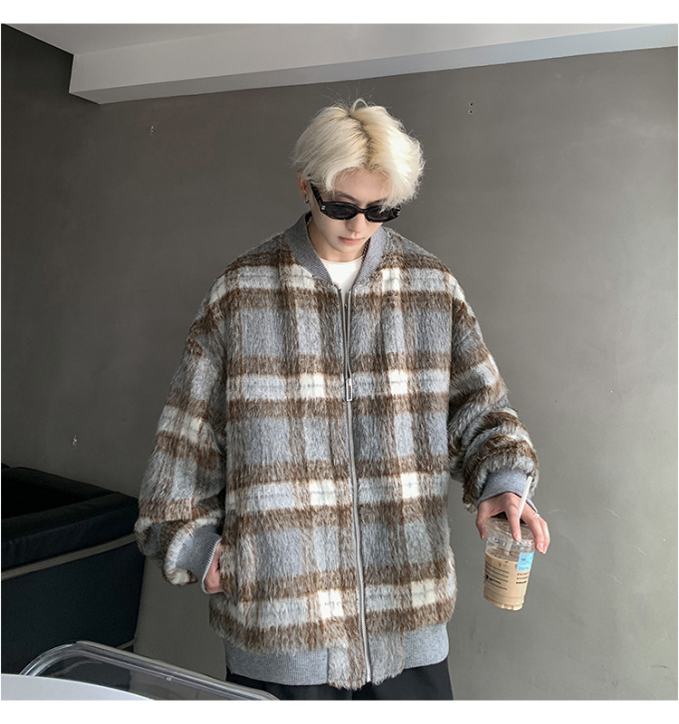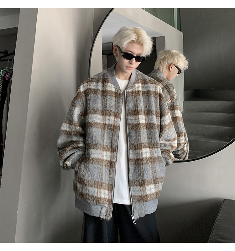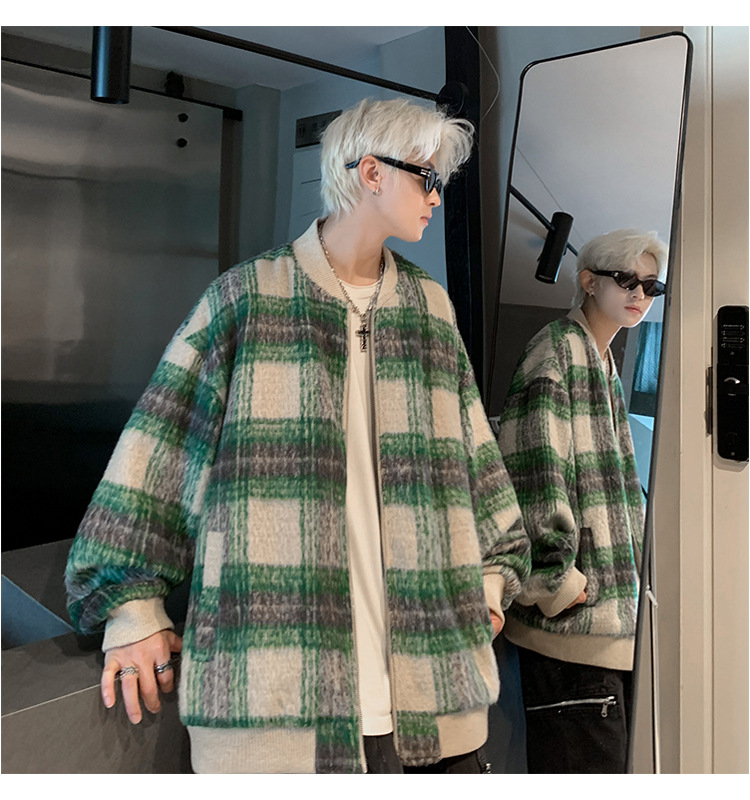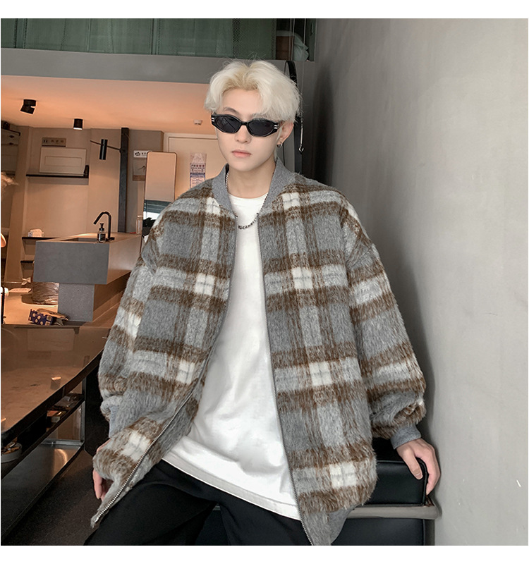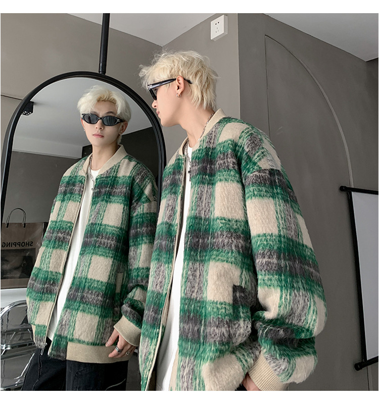 Tendencia de moda cleanfit marca de moda americano retro camisa de lana a cuadros chaqueta pequeña fragancia pareja