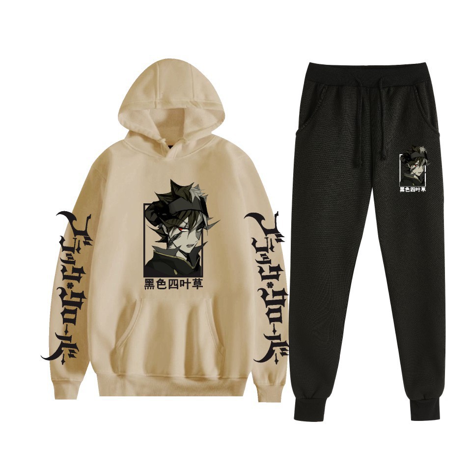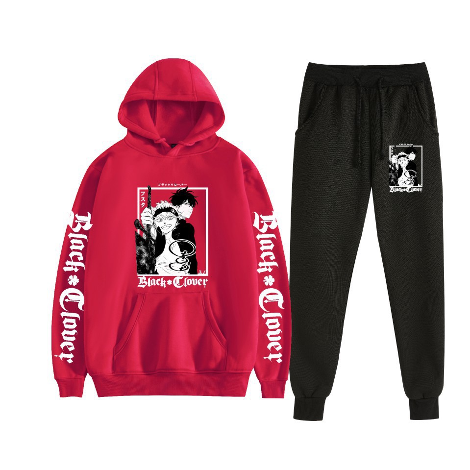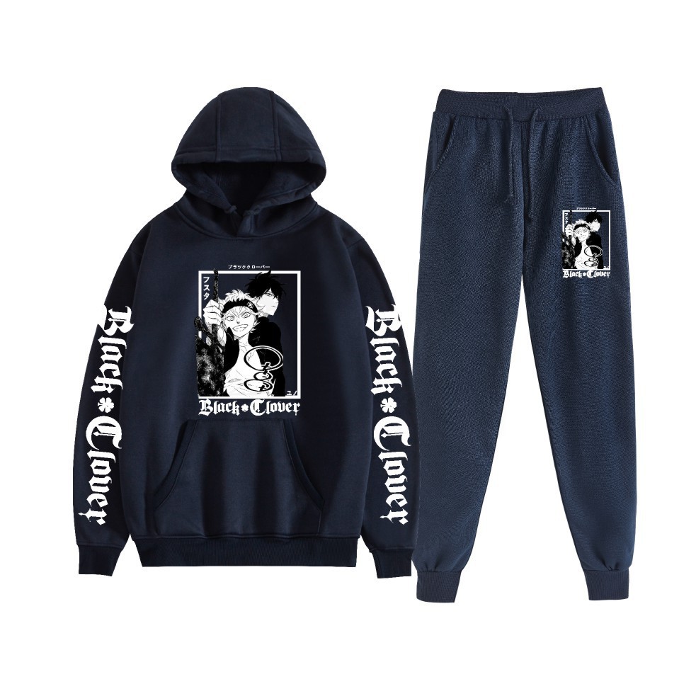 Black Clover negro trébol de cuatro hojas anime estampado sudadera con capucha más suéter de terciopelo anime hoodie transfronterizo