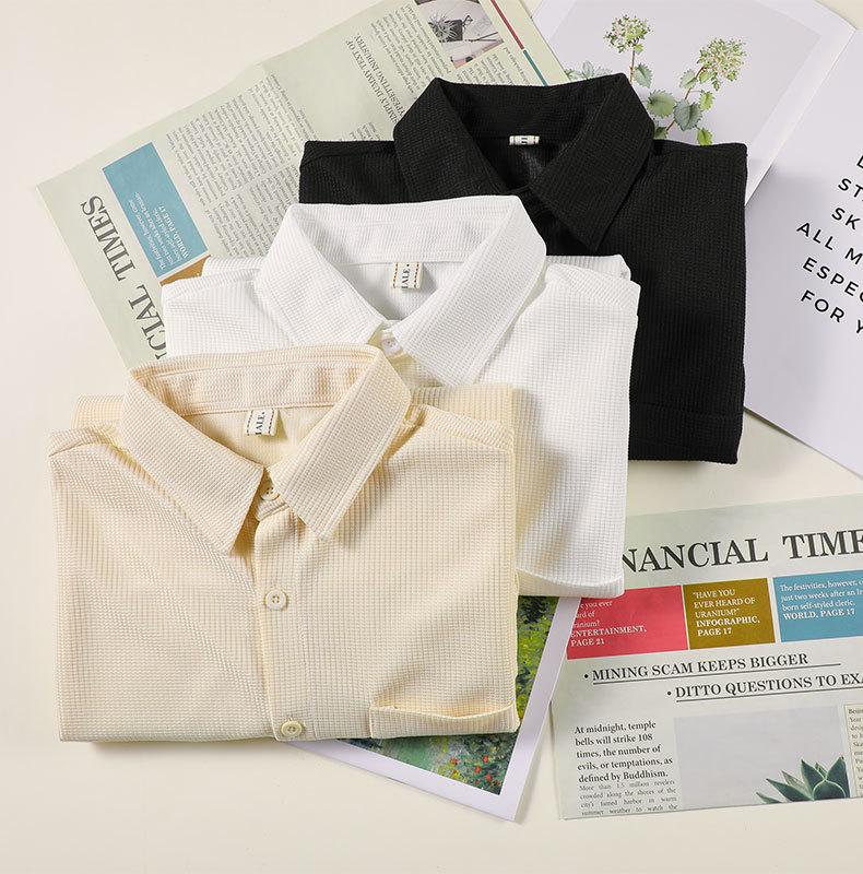 Tendencia de verano Camisa de waffle japonesa de alta gama Camisa de hombre de manga larga fina casual camisa de hombre retro