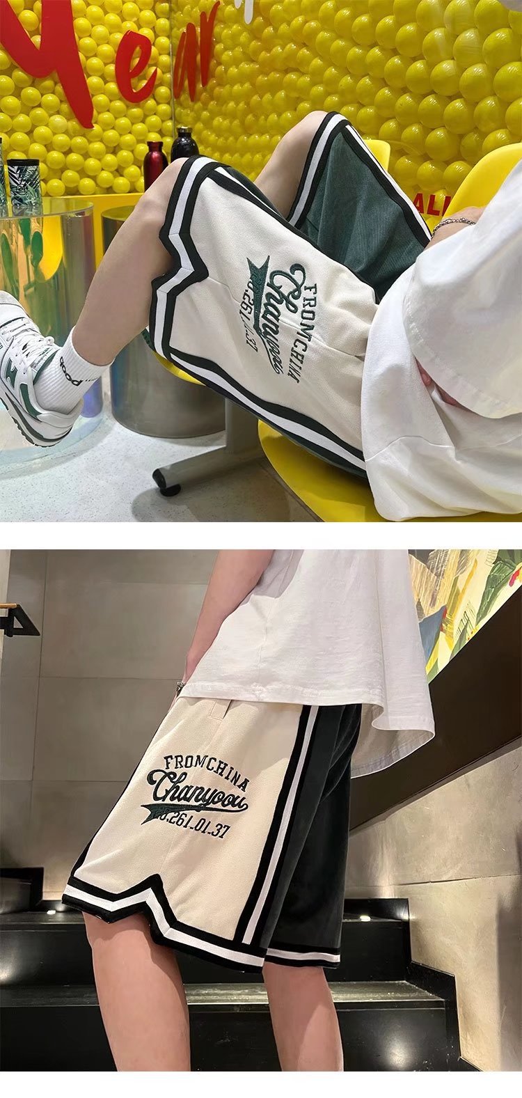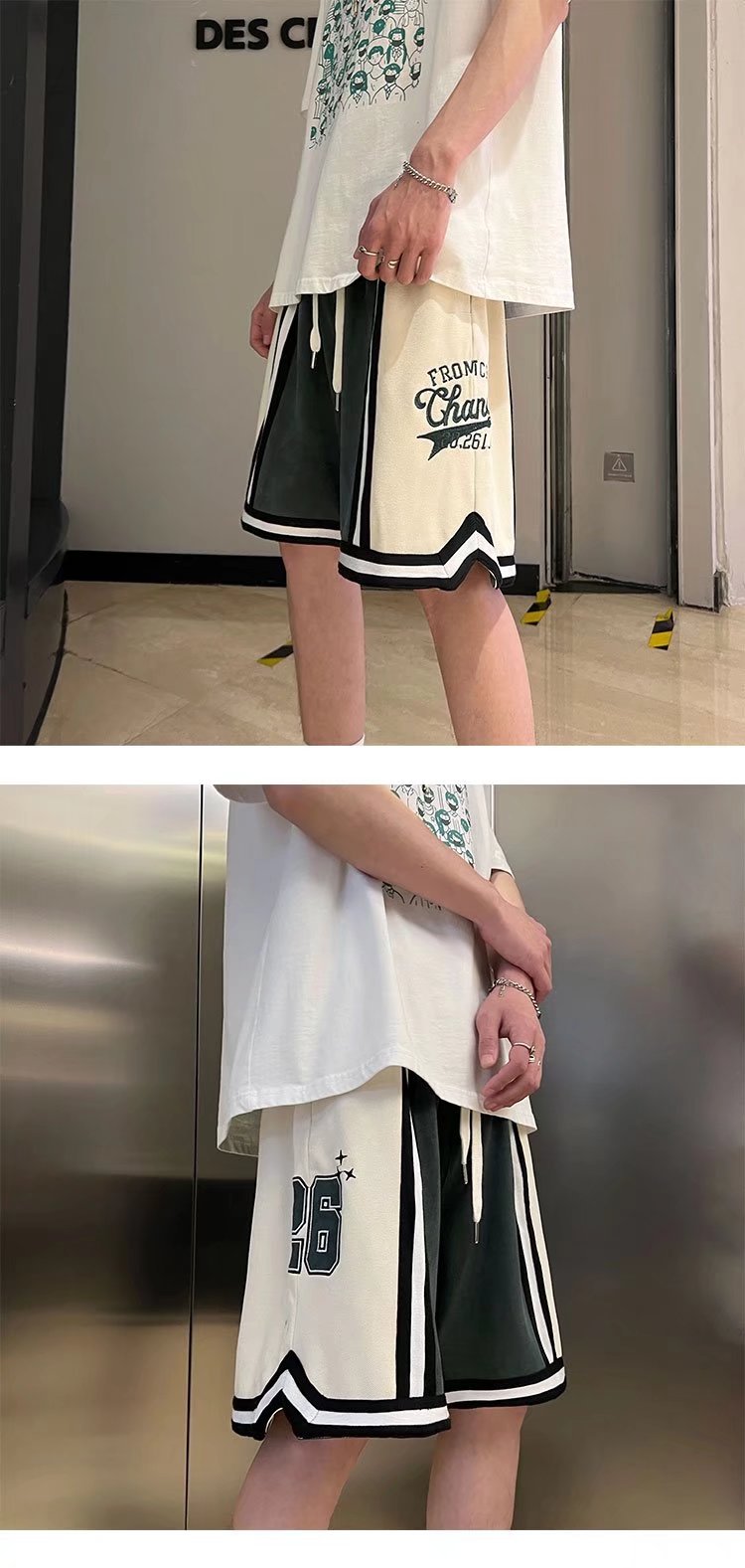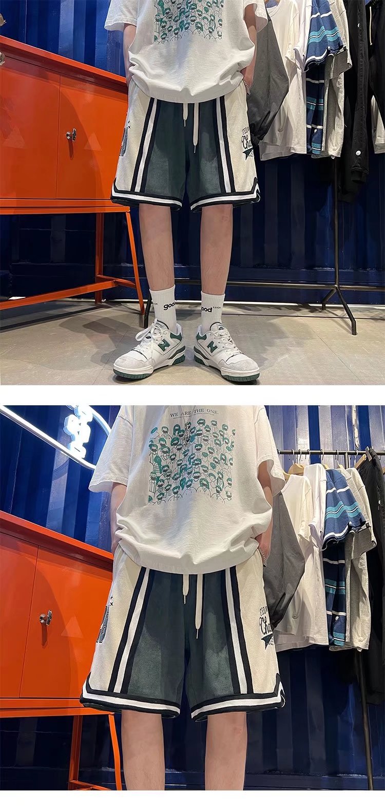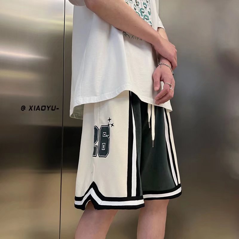 Nuevo estilo de marca compartida cintura pantalones cortos de filete de flores y frutas baloncesto casual para hombres tendencia deportes de cinco puntos pantalones sueltos estilo fino de verano