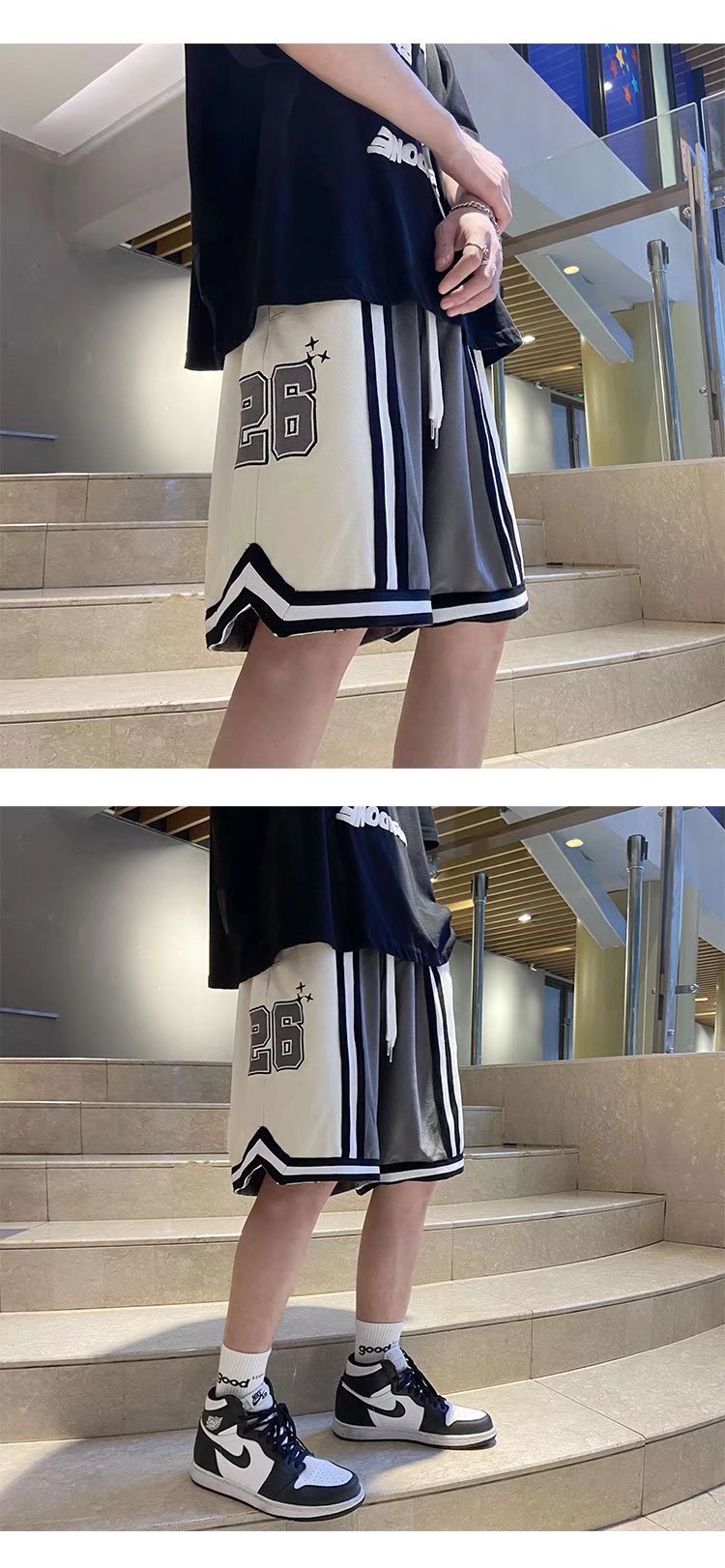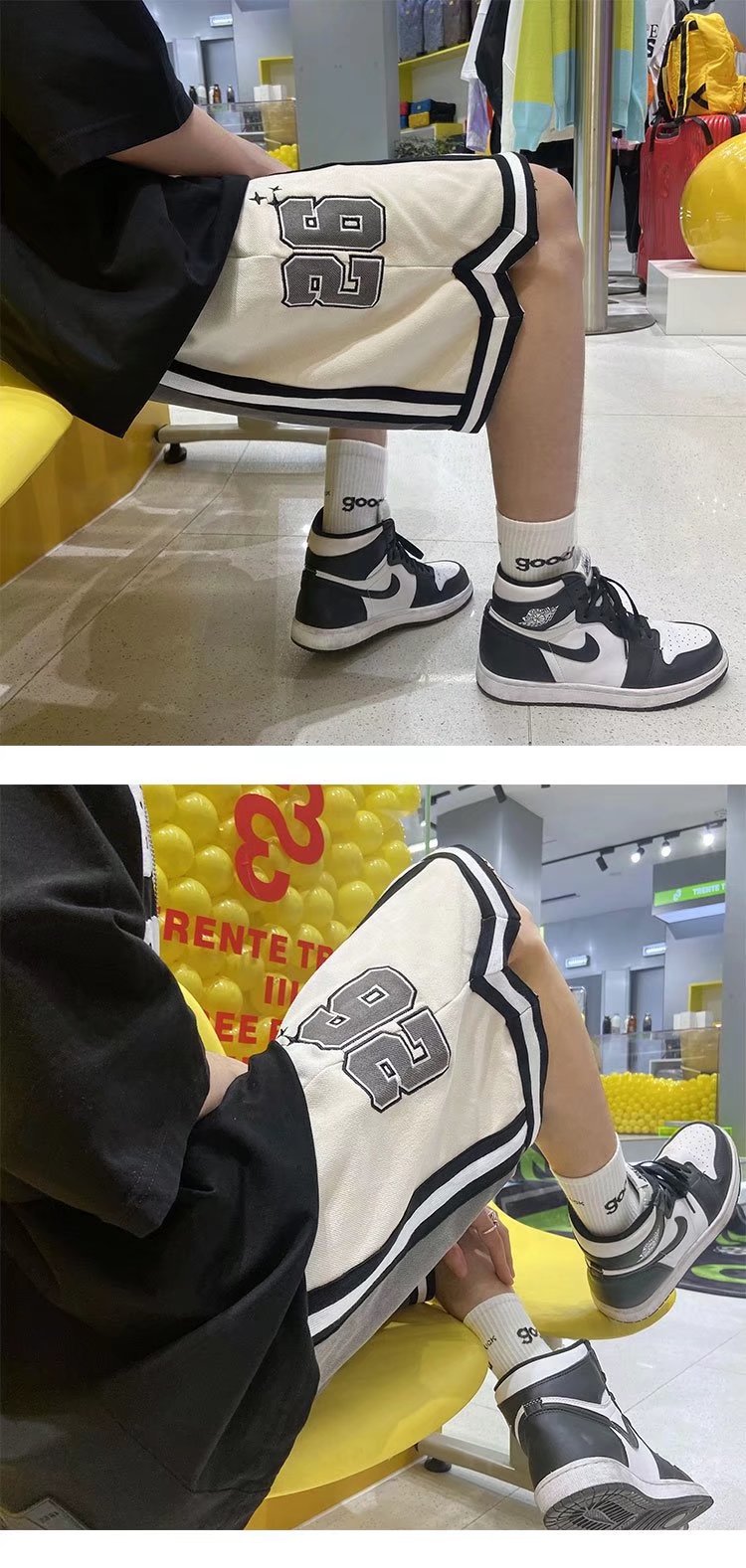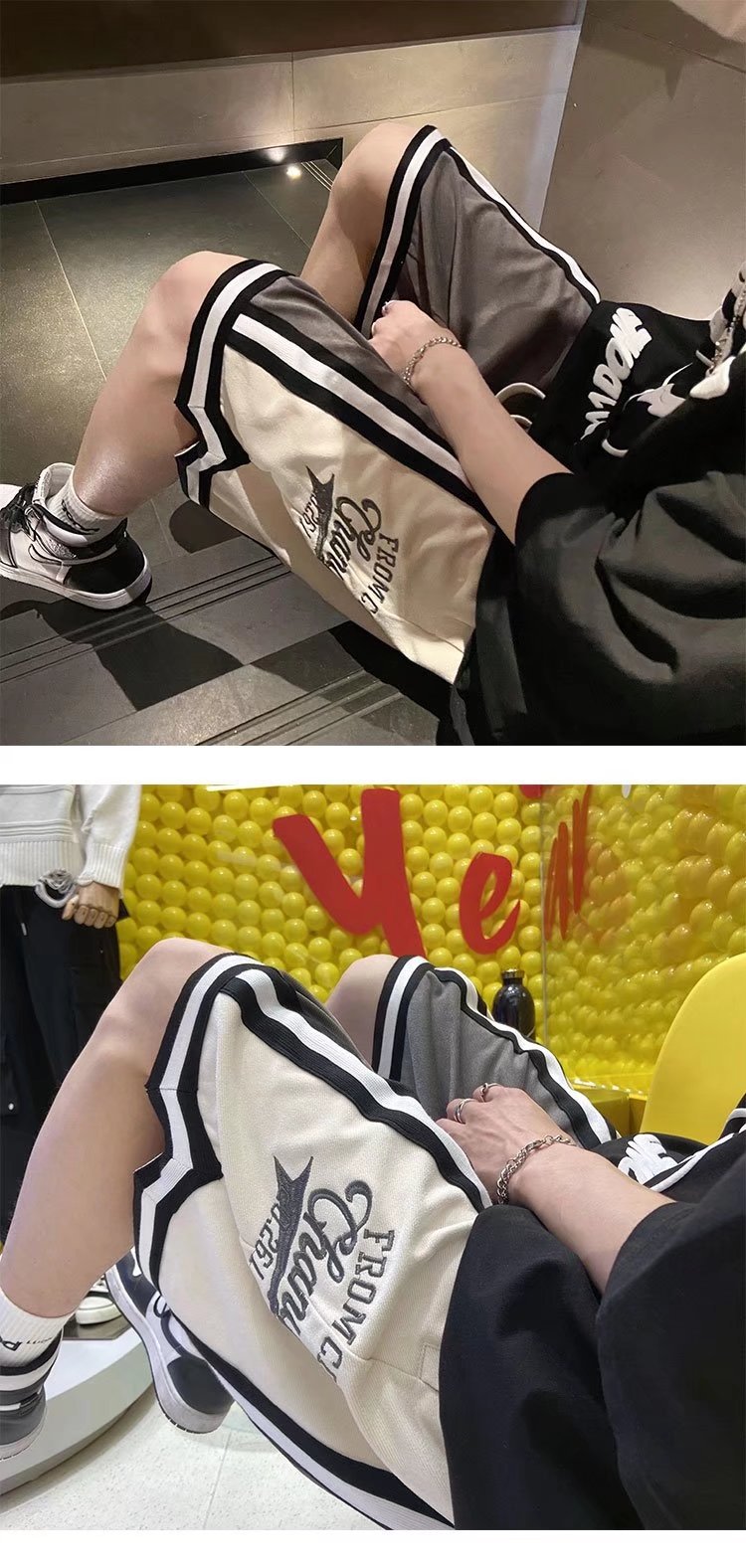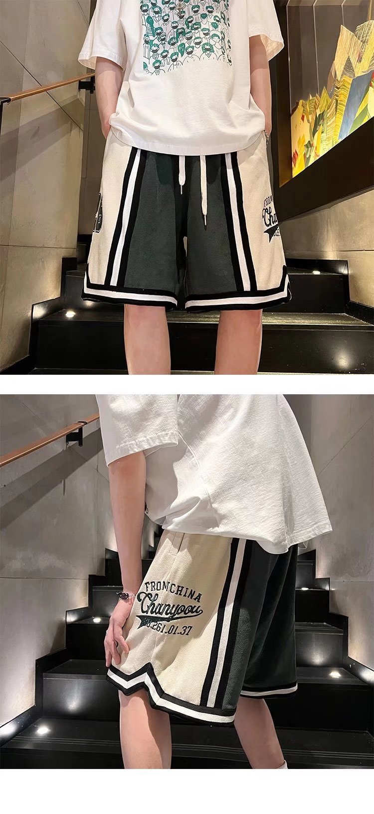 Nuevo estilo de marca compartida cintura pantalones cortos de filete de flores y frutas baloncesto casual para hombres tendencia deportes de cinco puntos pantalones sueltos estilo fino de verano