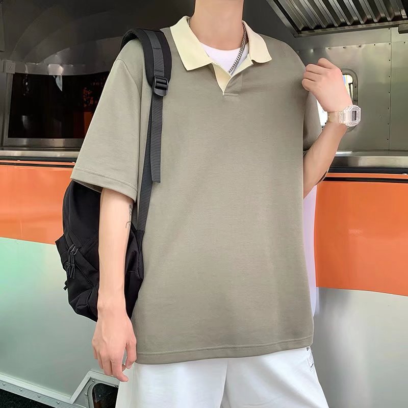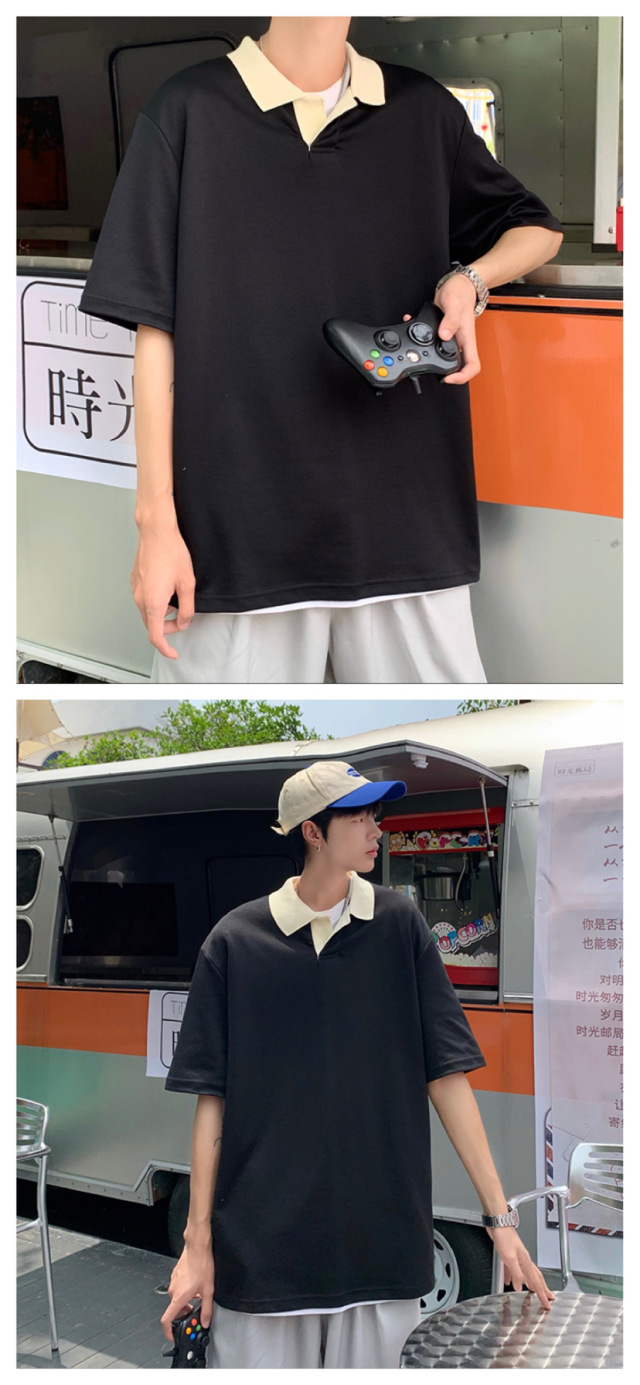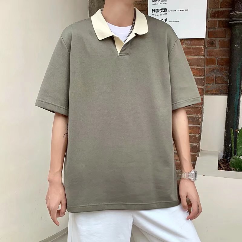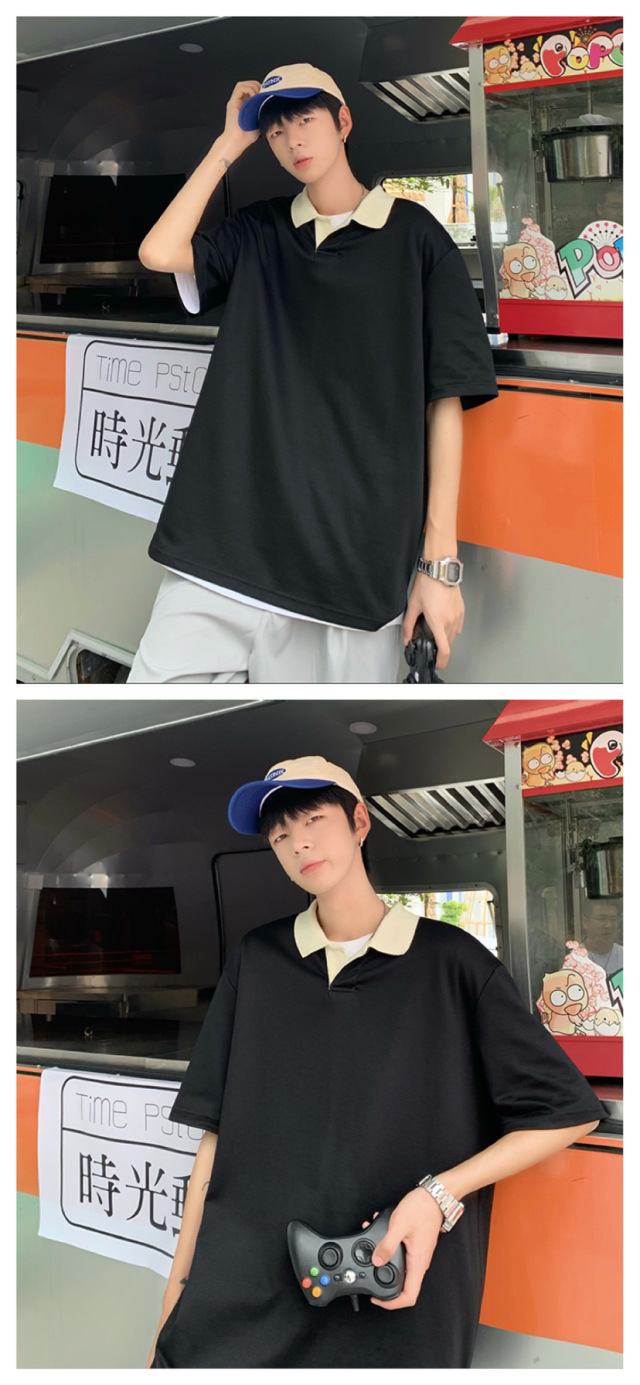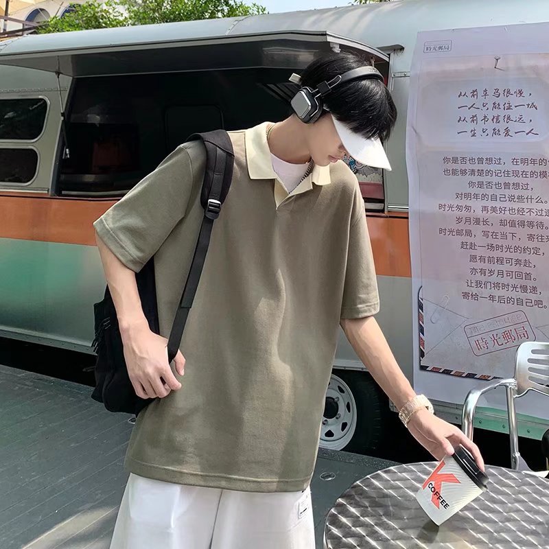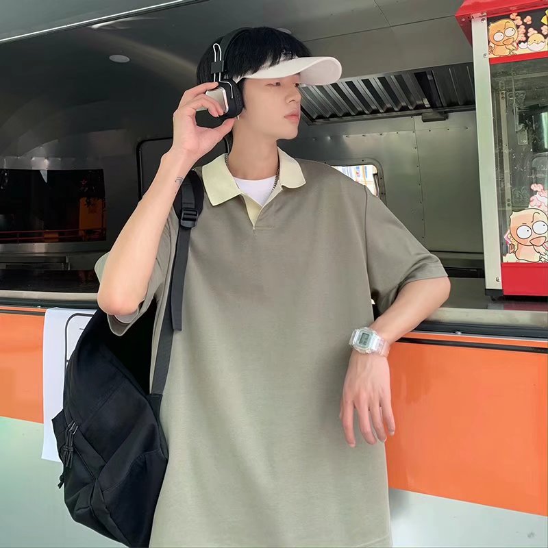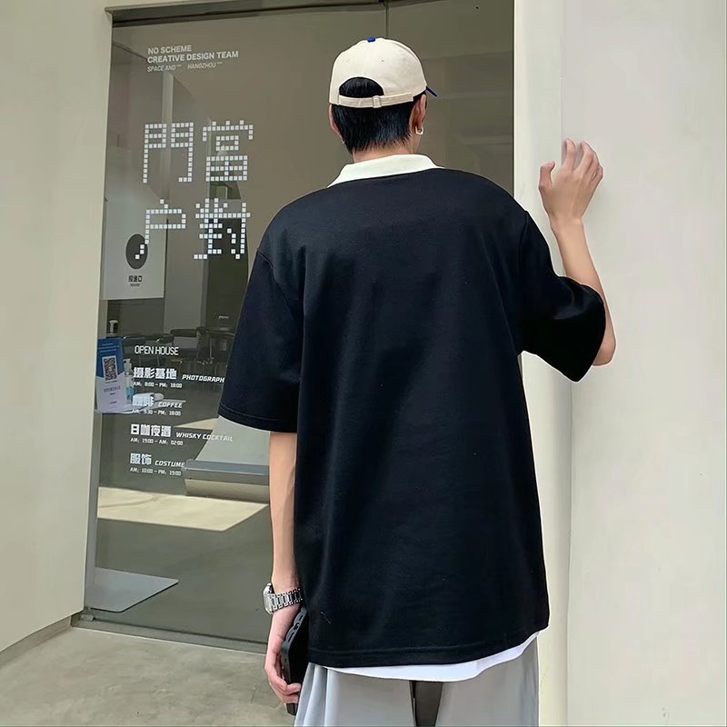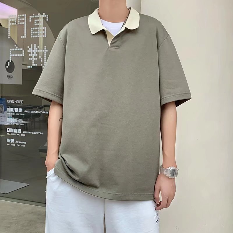 Los polos de manga corta de moda de verano de la marca de moda ins, estilo de Hong Kong masculino, celebridad de Internet suelta japonesa, hermosa camiseta de media manga con cuello giratorio