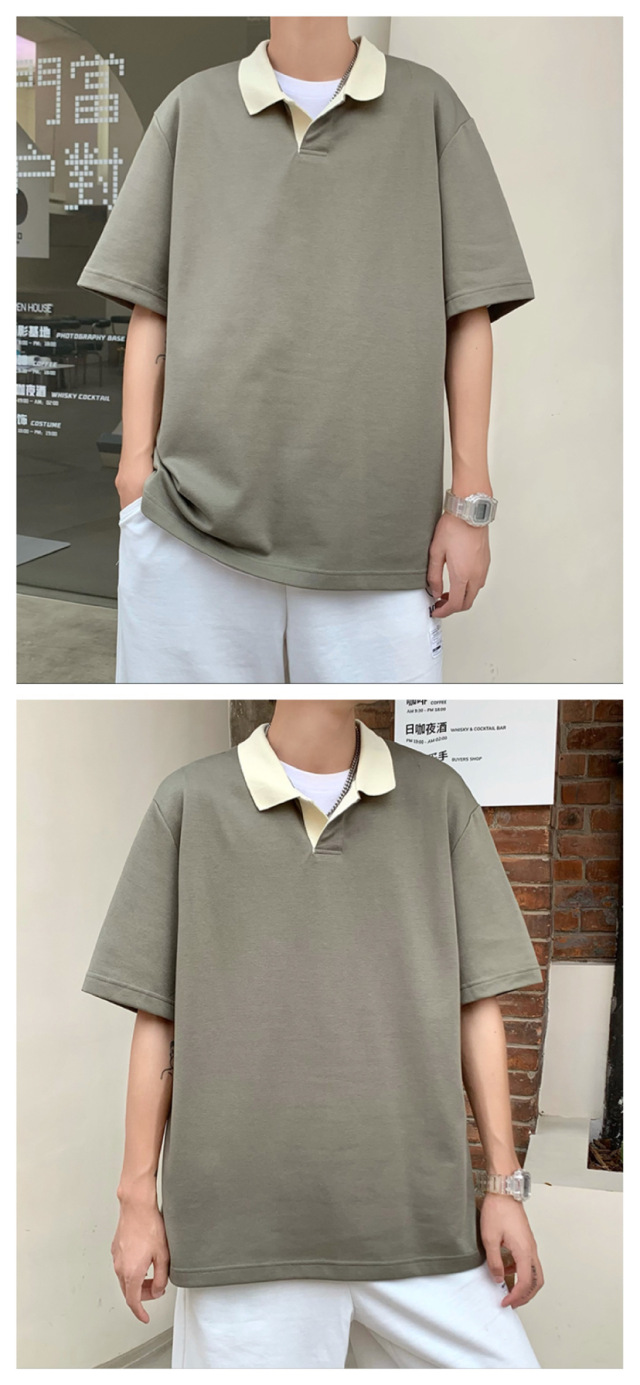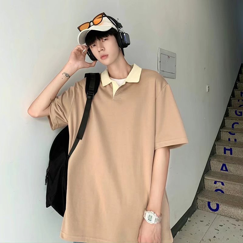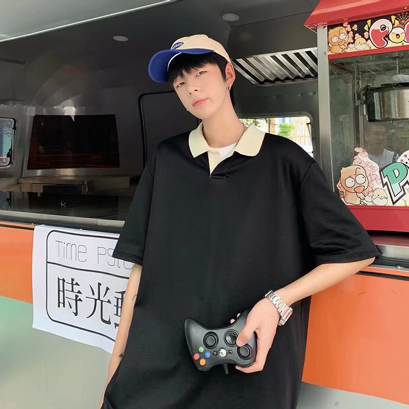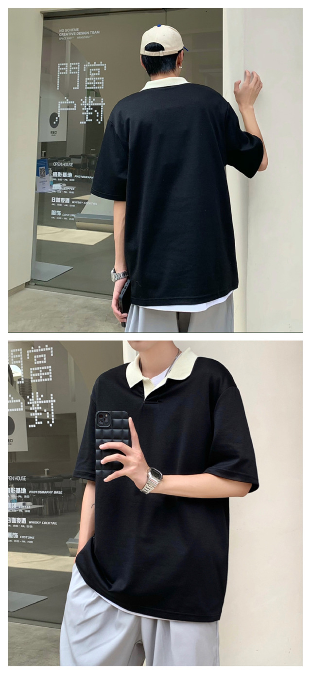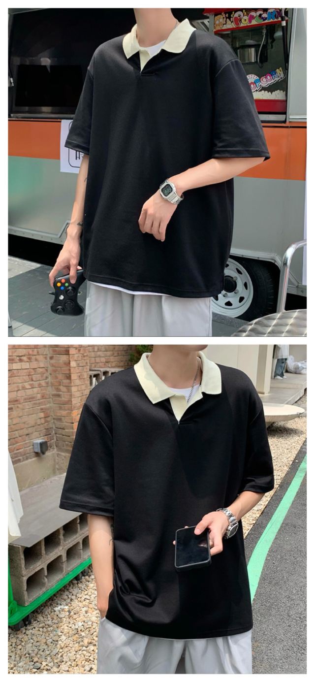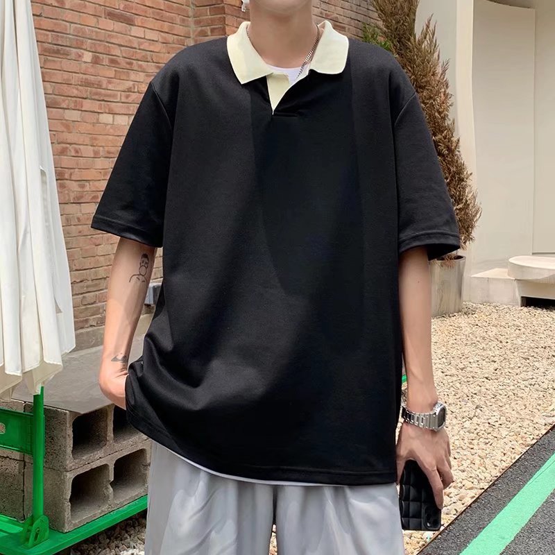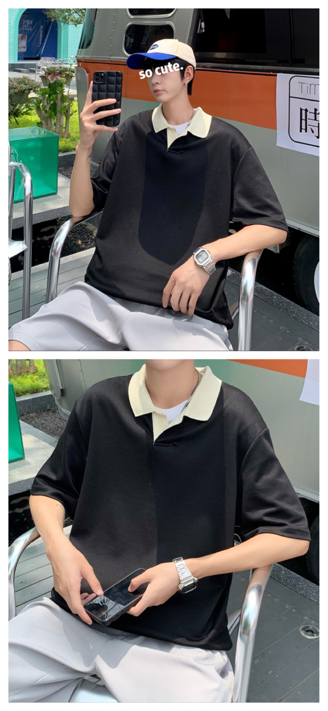 Los polos de manga corta de moda de verano de la marca de moda ins, estilo de Hong Kong masculino, celebridad de Internet suelta japonesa, hermosa camiseta de media manga con cuello giratorio
