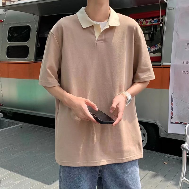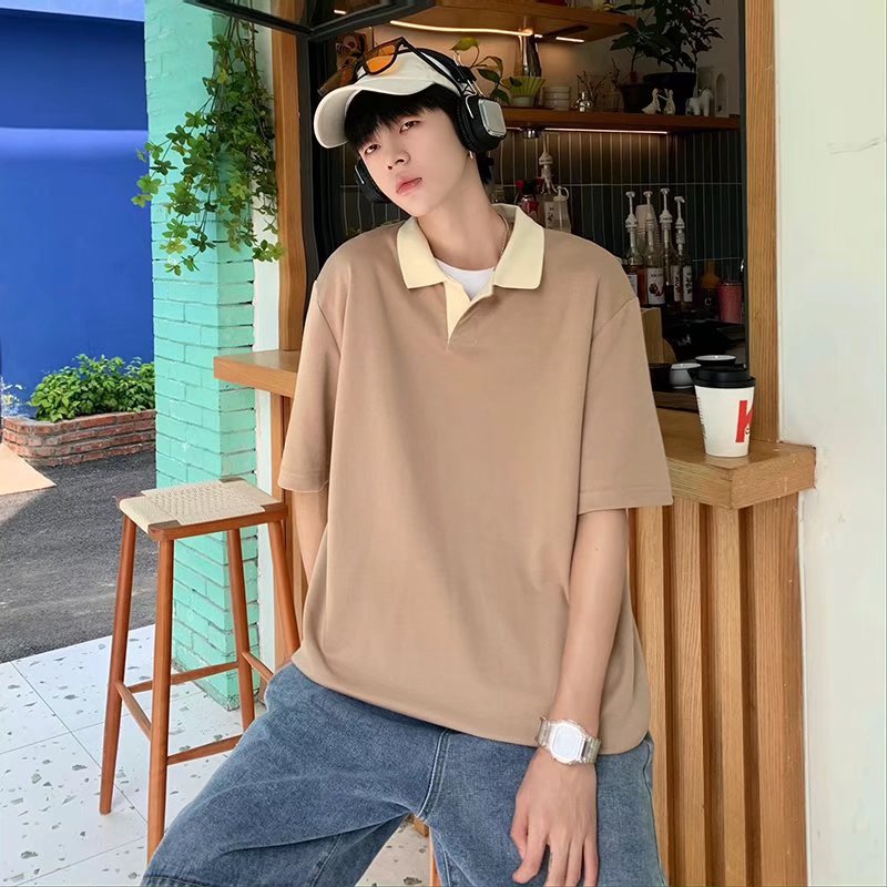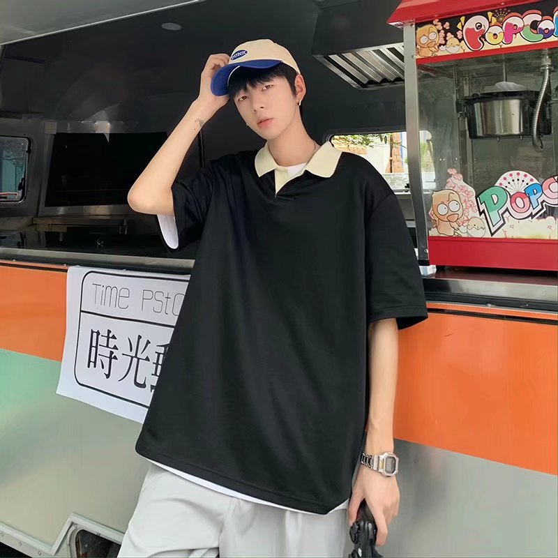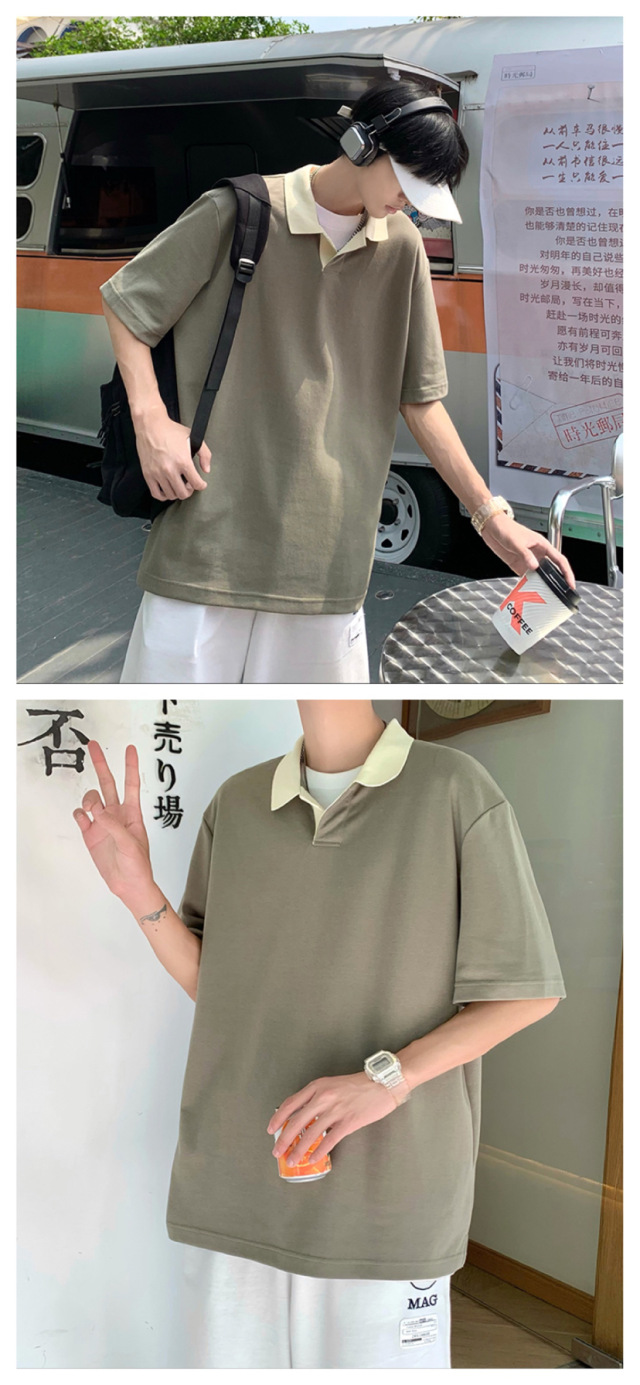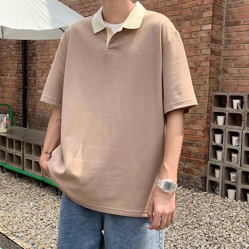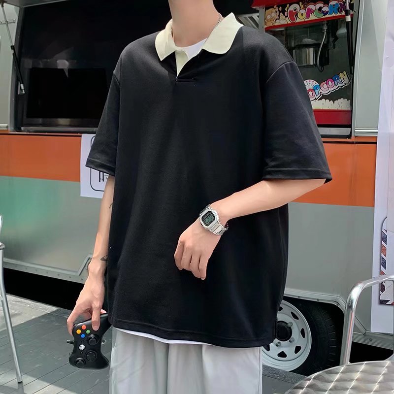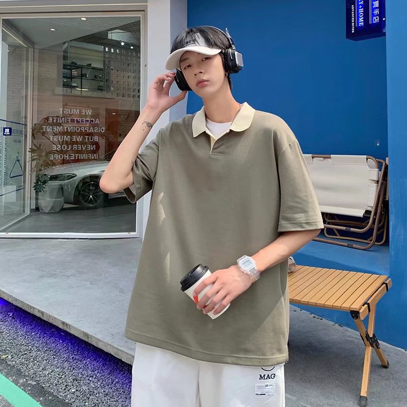 Los polos de manga corta de moda de verano de la marca de moda ins, estilo de Hong Kong masculino, celebridad de Internet suelta japonesa, hermosa camiseta de media manga con cuello giratorio