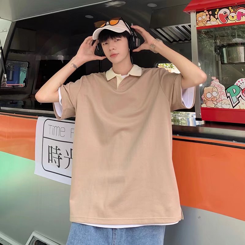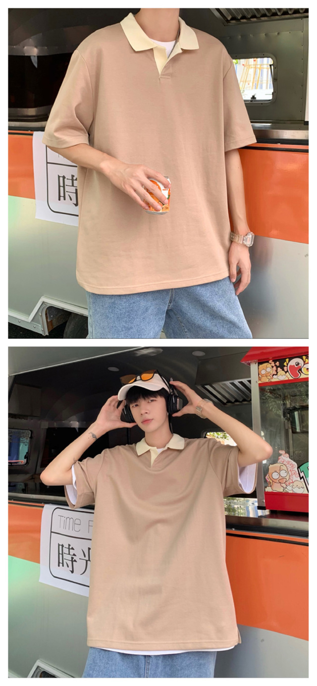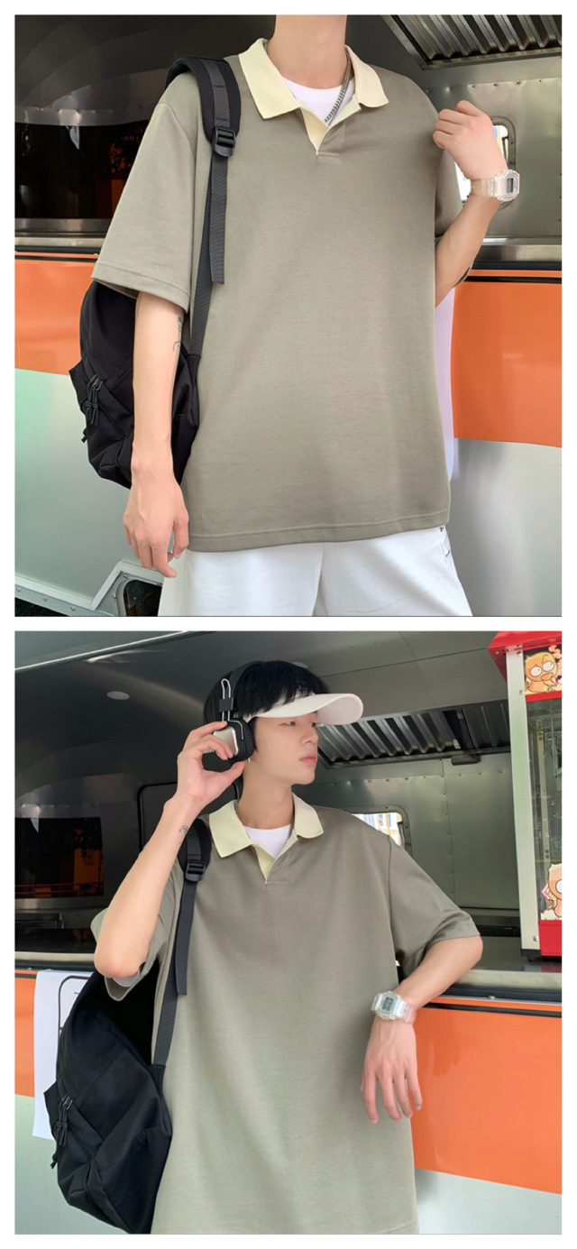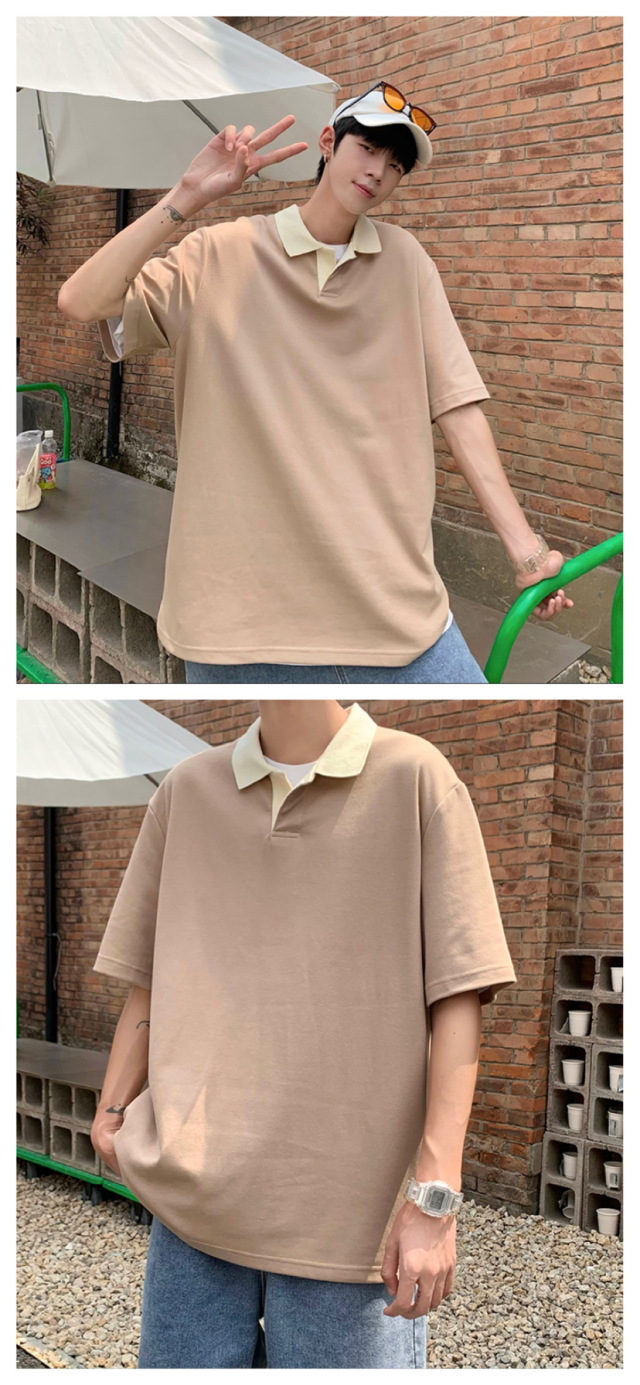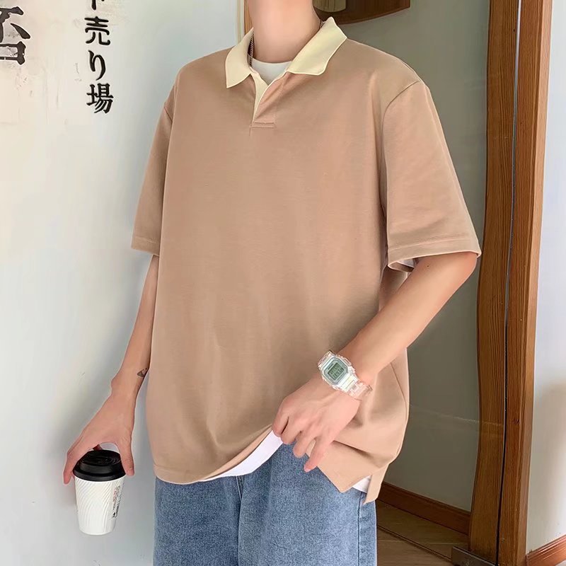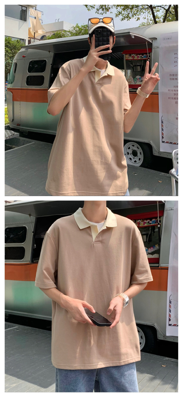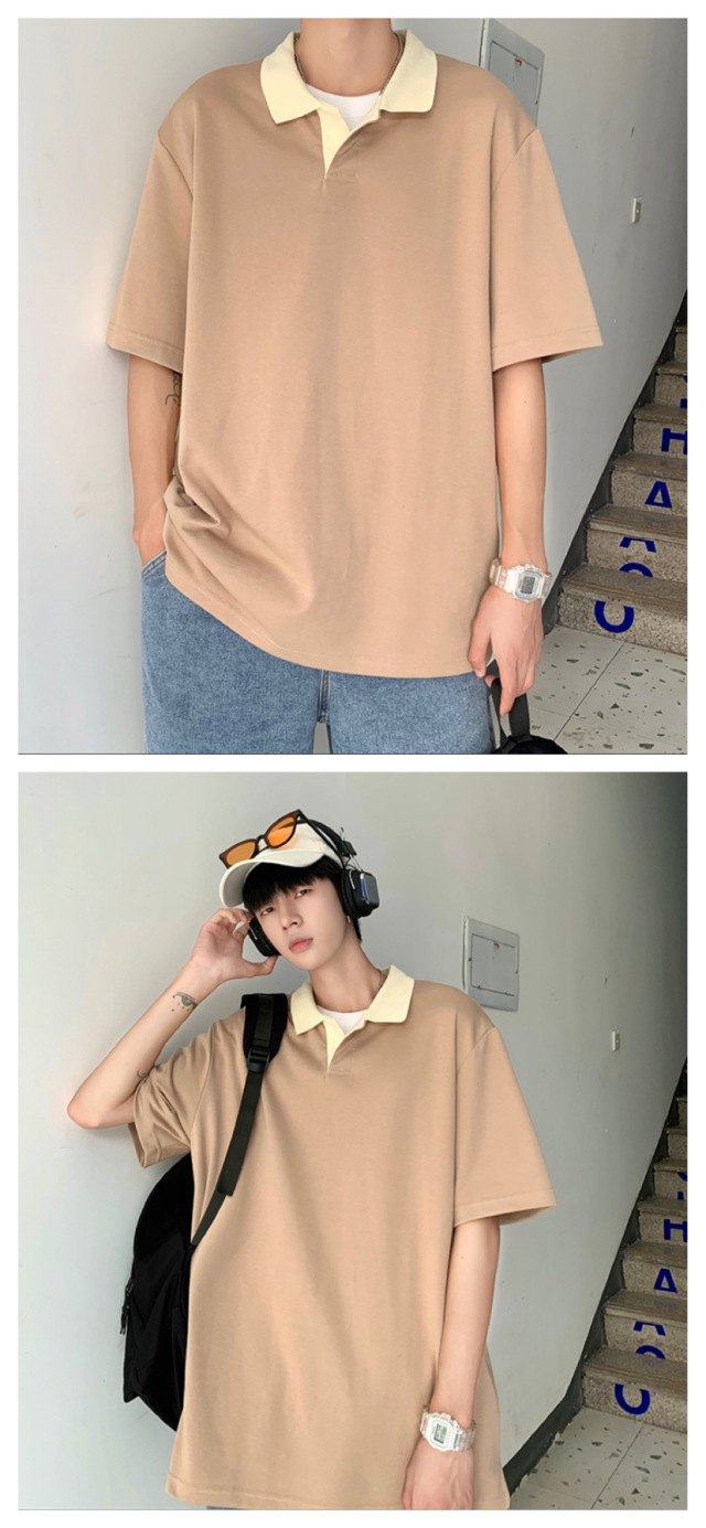 Los polos de manga corta de moda de verano de la marca de moda ins, estilo de Hong Kong masculino, celebridad de Internet suelta japonesa, hermosa camiseta de media manga con cuello giratorio