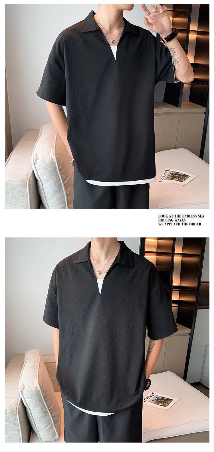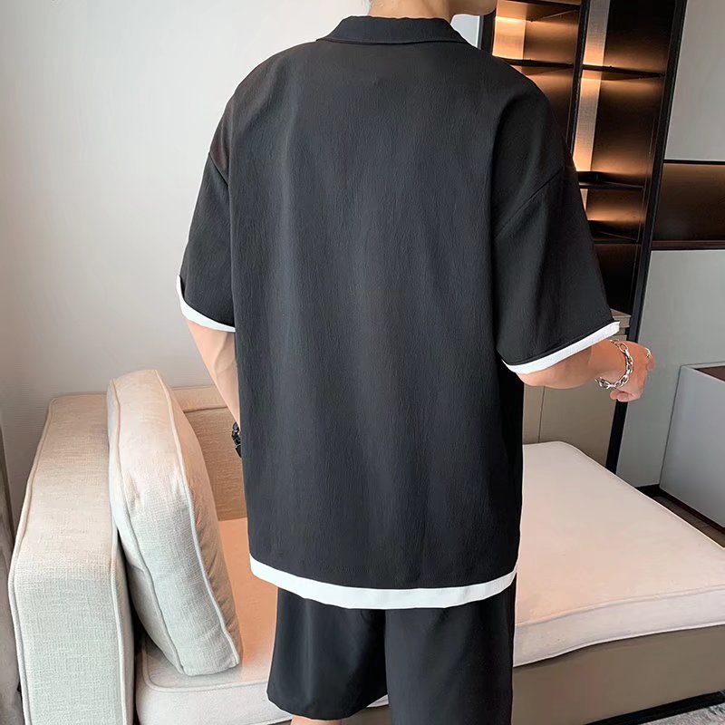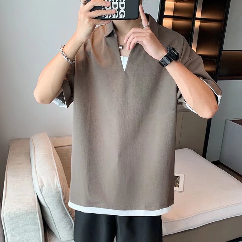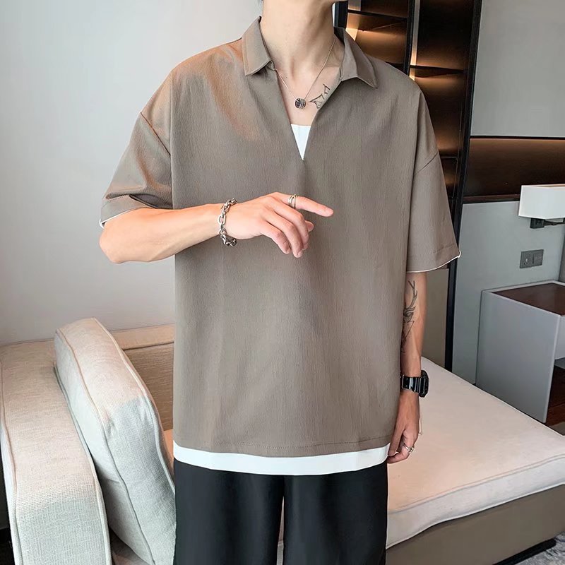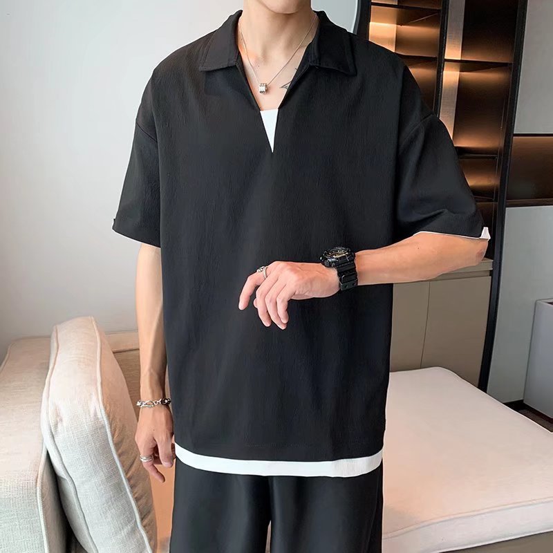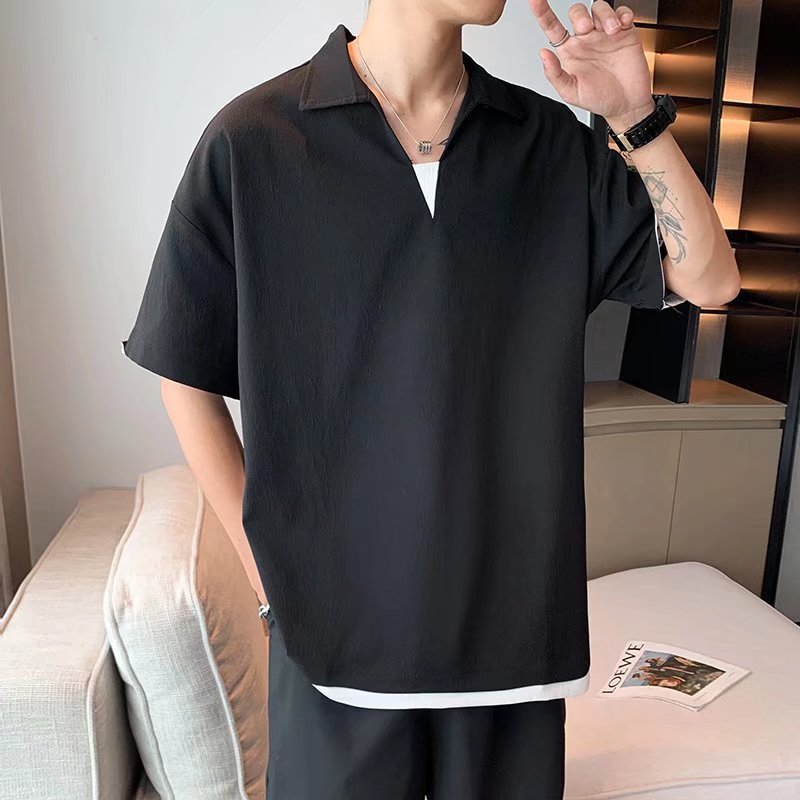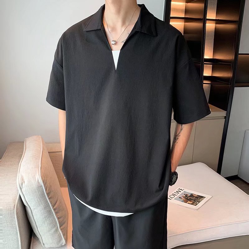 Camisa de polo casual japonesa simple de verano suelta, estilo de Hong Kong para hombres, solapa de manga corta para estudiantes, camiseta de estilo Harajuku, tendencia