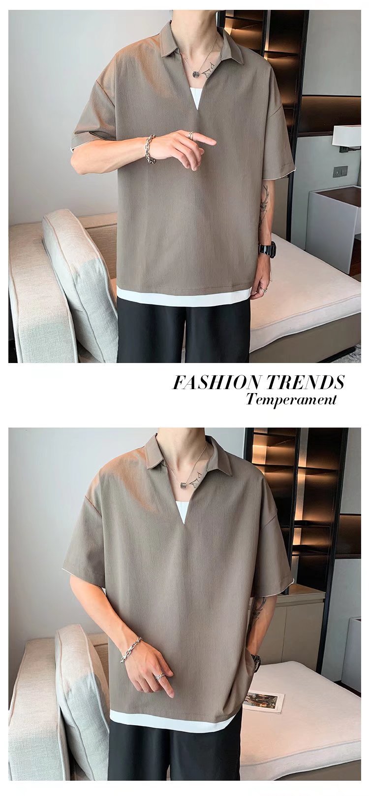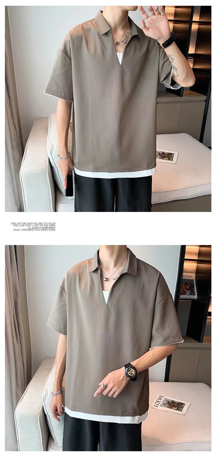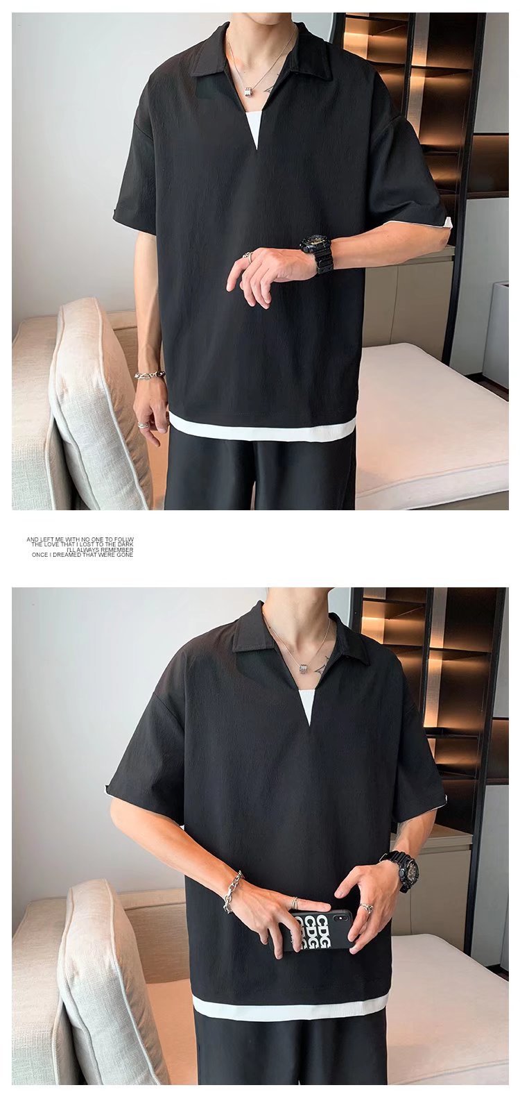 Camisa de polo casual japonesa simple de verano suelta, estilo de Hong Kong para hombres, solapa de manga corta para estudiantes, camiseta de estilo Harajuku, tendencia