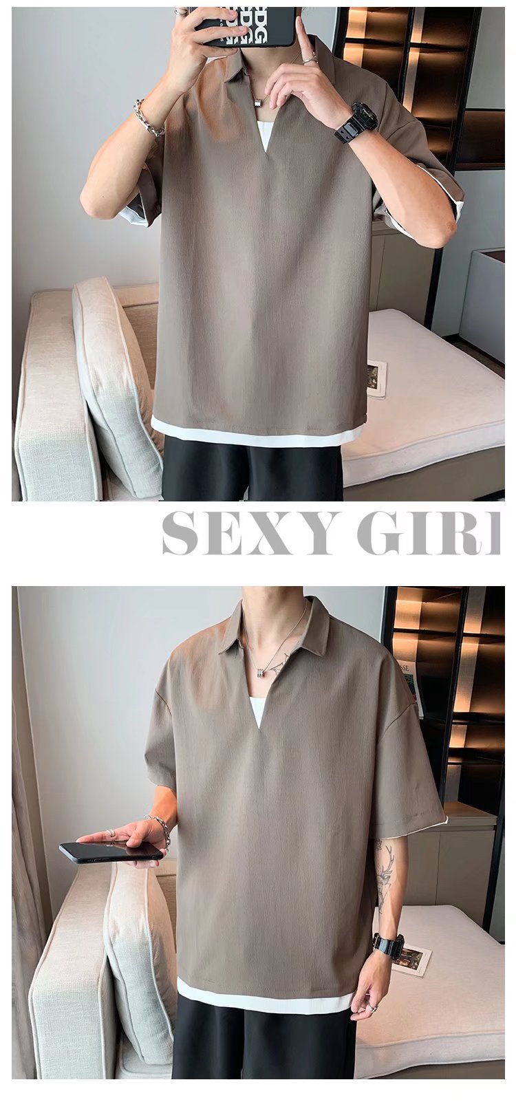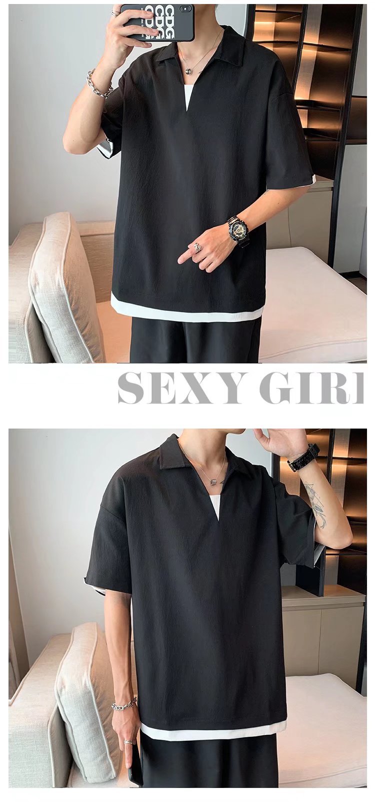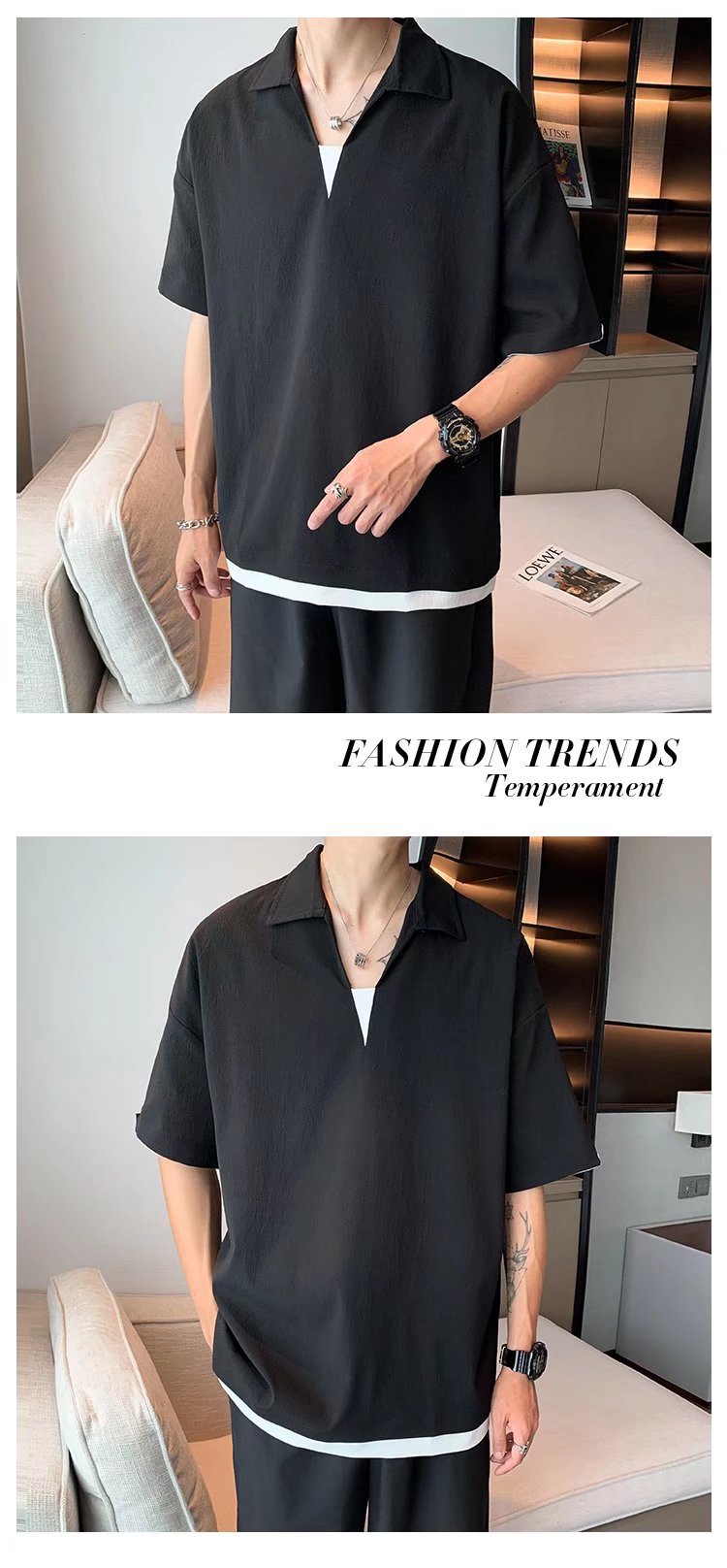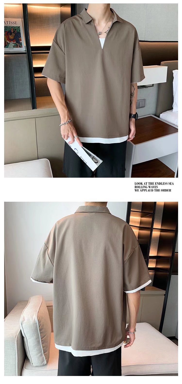 Camisa de polo casual japonesa simple de verano suelta, estilo de Hong Kong para hombres, solapa de manga corta para estudiantes, camiseta de estilo Harajuku, tendencia