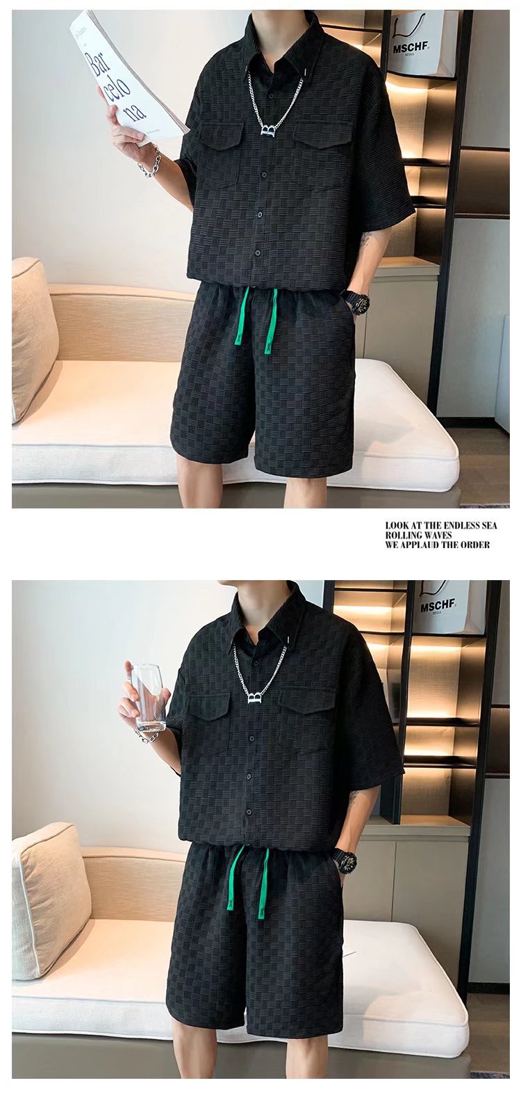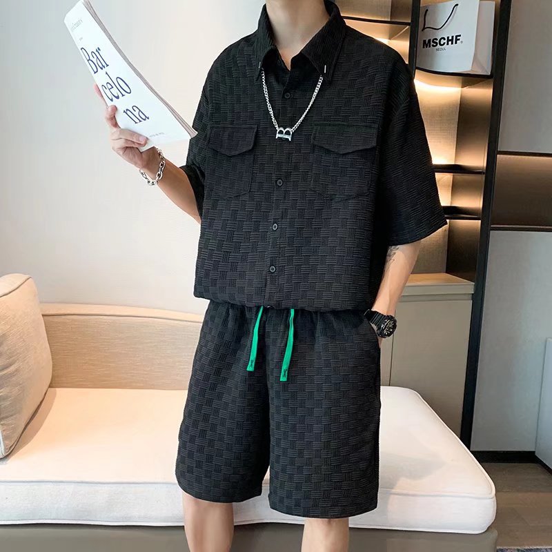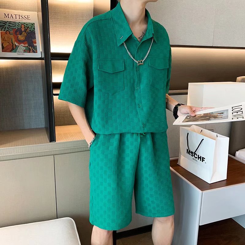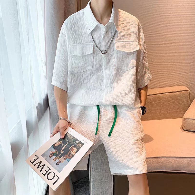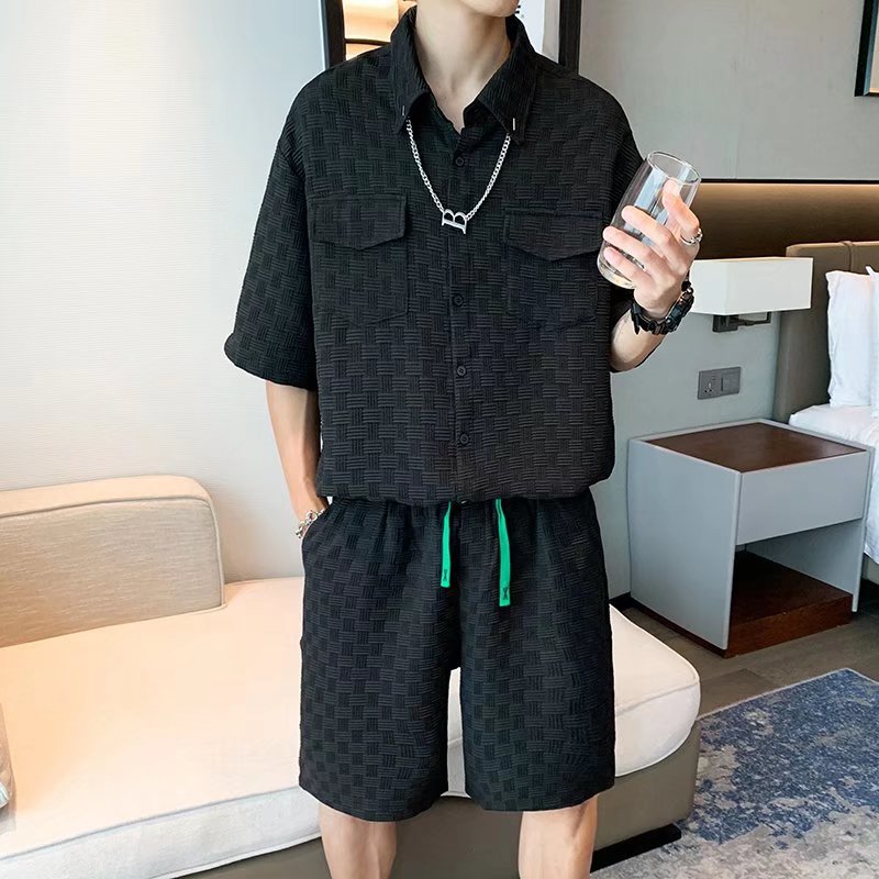 Traje de camiseta de verano para hombres de moda, pantalones cortos deportivos casuales de moda para hombres, traje de dos piezas con un conjunto de ropa, guapo