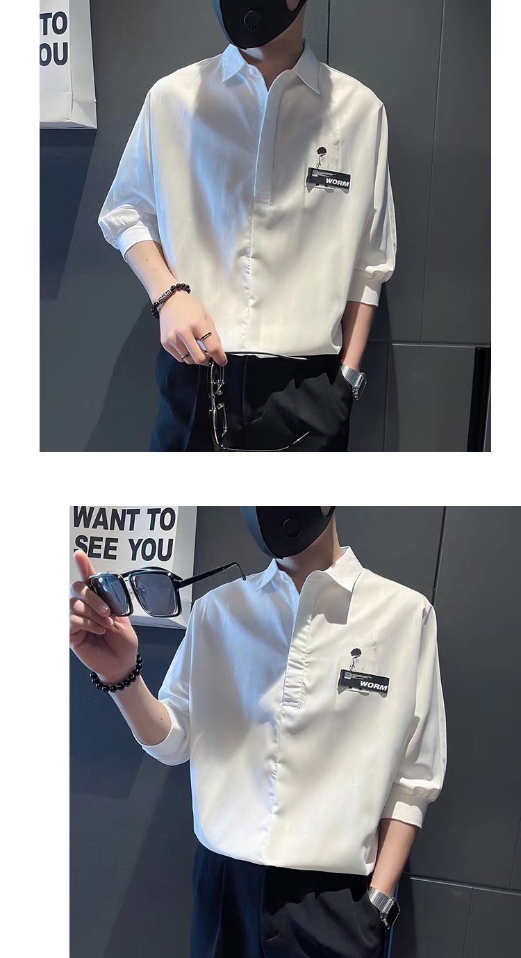 Camisa casual de manga corta retro japonesa para niños, camisa de herramientas asimétrica delgada de verano