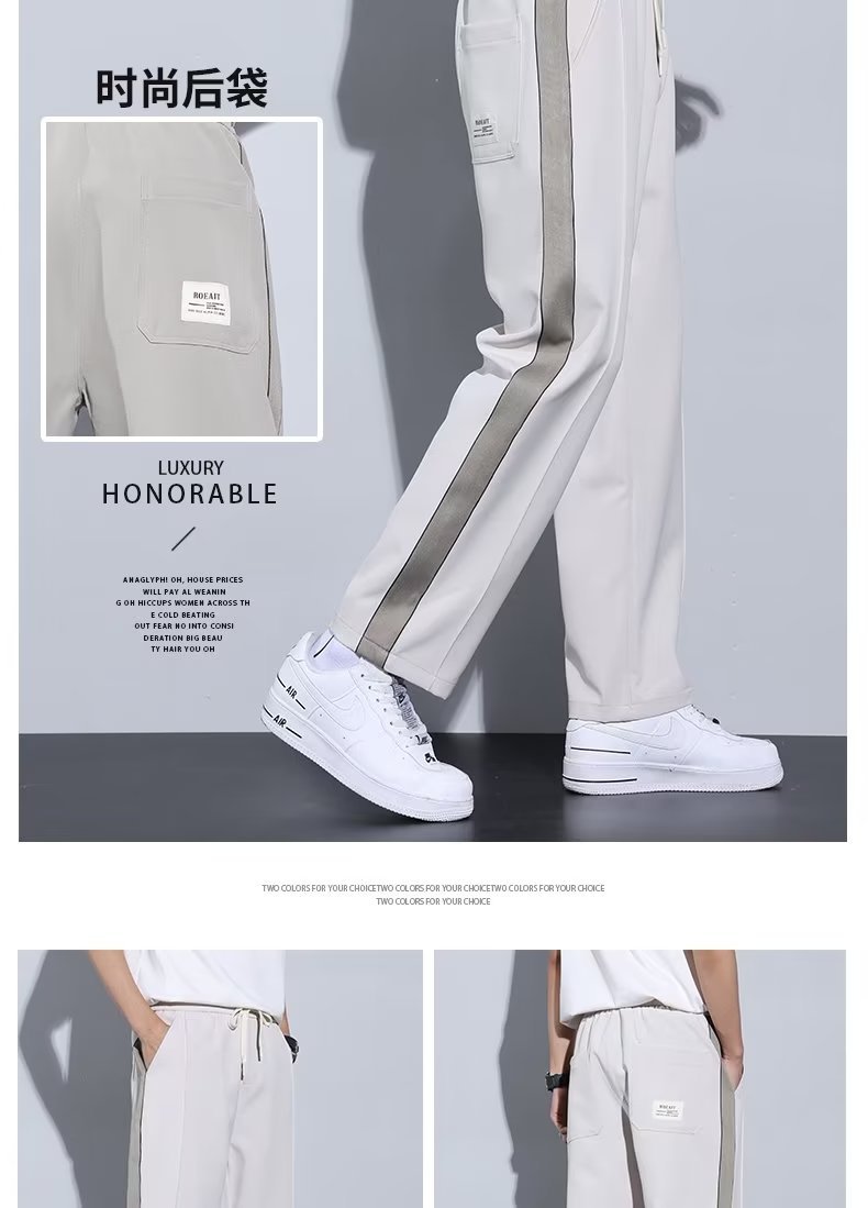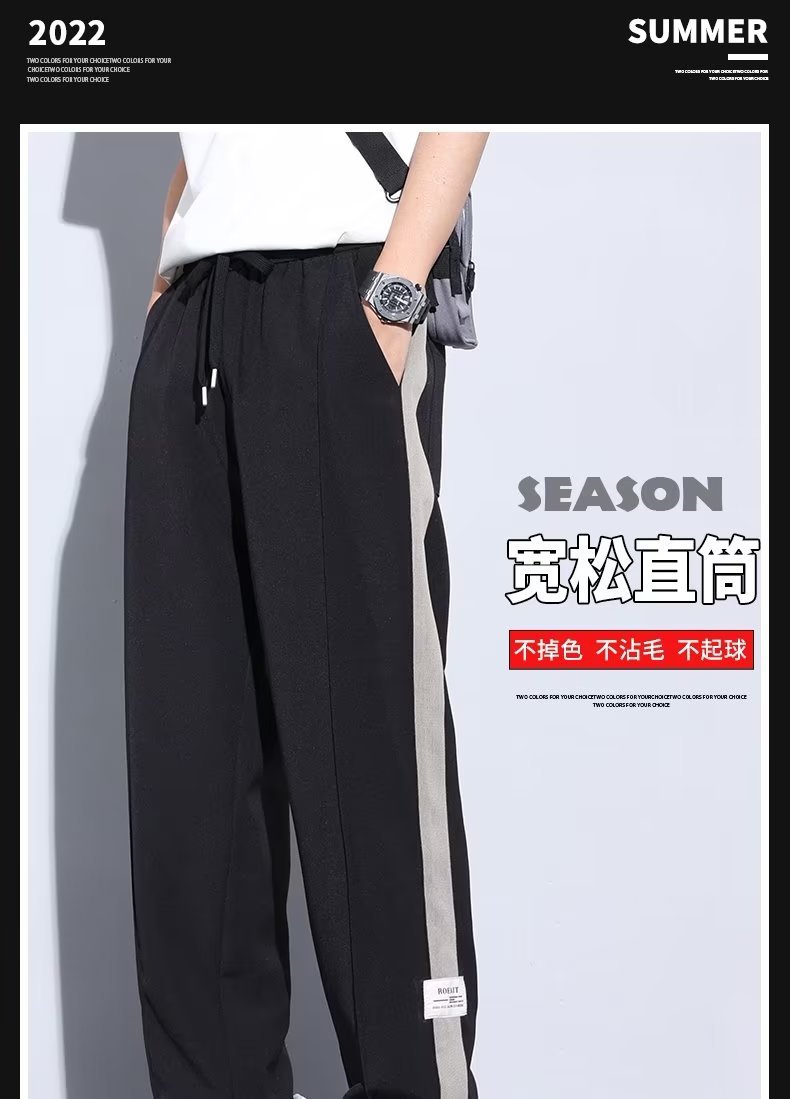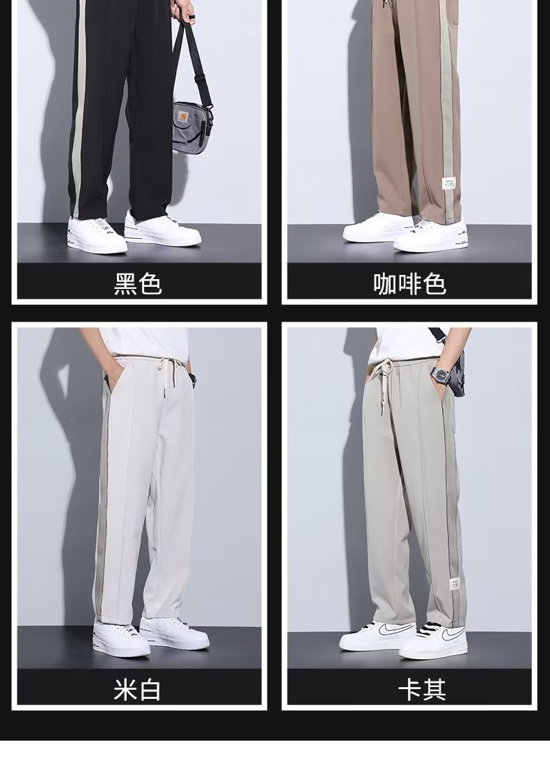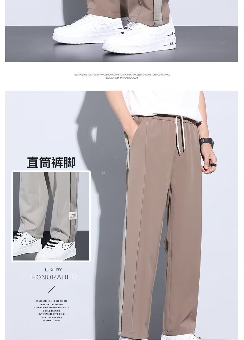 Pantalón casual de color sólido recto de verano drapeado, pantalones para hombre, más grasa, talla grande, pantalones largos de seda de hielo delgados de moda coreana