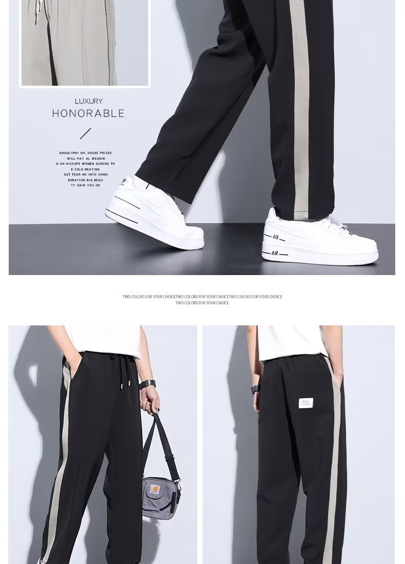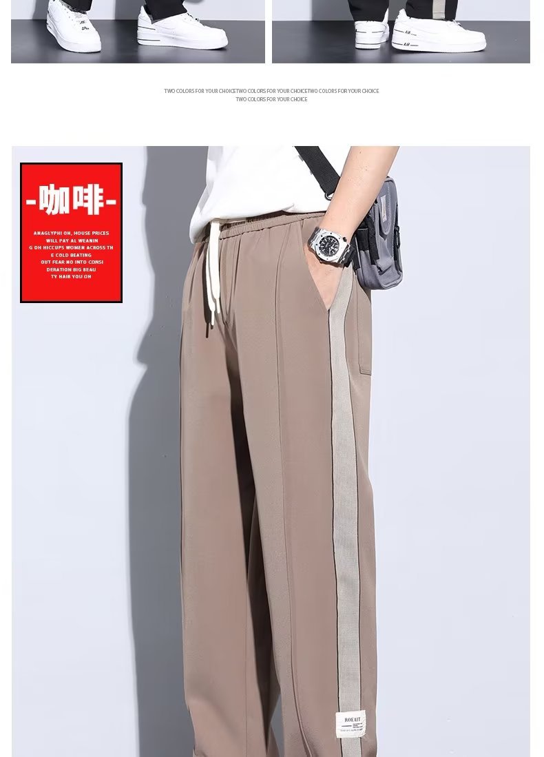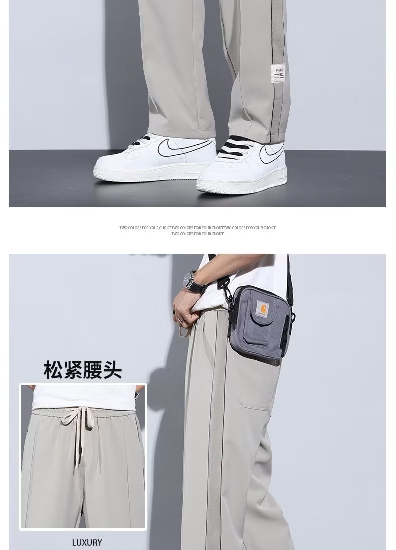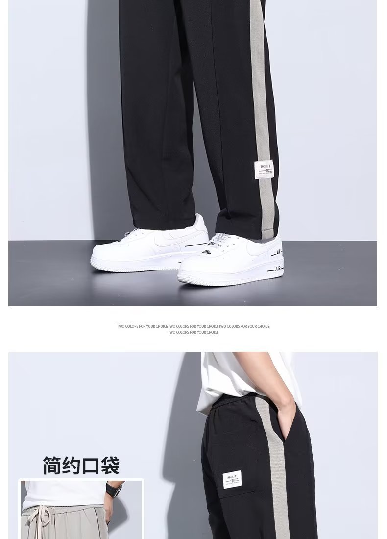Pantalón casual de color sólido recto de verano drapeado, pantalones para hombre, más grasa, talla grande, pantalones largos de seda de hielo delgados de moda coreana
