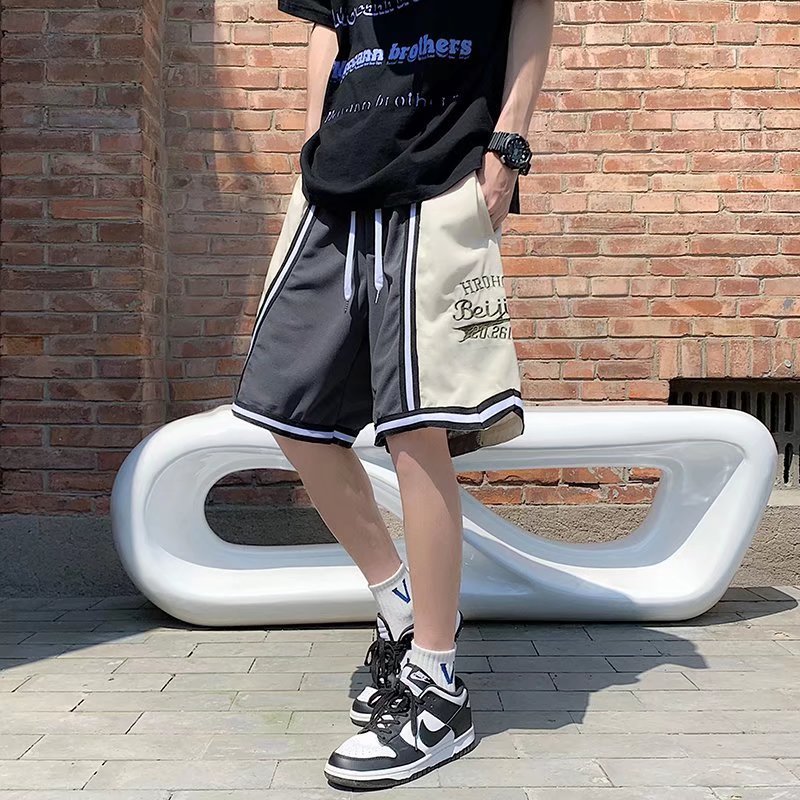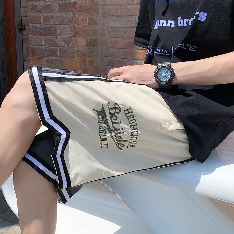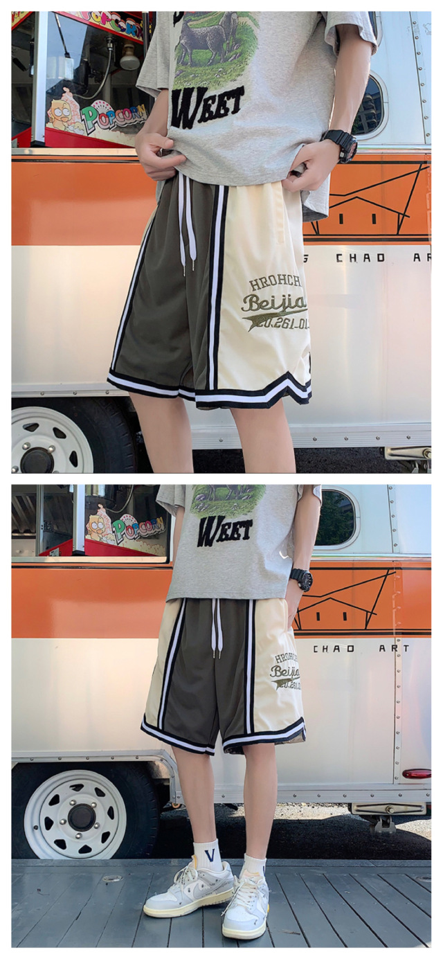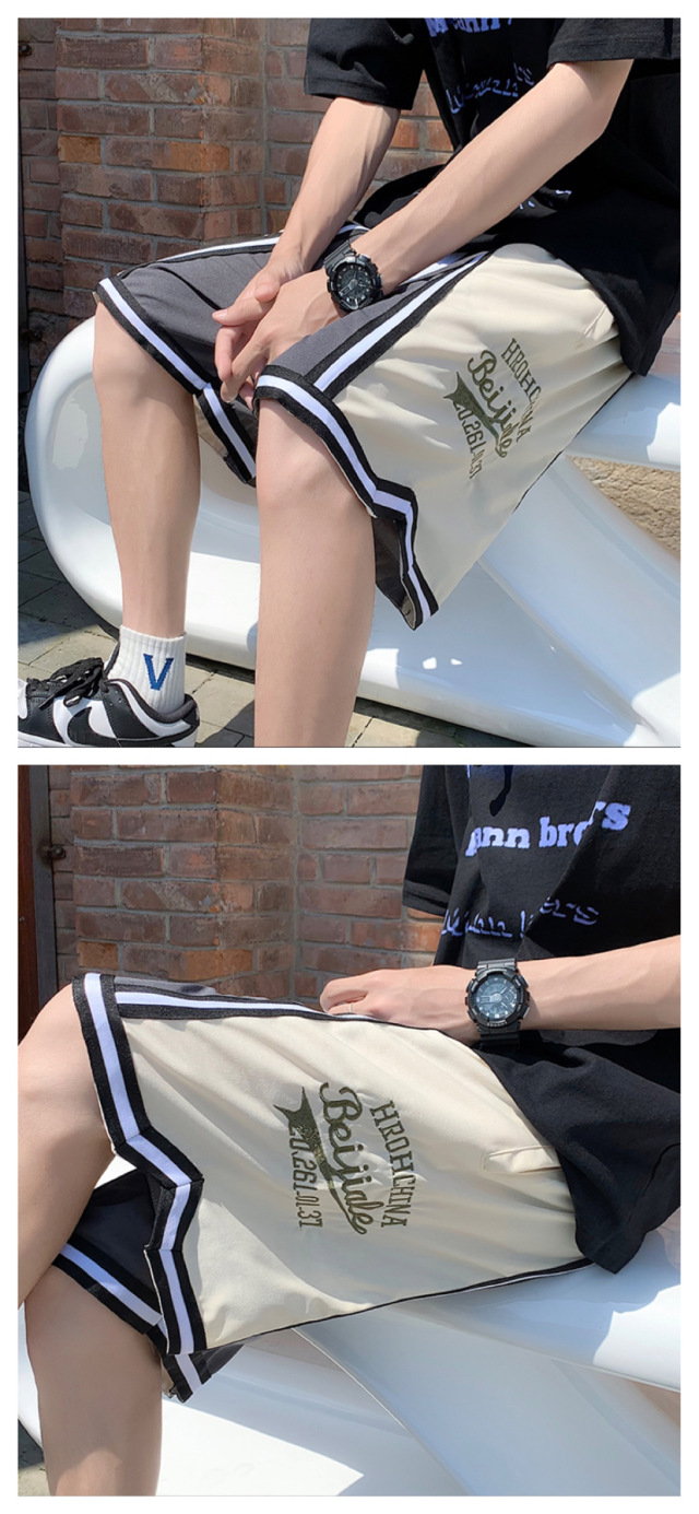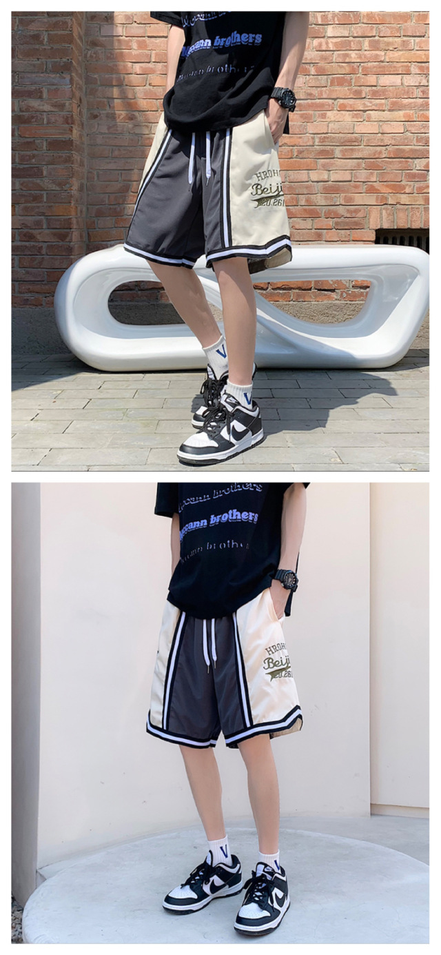 Pantalones cortos casuales de verano simples para hombres ins marca de moda color sólido contraste moda suelta pierna recta pantalones deportivos de cinco puntos