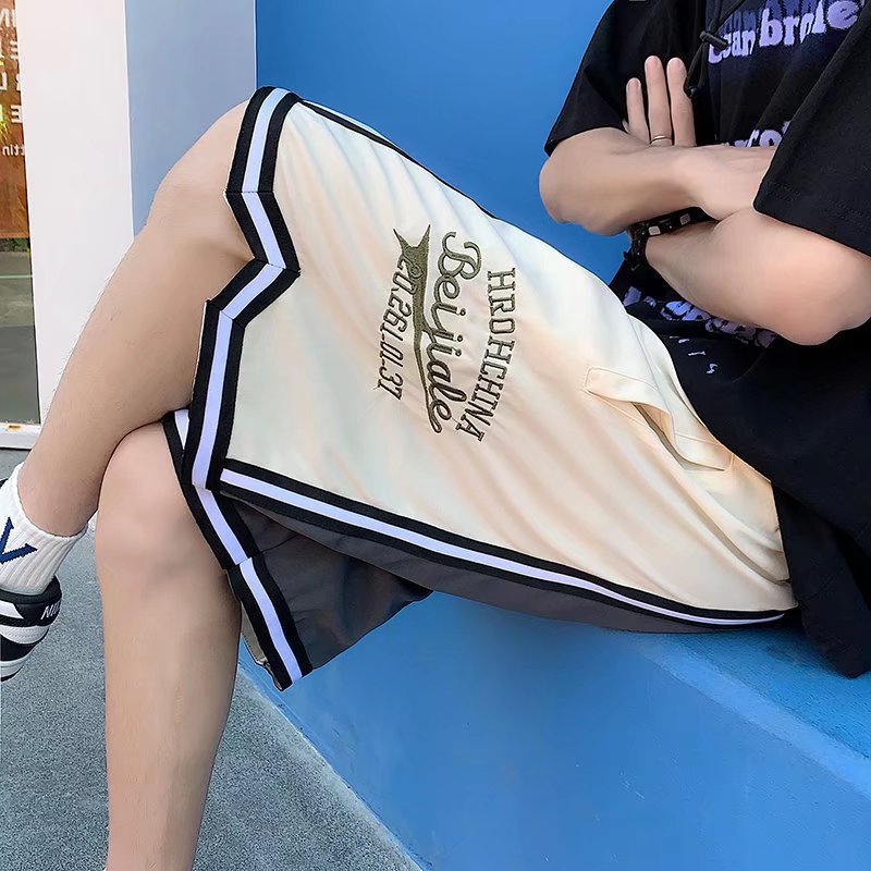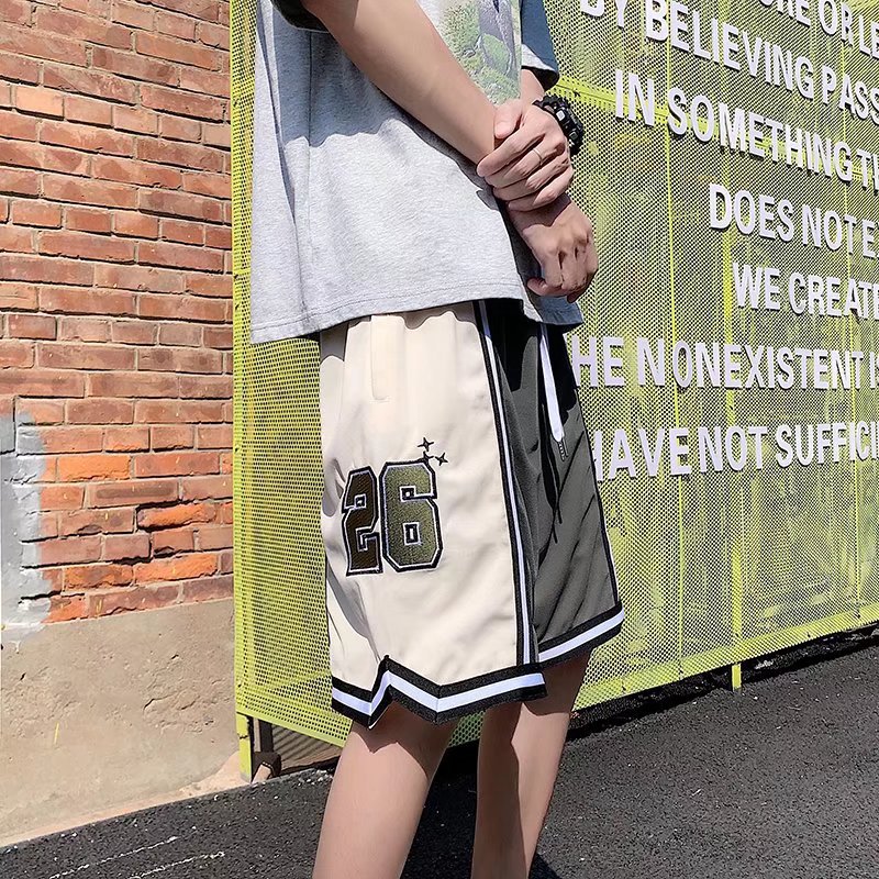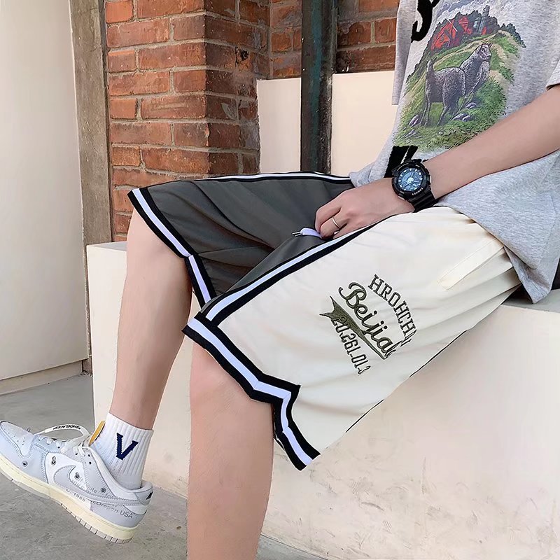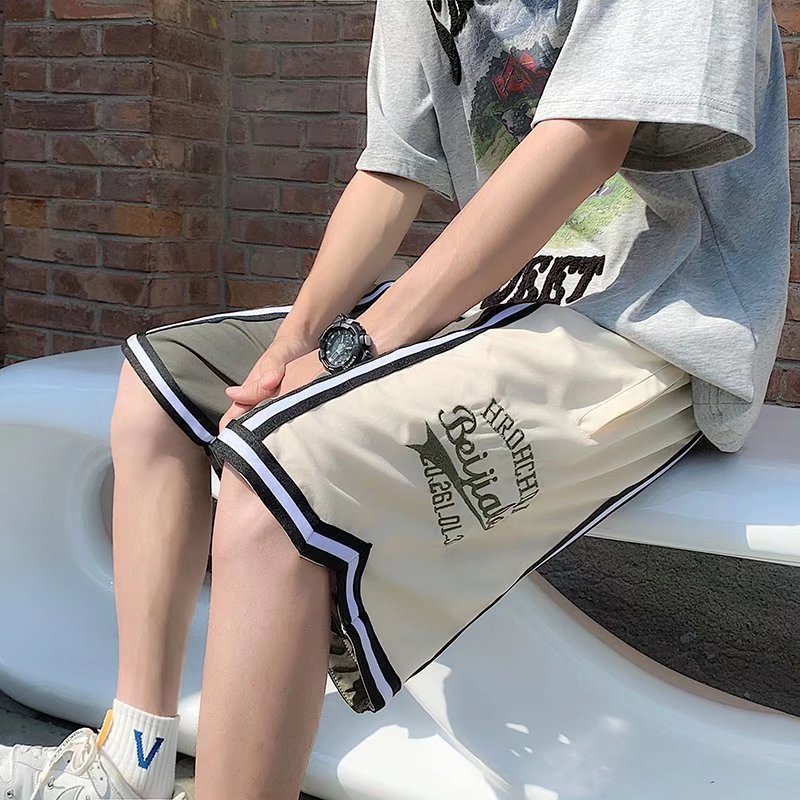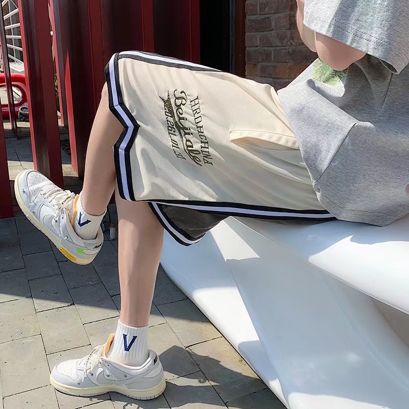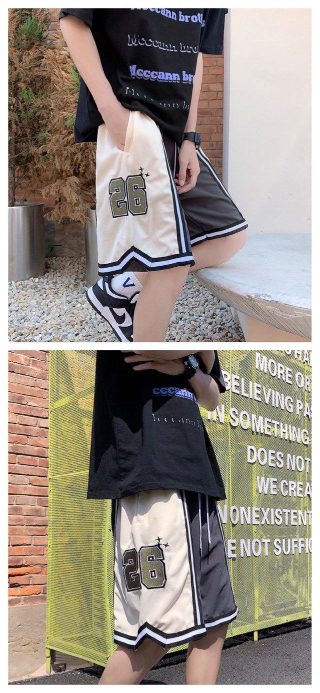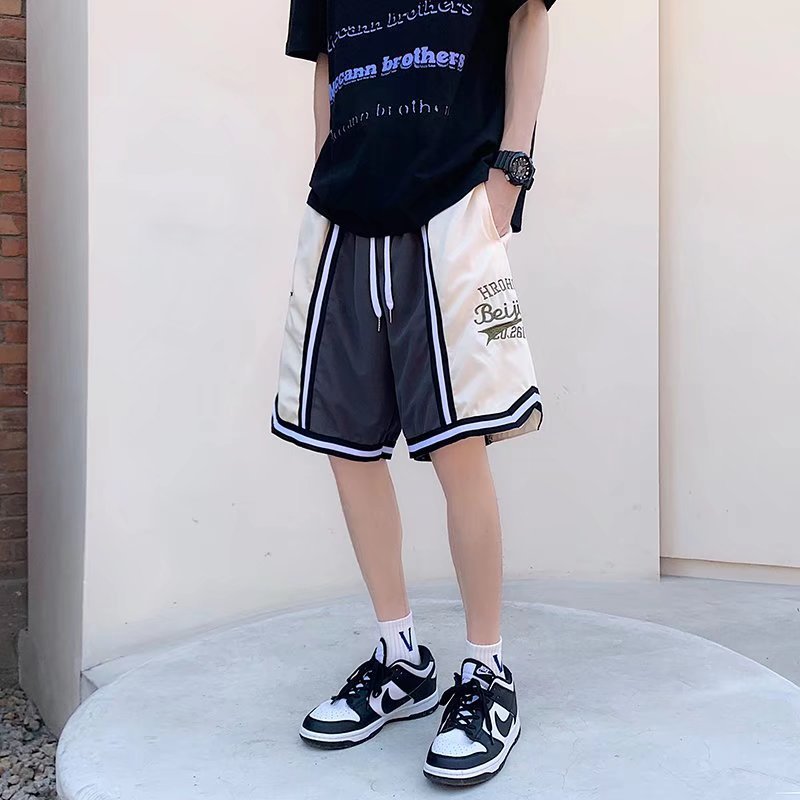 Pantalones cortos casuales de verano simples para hombres ins marca de moda color sólido contraste moda suelta pierna recta pantalones deportivos de cinco puntos