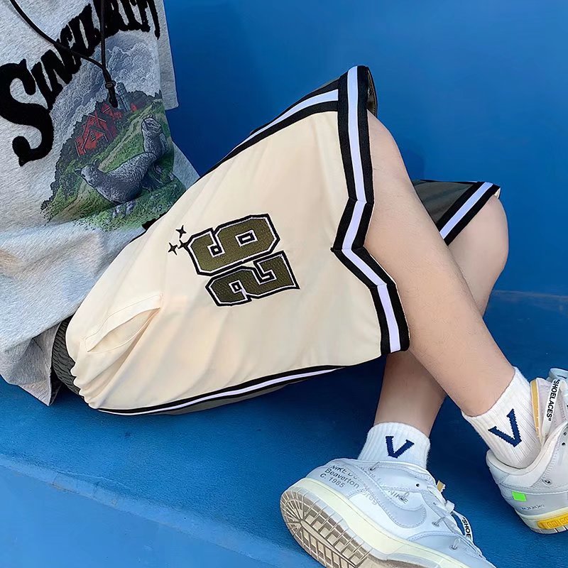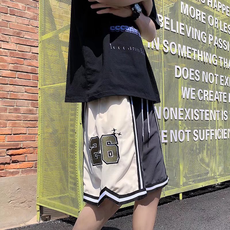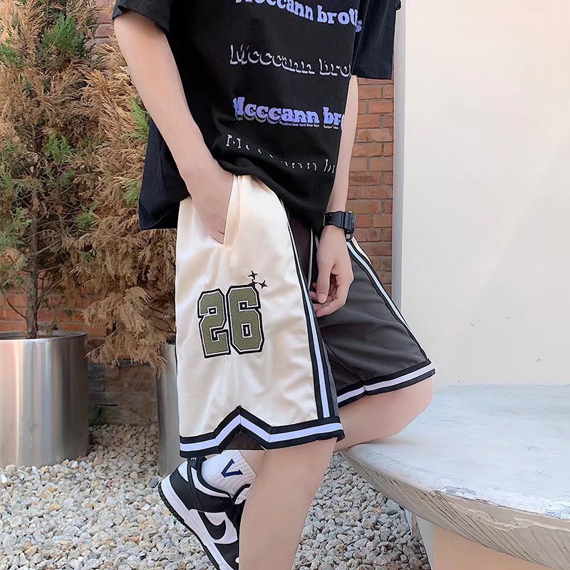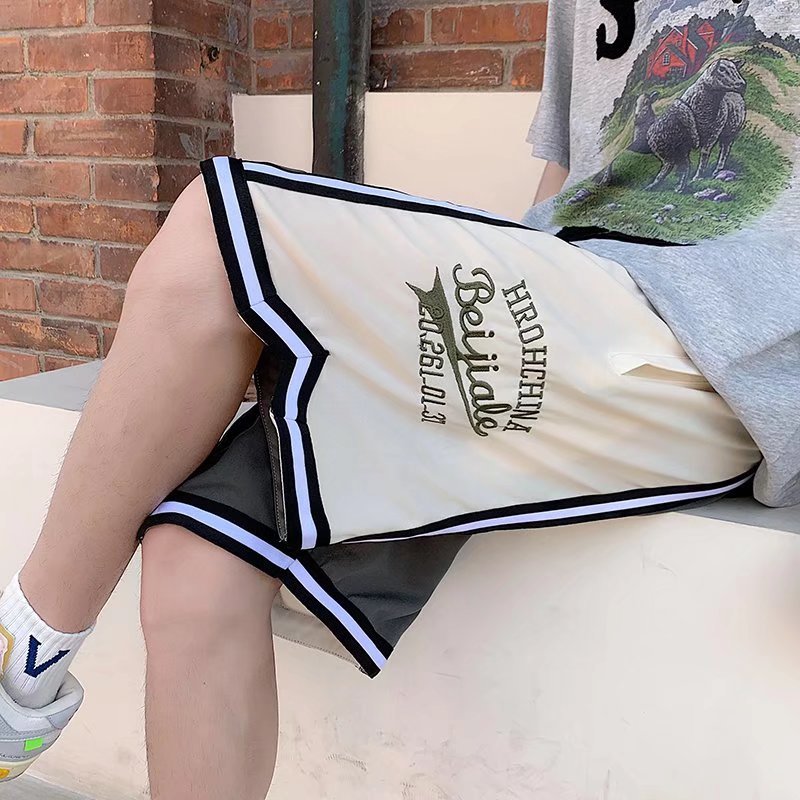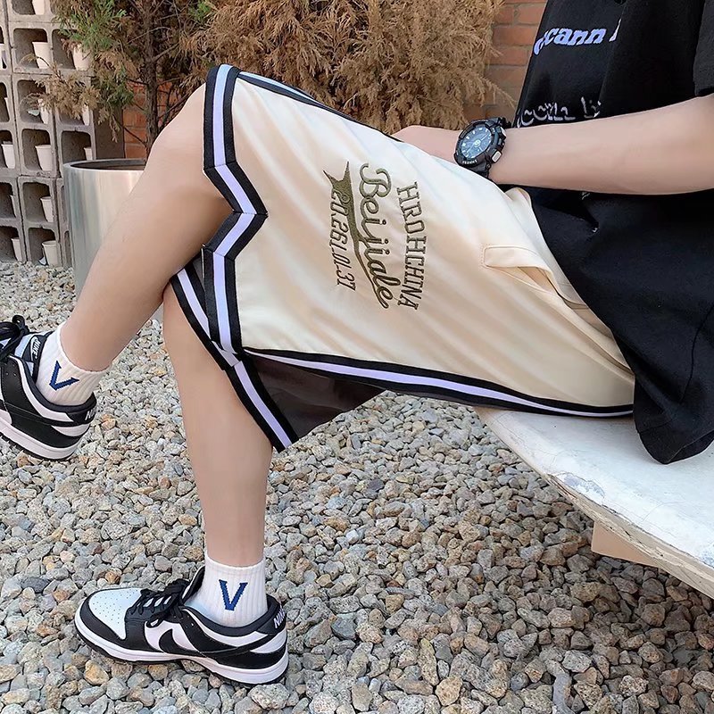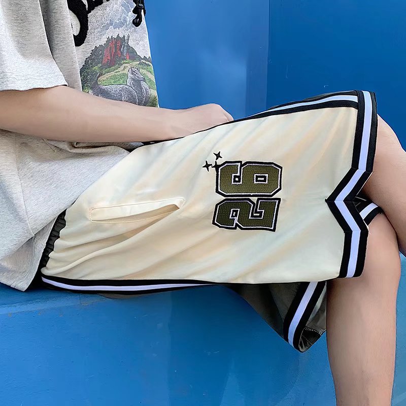 Pantalones cortos casuales de verano simples para hombres ins marca de moda color sólido contraste moda suelta pierna recta pantalones deportivos de cinco puntos
