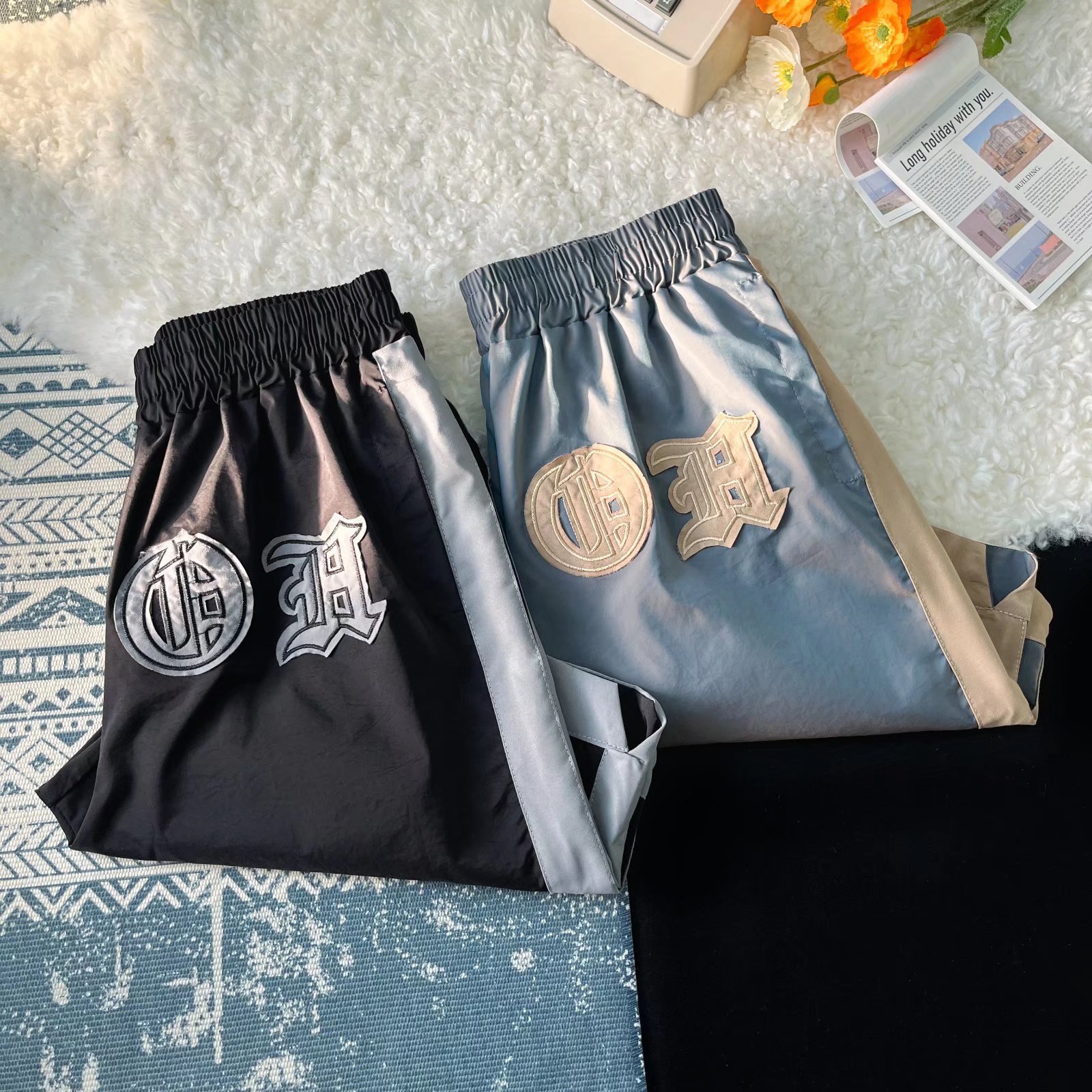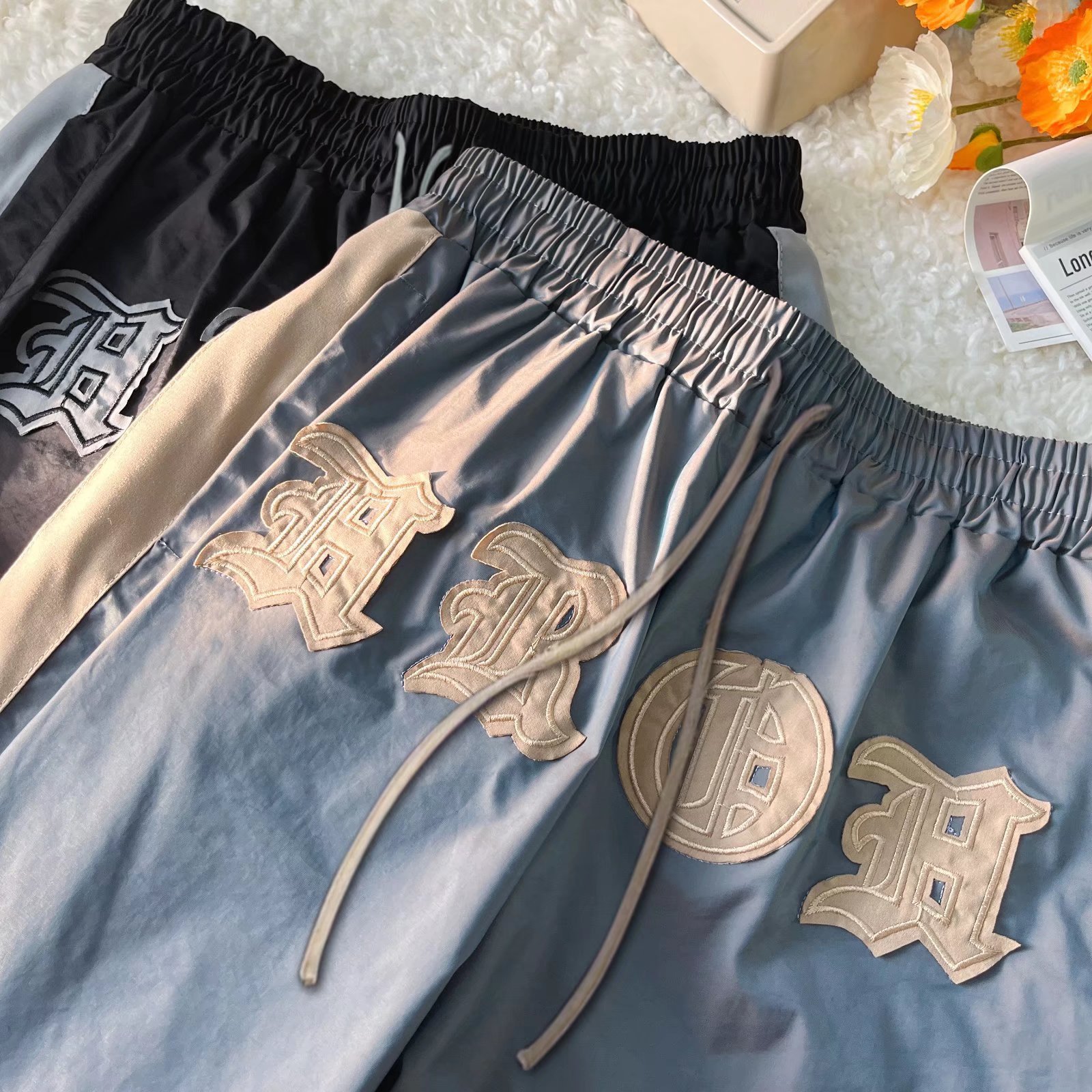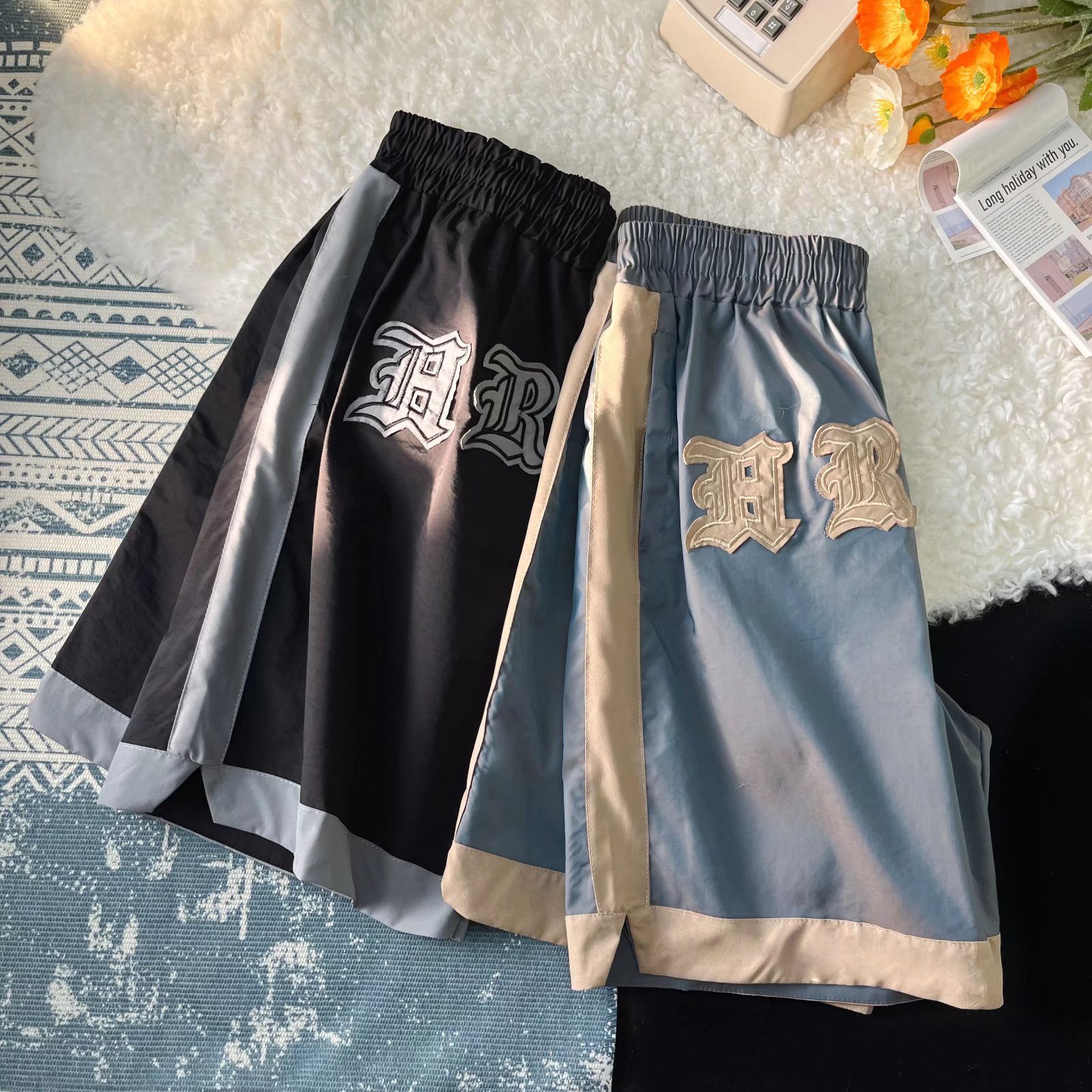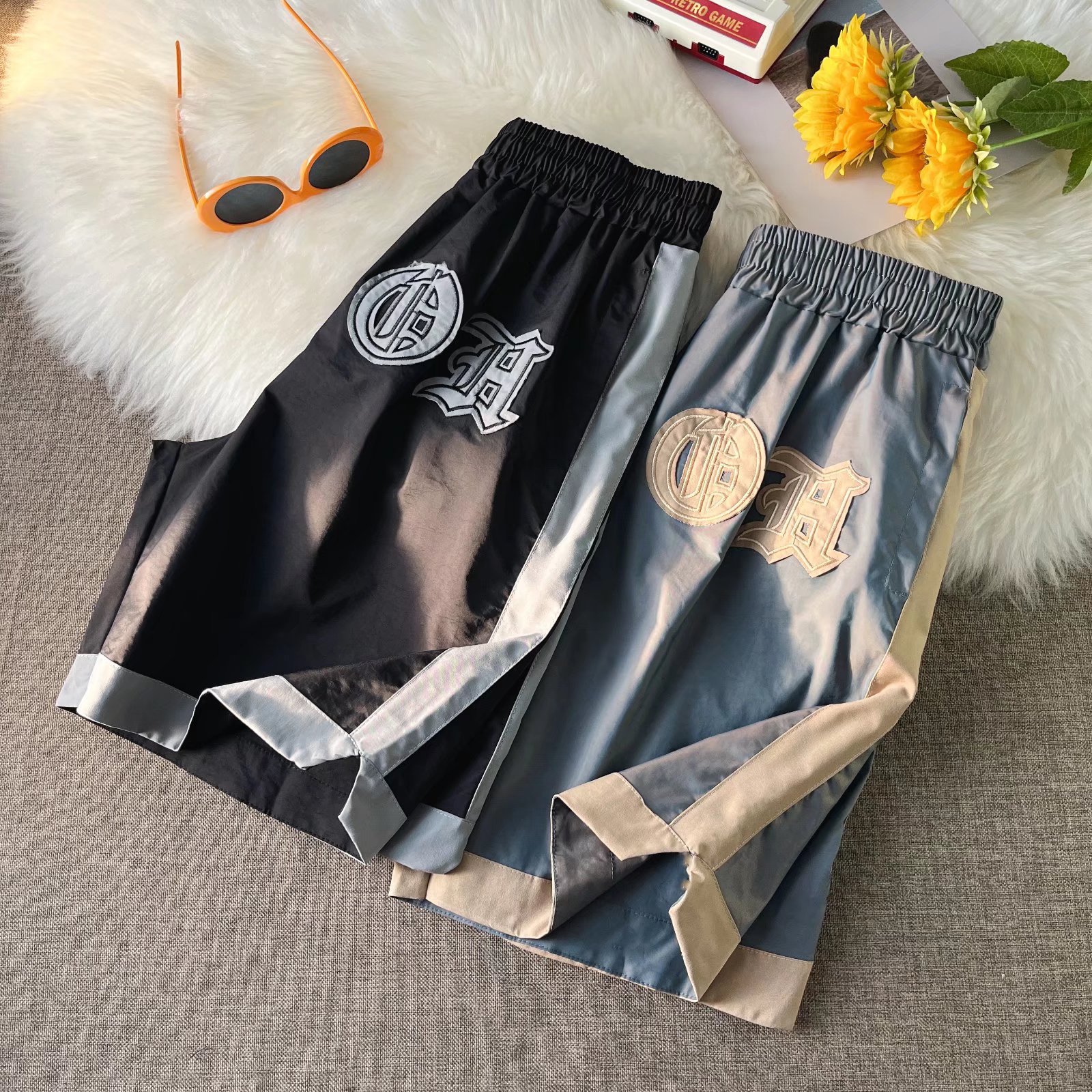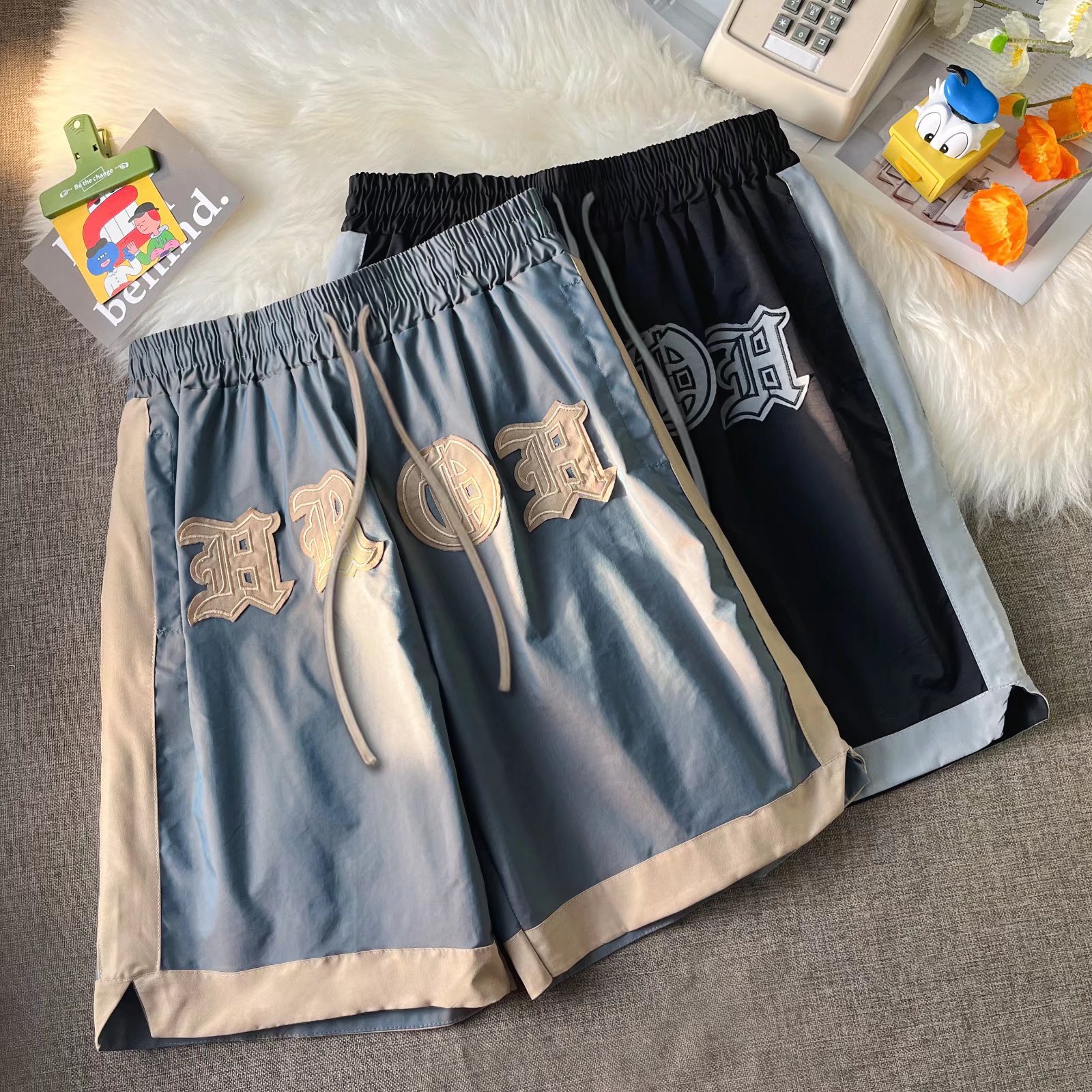 2024 Primavera/Verano Marca de moda callejera europea y americana Nuevos productos Camaleón con sentido de la luz Bordado de color de contraste Moda Deportes Casual Shorts Hombres