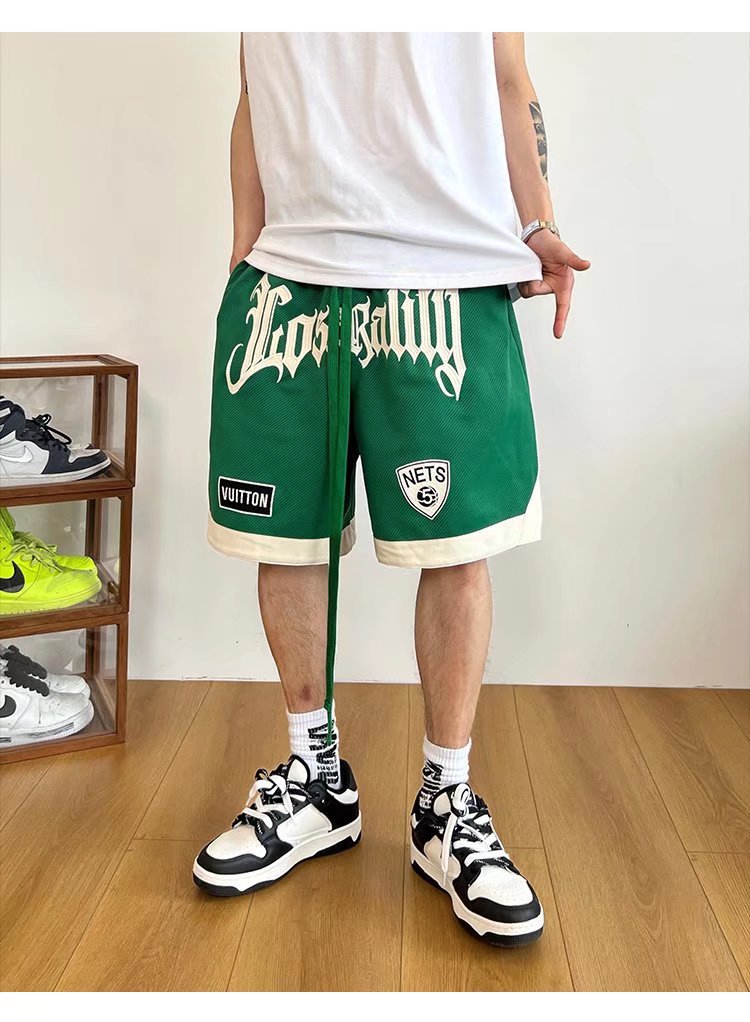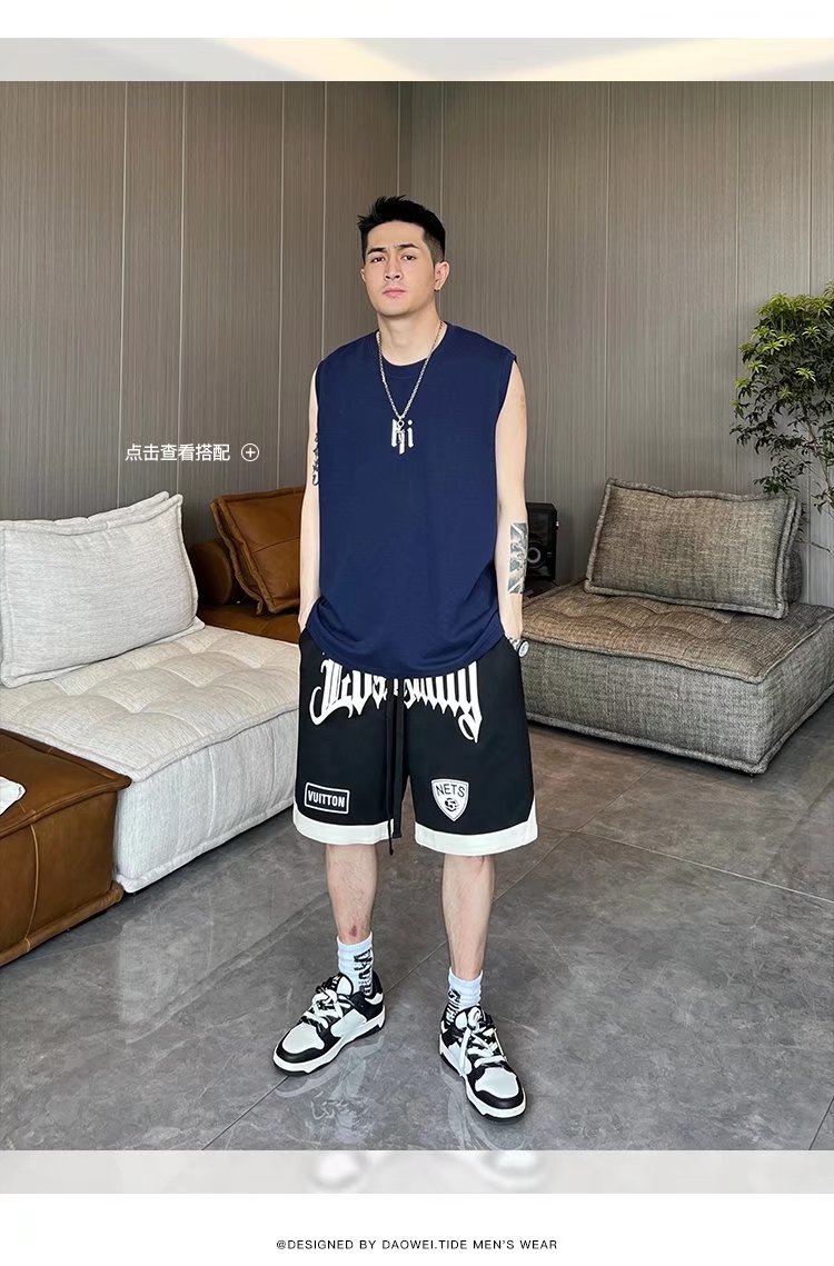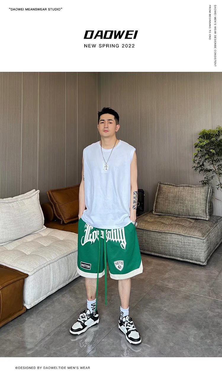 Nuevos pantalones cortos 2024 para hombre, marca de moda, color sólido, contraste simple, pantalones de chándal de cinco puntos rectos sueltos casuales