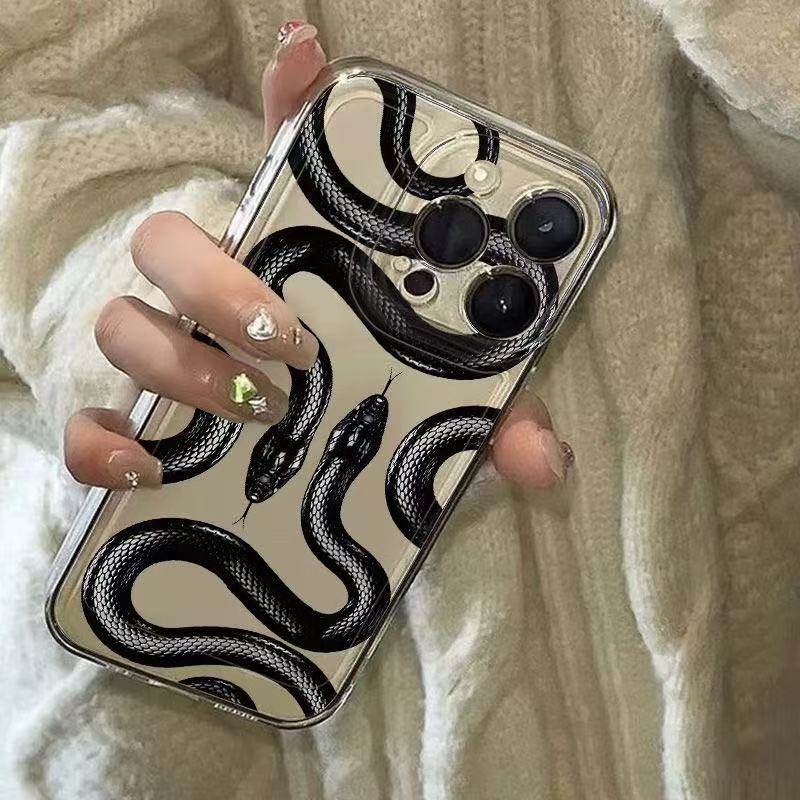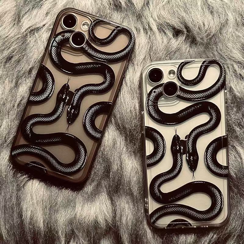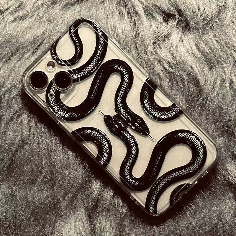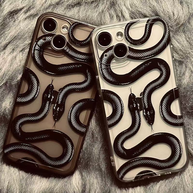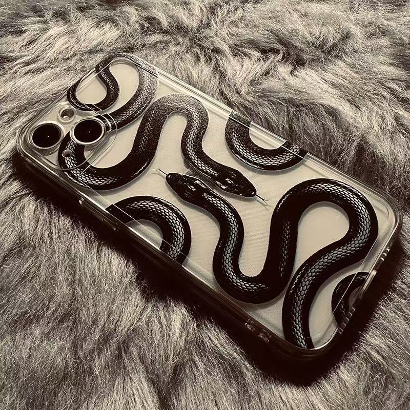 Creativa serpiente negra para iphone16promax funda para teléfono móvil transparente Apple 15 anti-caída 14pro Europa y América 13/12