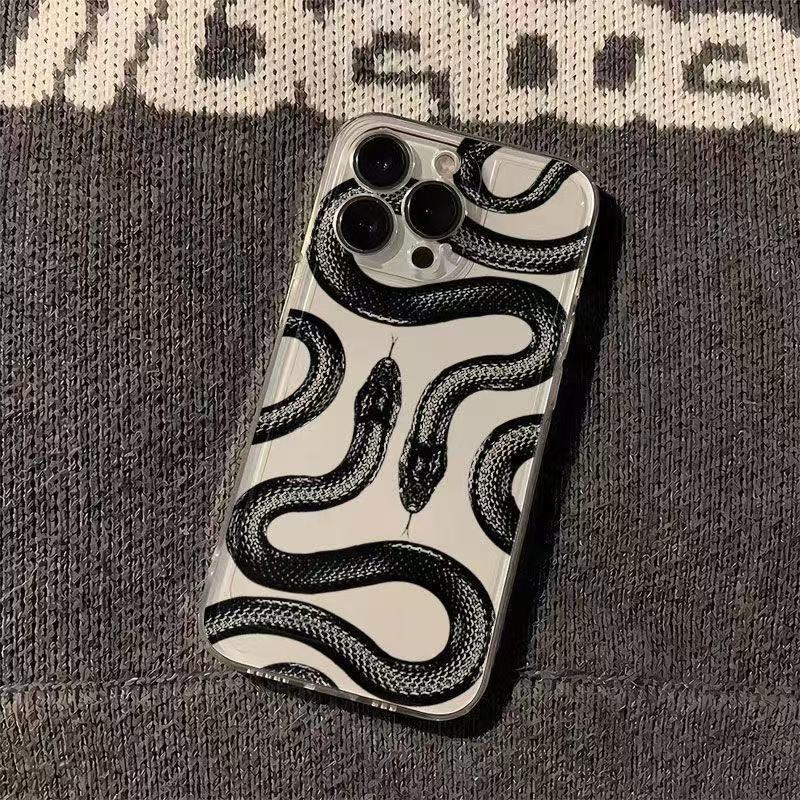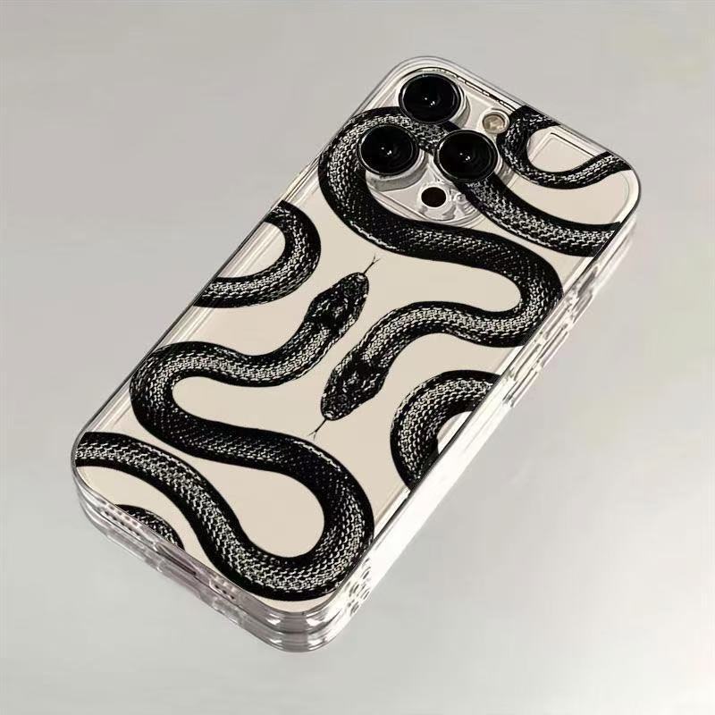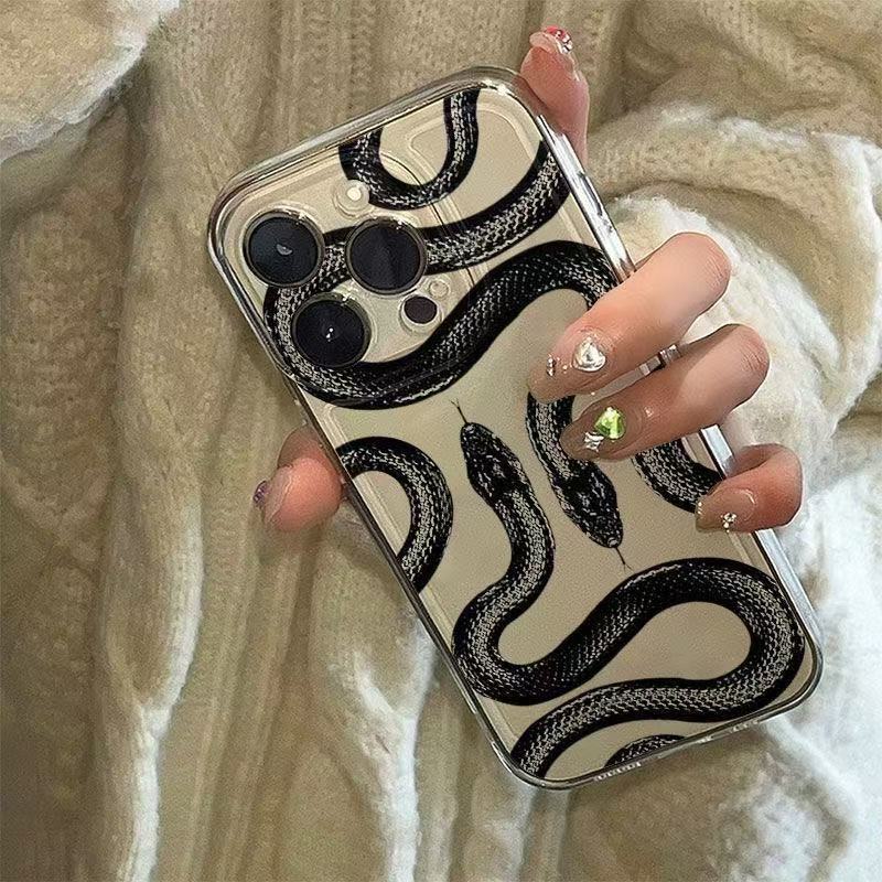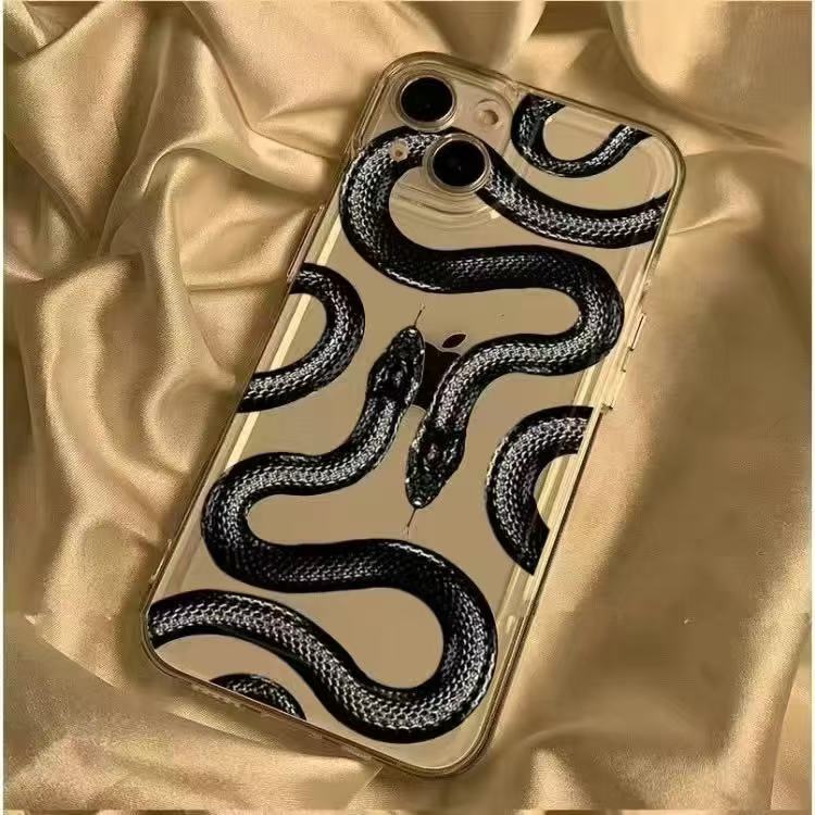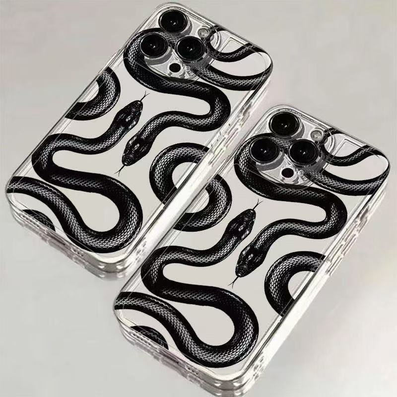 Creativa serpiente negra para iphone16promax funda para teléfono móvil transparente Apple 15 anti-caída 14pro Europa y América 13/12