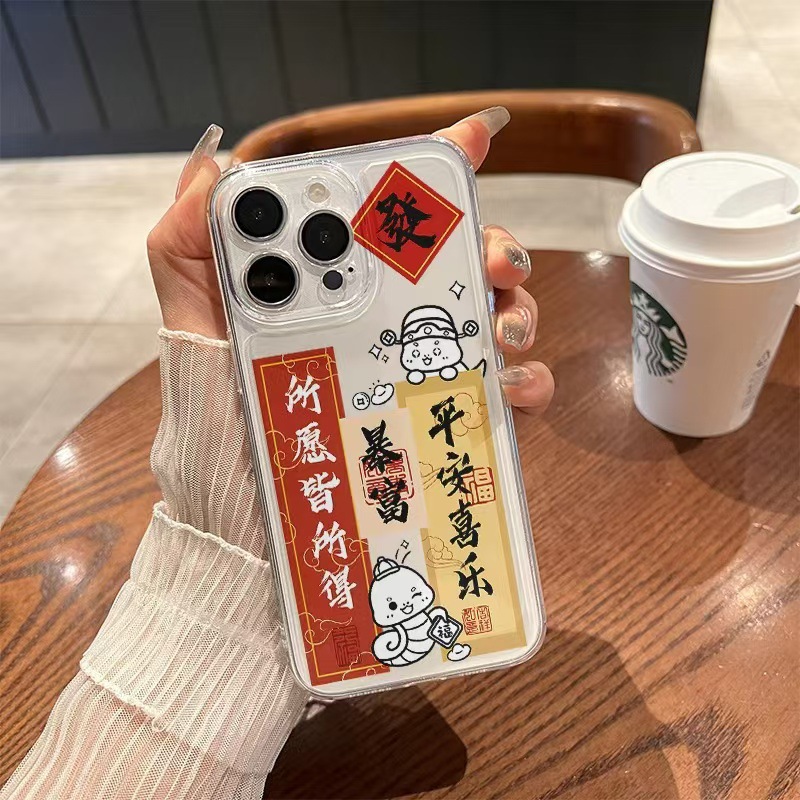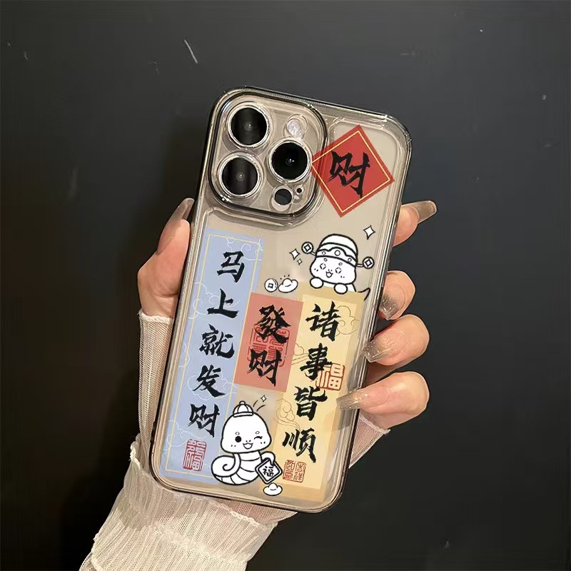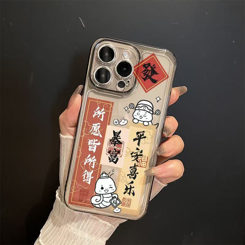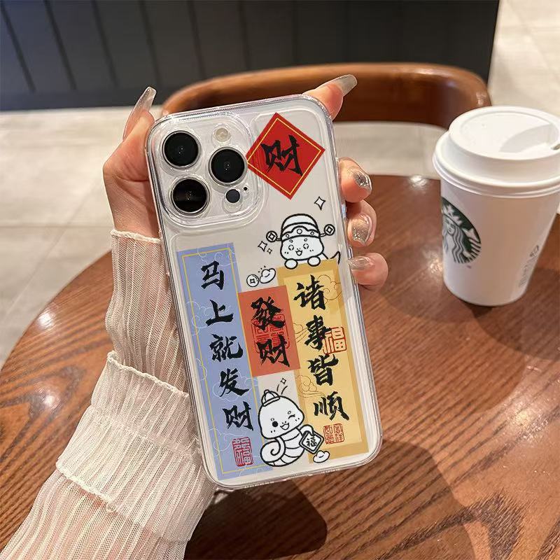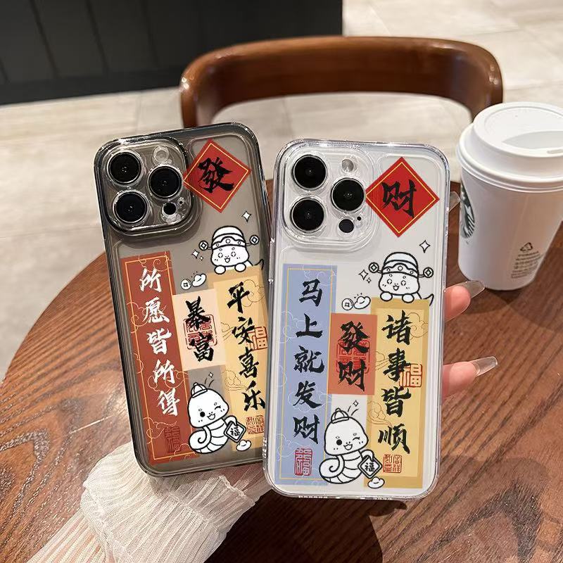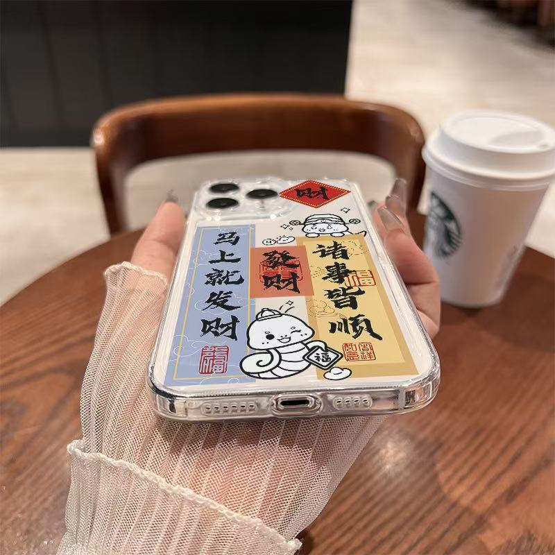 El nuevo año de la serpiente se aplica a la carcasa del teléfono iphone16promax transparente Apple 15 anti-caída 14pro seguro 13/12