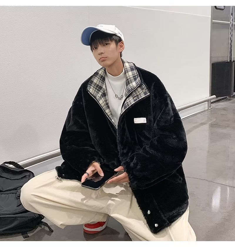 Chaqueta acolchada de algodón de doble cara retro estilo de Hong Kong para hombres y mujeres invierno estilo coreano chic estilo de Hong Kong ropa acolchada gruesa informal de moda
