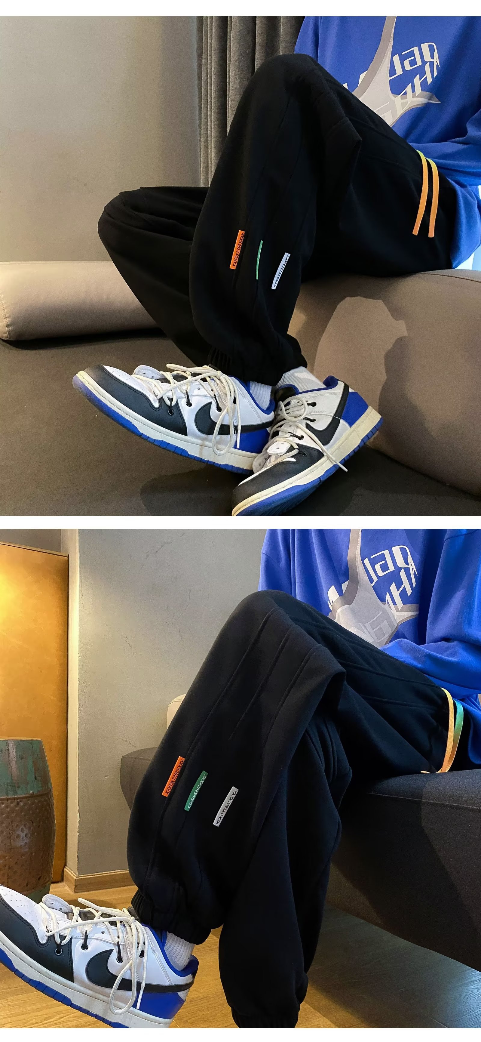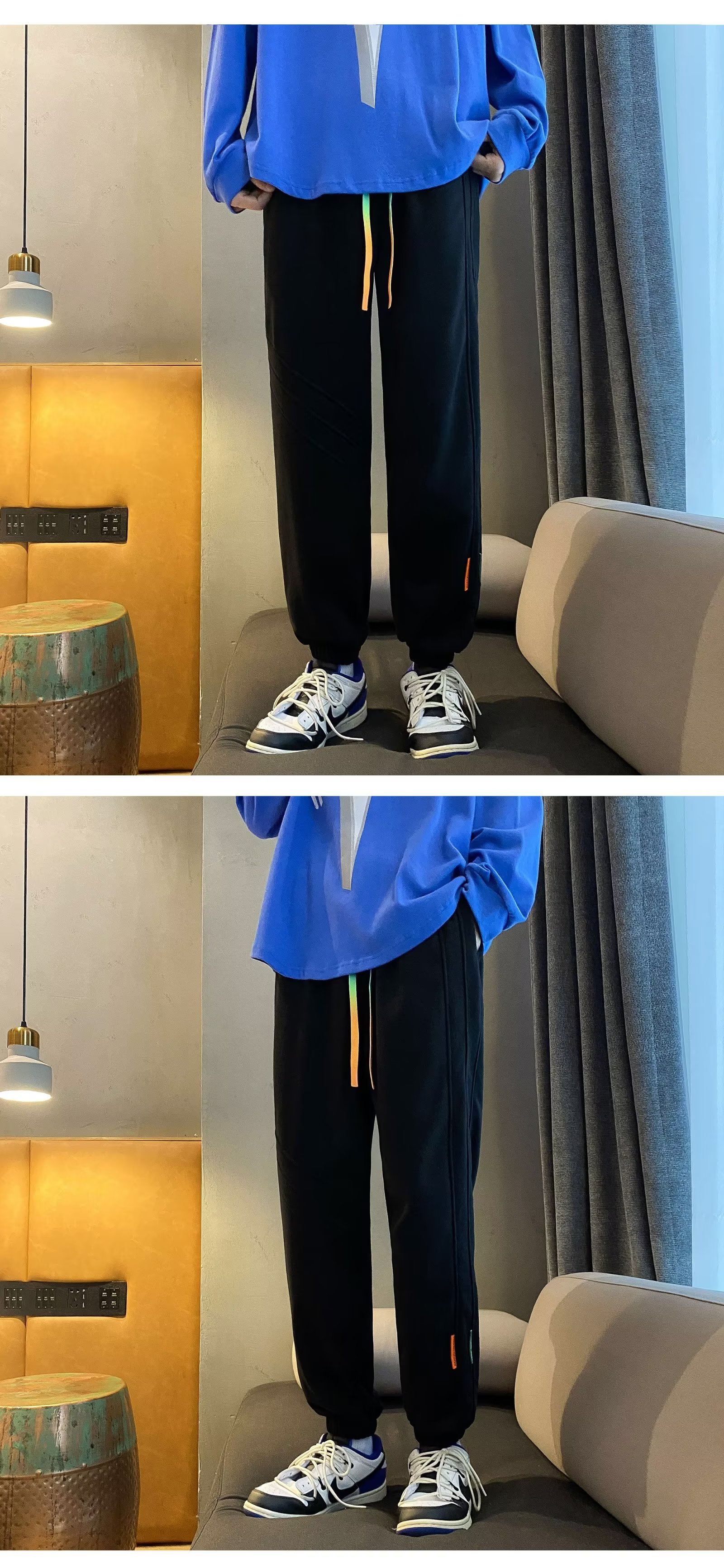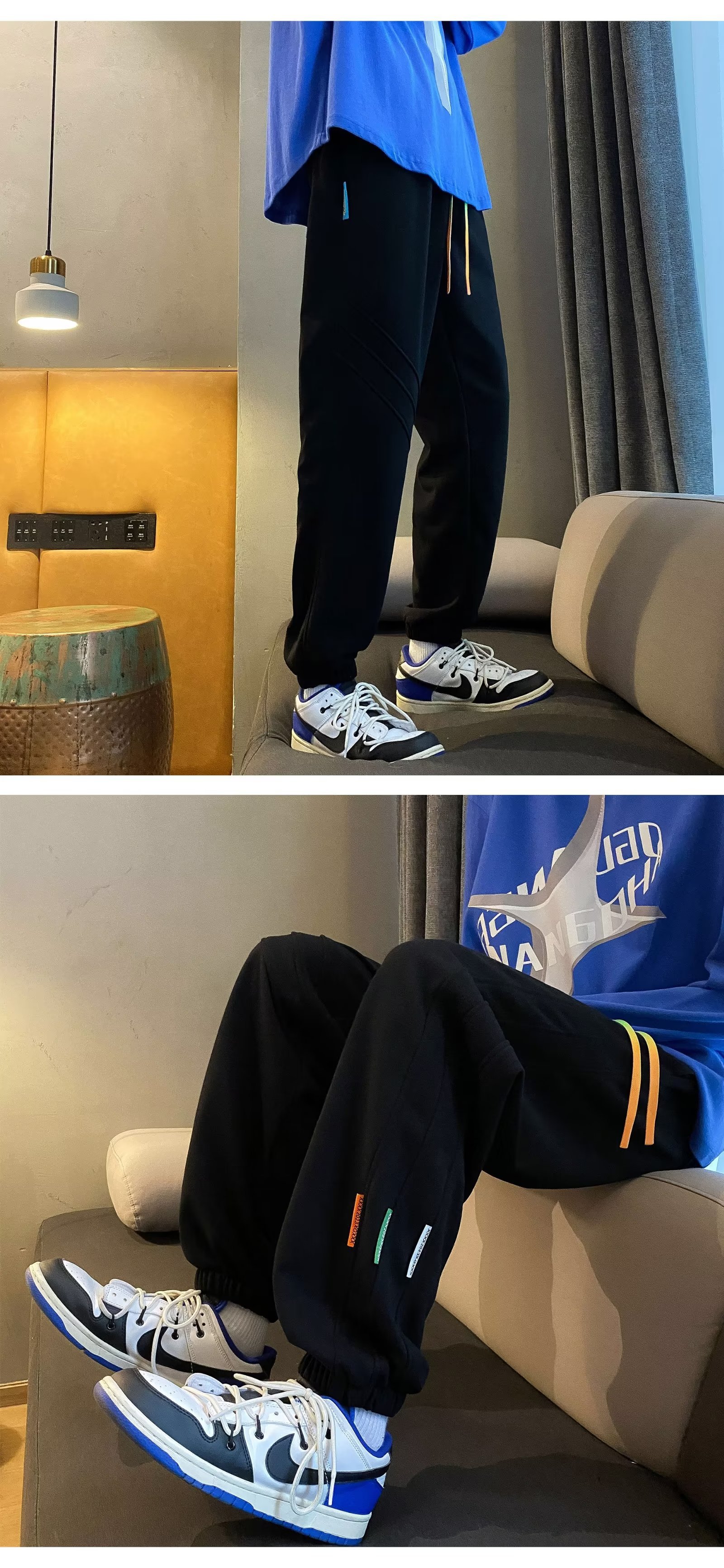 Pantalones con corsé de verano y otoño, pantalones deportivos para hombres, marca de moda, pantalones casuales sueltos de gran tamaño, pantalones cortos de todo fósforo para hombres