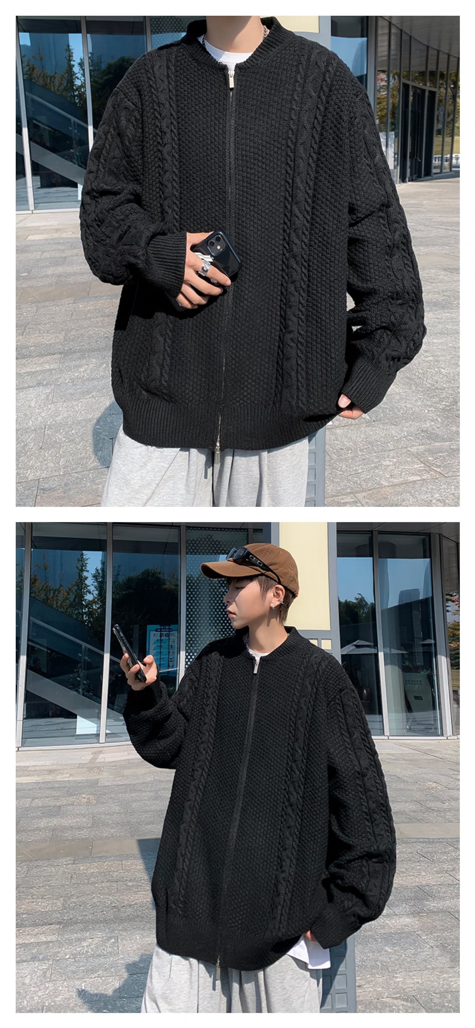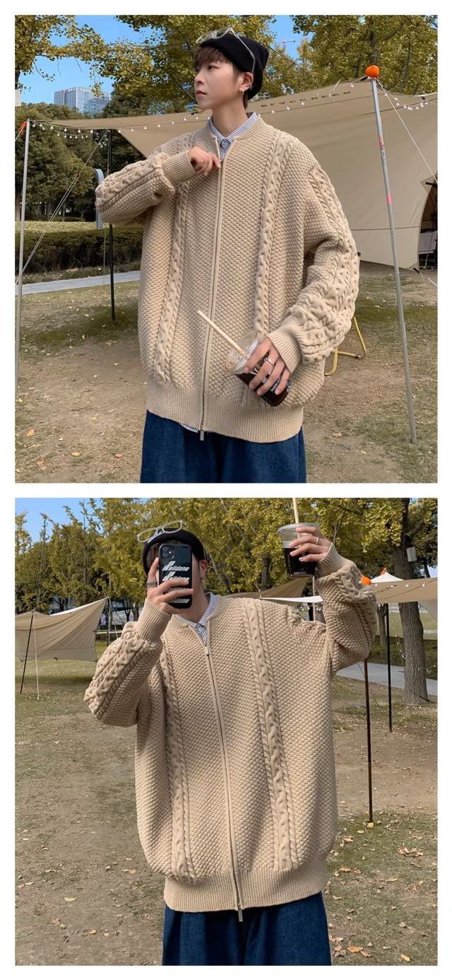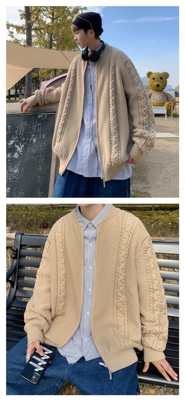 Chaqueta de punto de manga larga con patrón de piña de color sólido de todo fósforo, estilo de Hong Kong, chaqueta de rebeca de gofres retro, ropa casual hermosa de otoño
