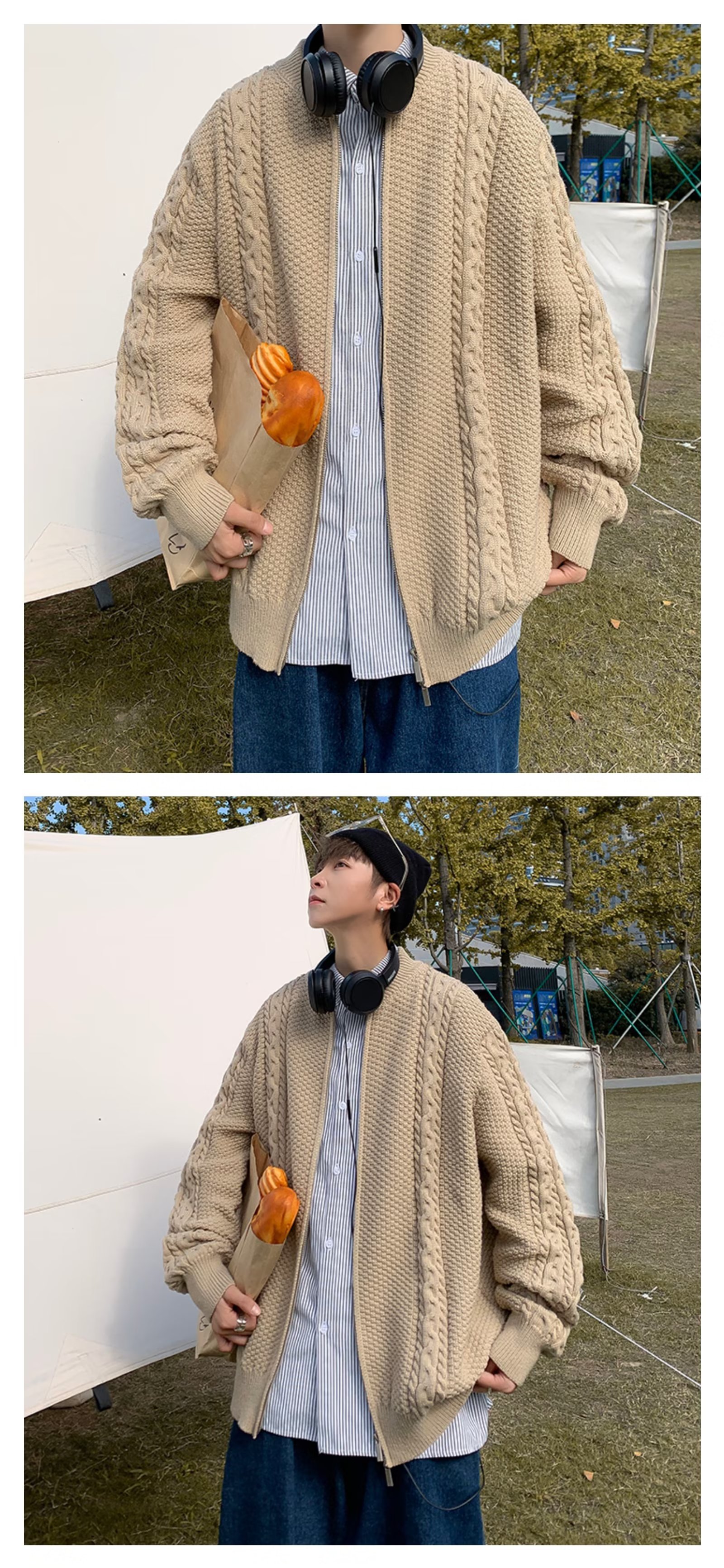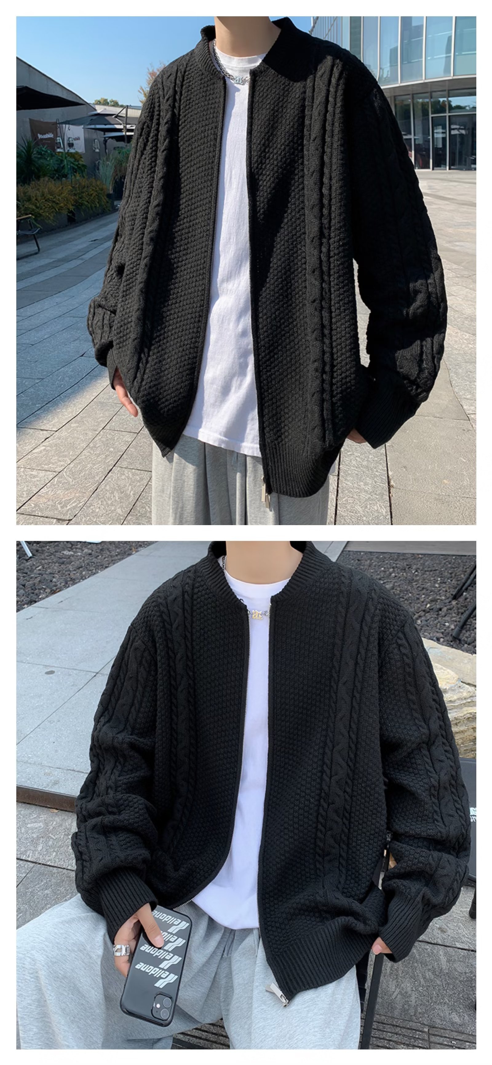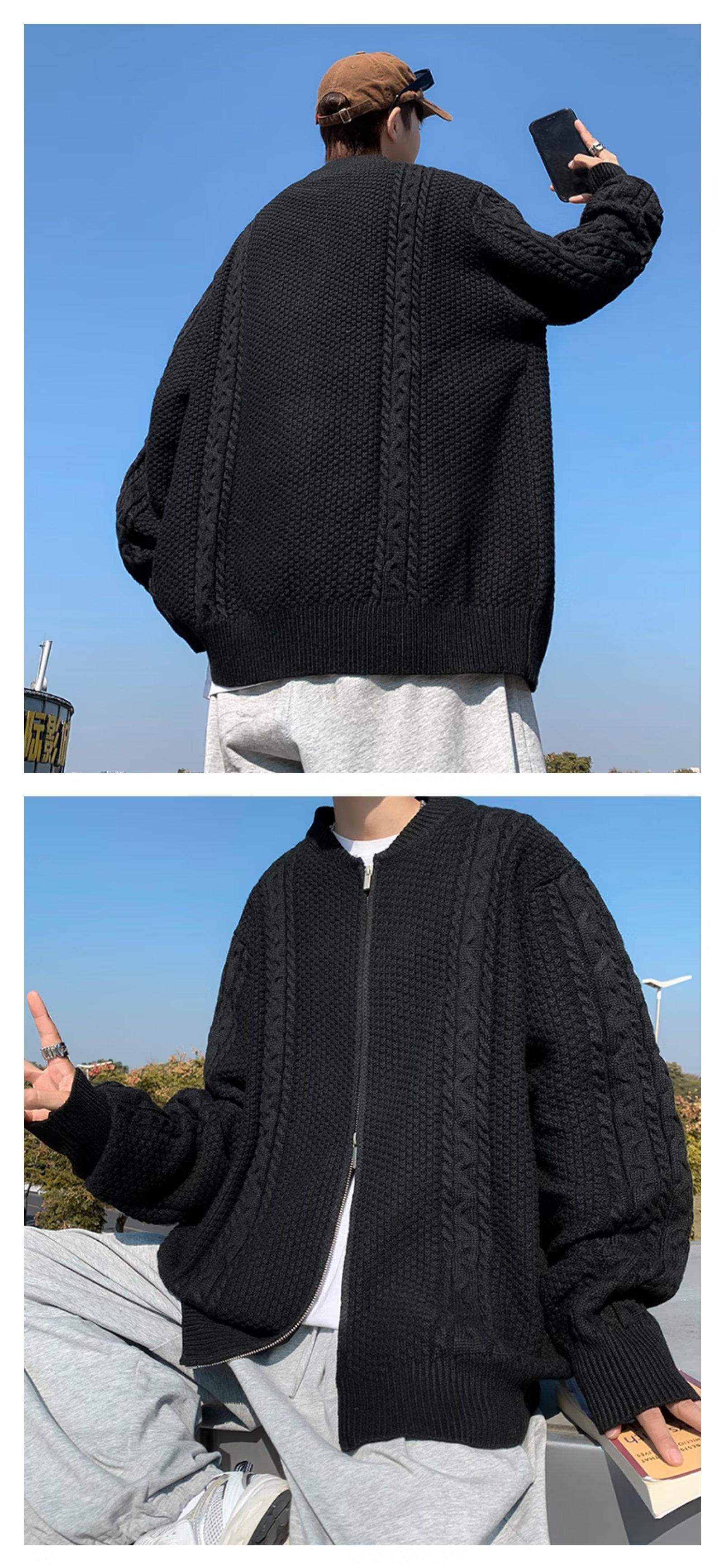 Chaqueta de punto de manga larga con patrón de piña de color sólido de todo fósforo, estilo de Hong Kong, chaqueta de rebeca de gofres retro, ropa casual hermosa de otoño