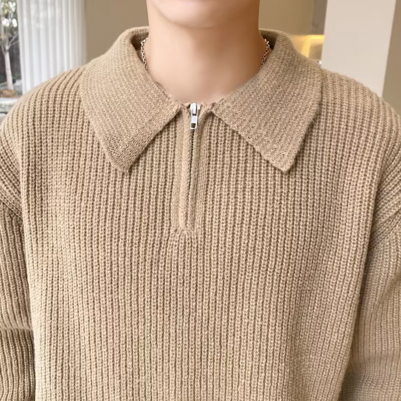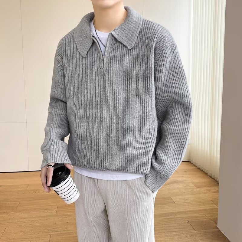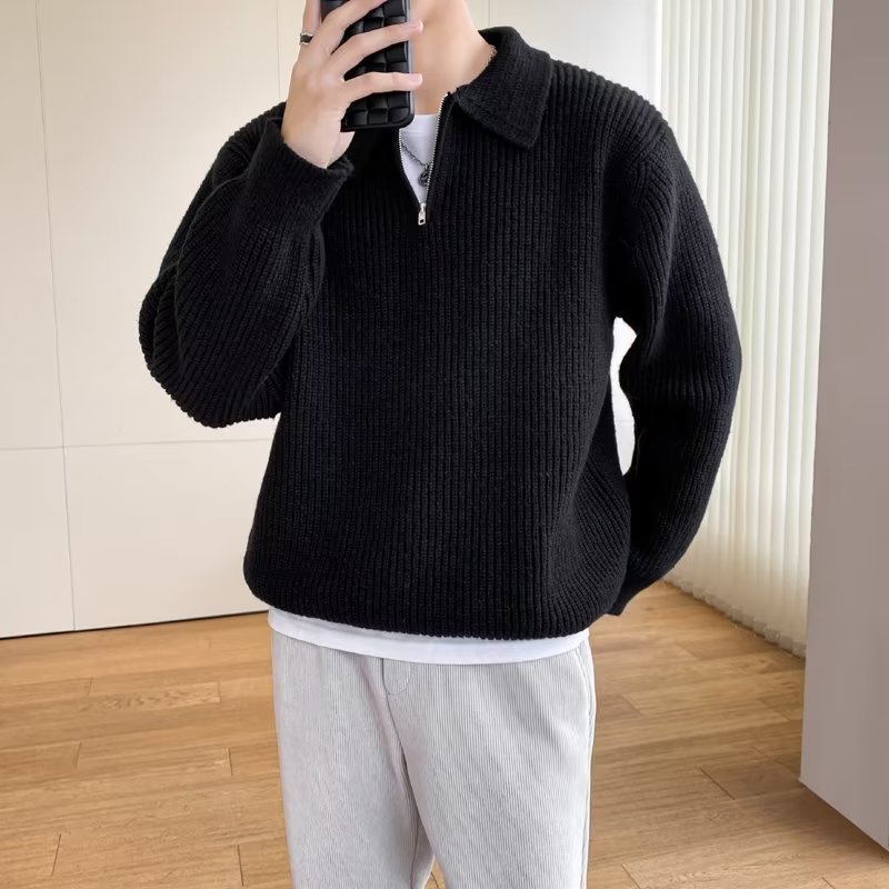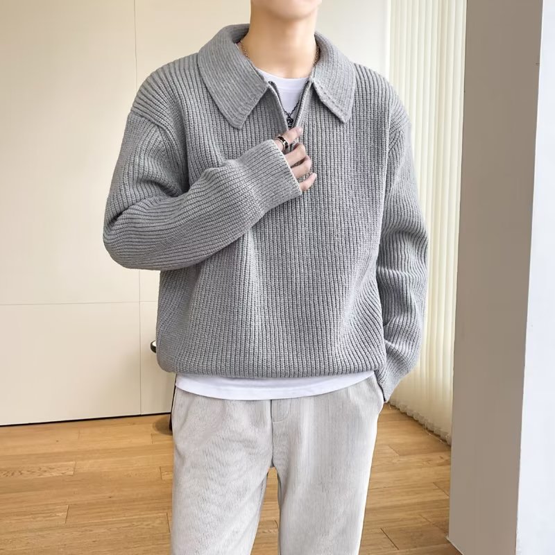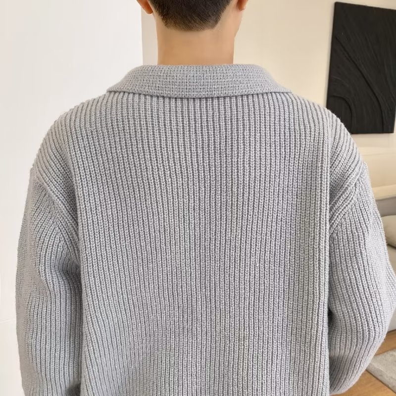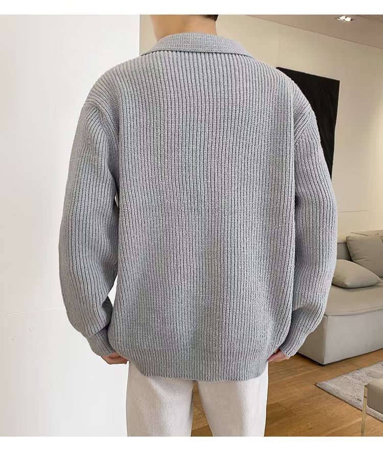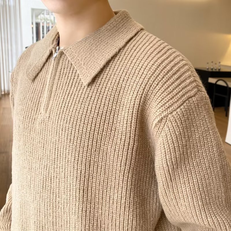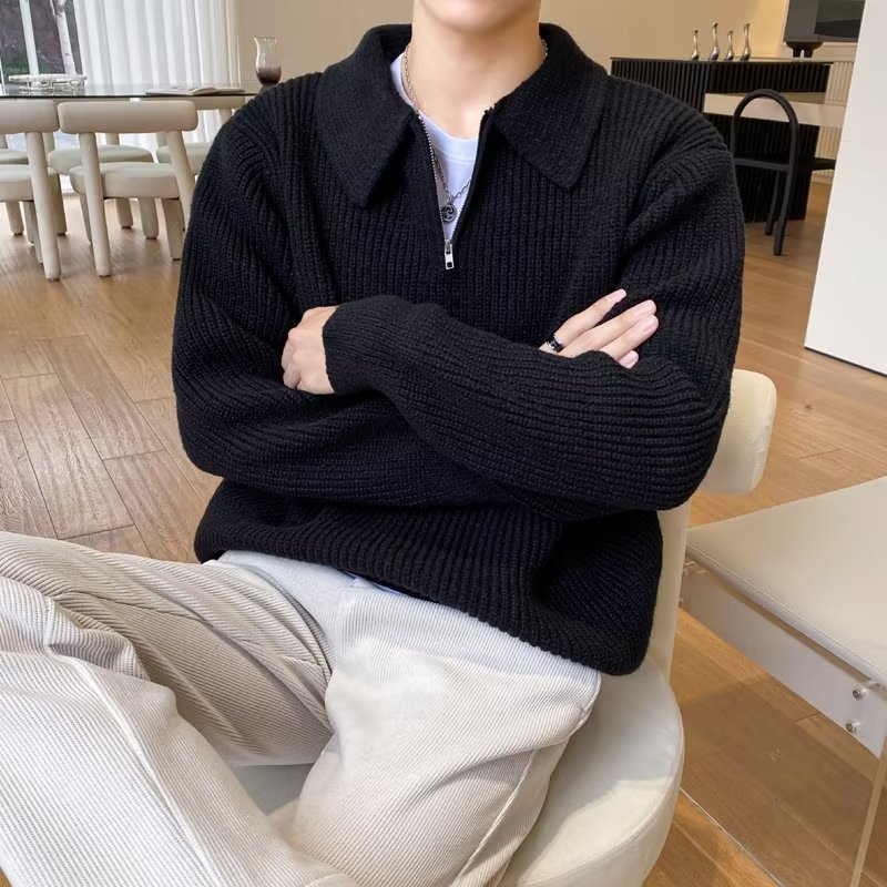 Retro coreano chic otoño e invierno estilo perezoso cuello POLO hilo suelto casual suéter de punto de manga larga para hombre