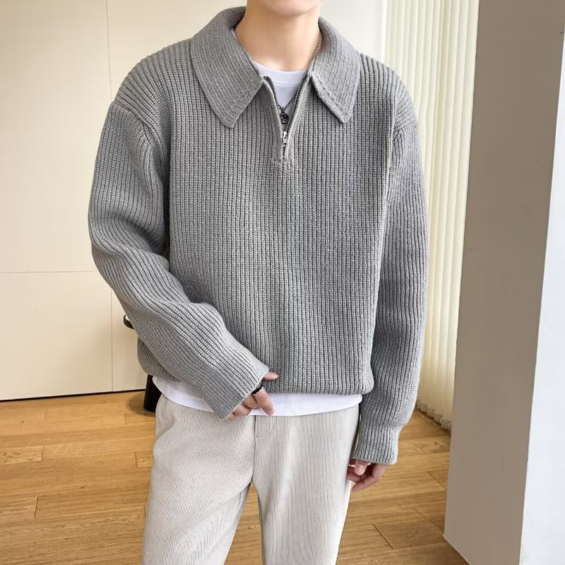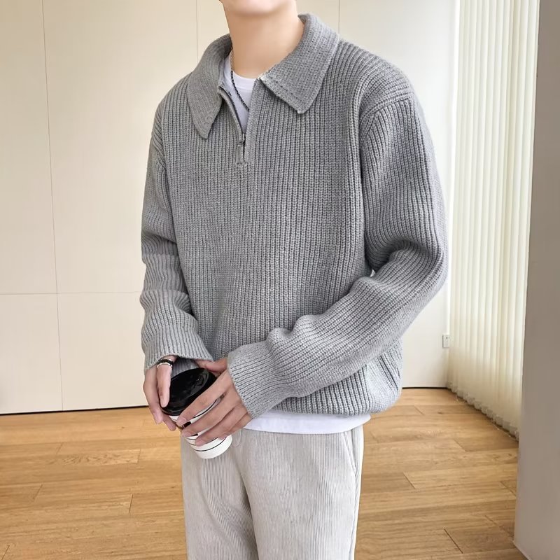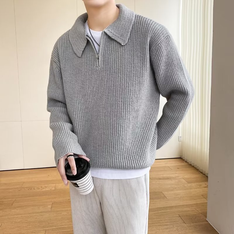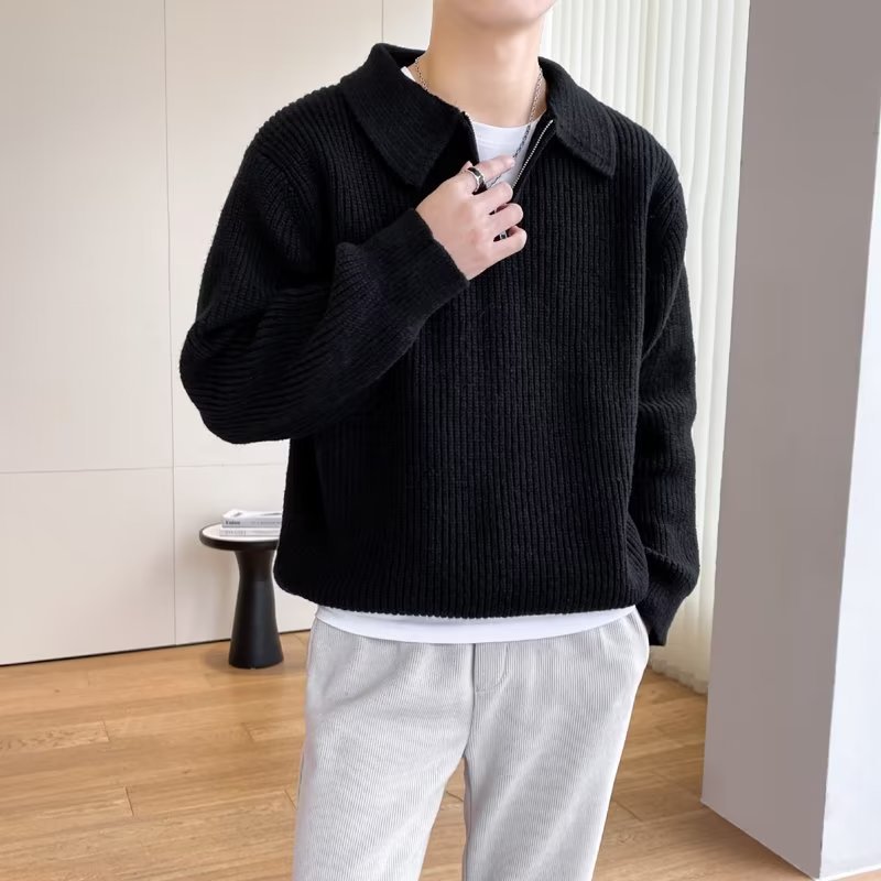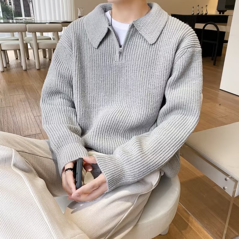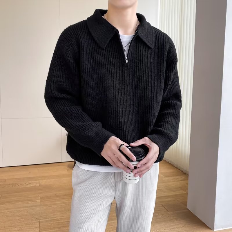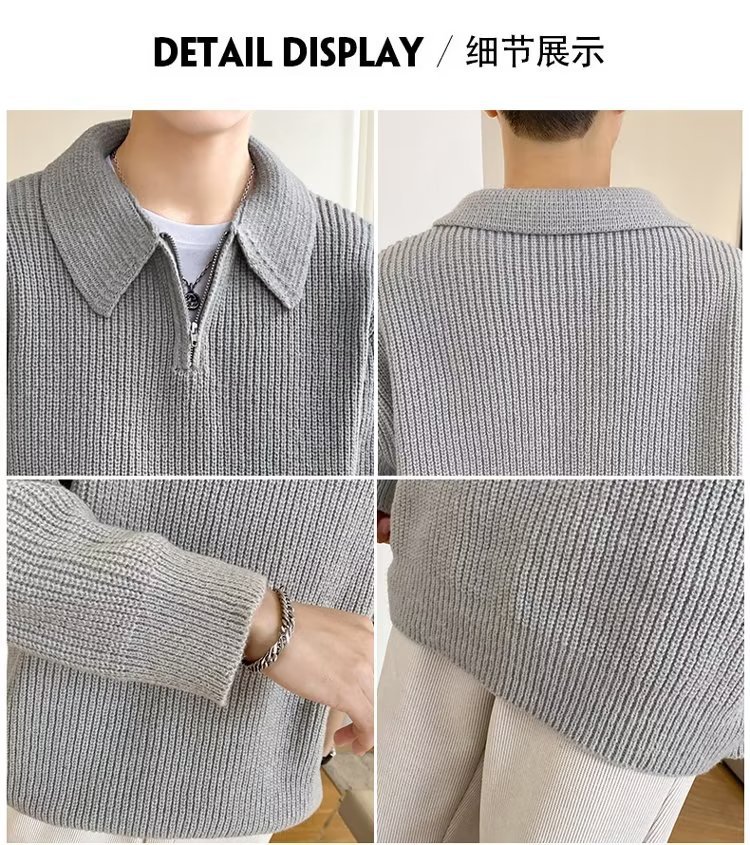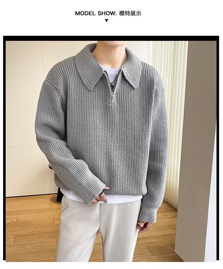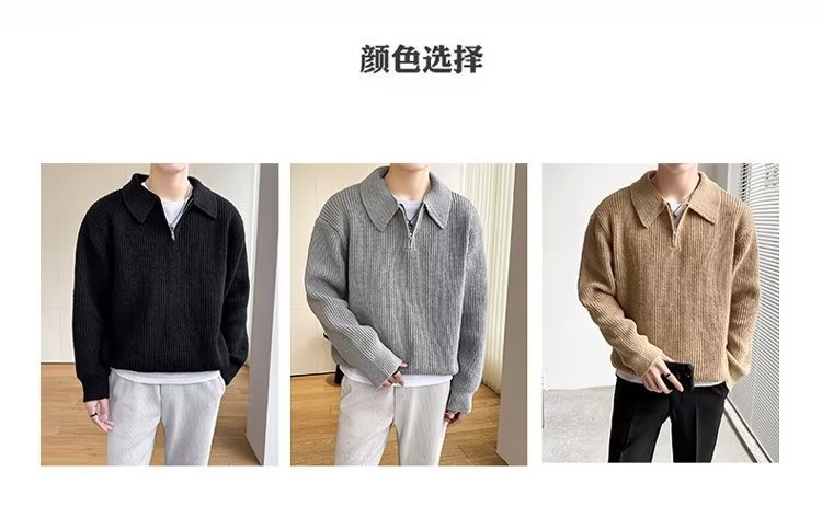 Retro coreano chic otoño e invierno estilo perezoso cuello POLO hilo suelto casual suéter de punto de manga larga para hombre