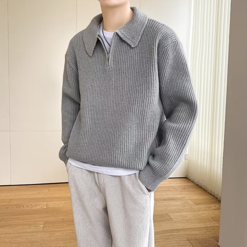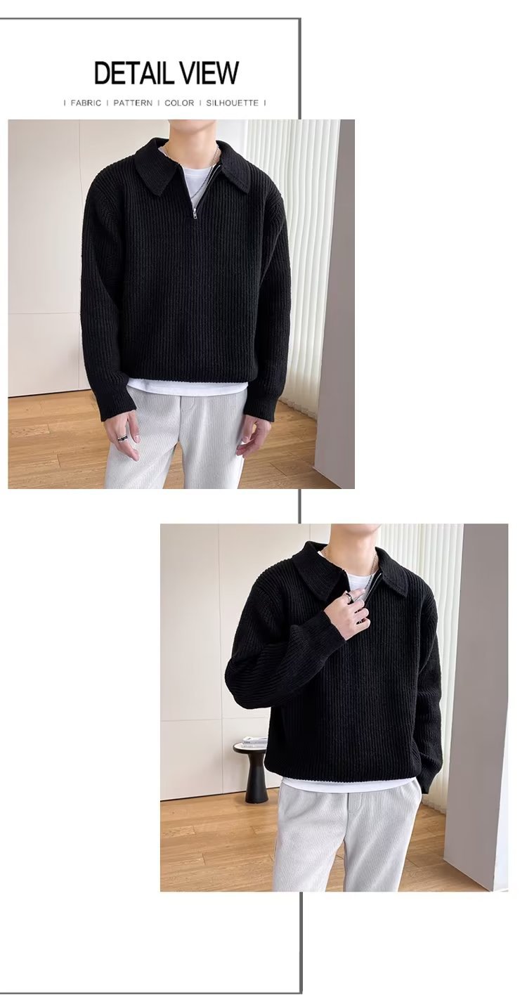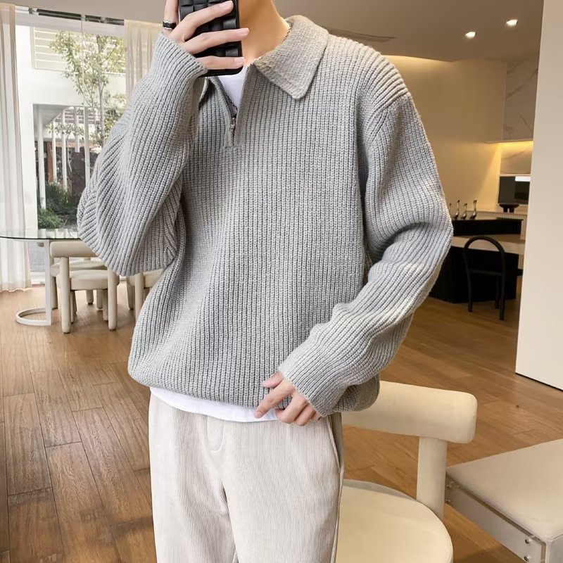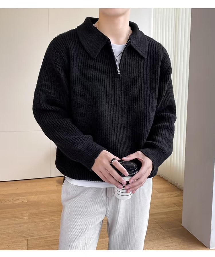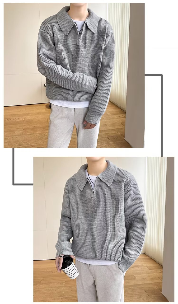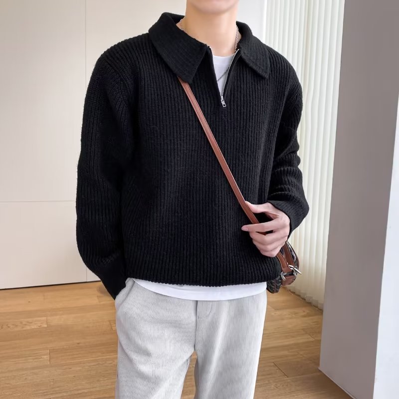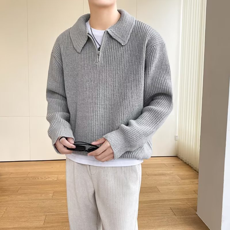 Retro coreano chic otoño e invierno estilo perezoso cuello POLO hilo suelto casual suéter de punto de manga larga para hombre