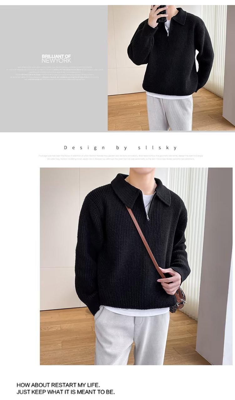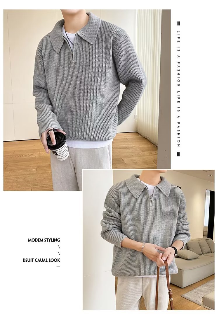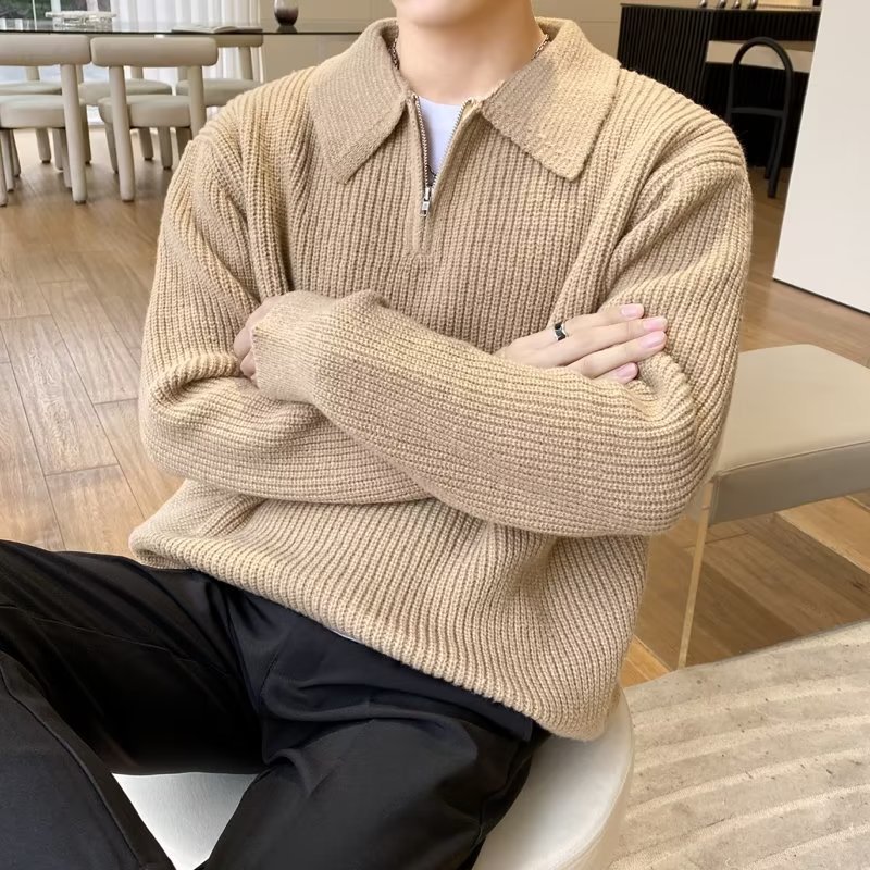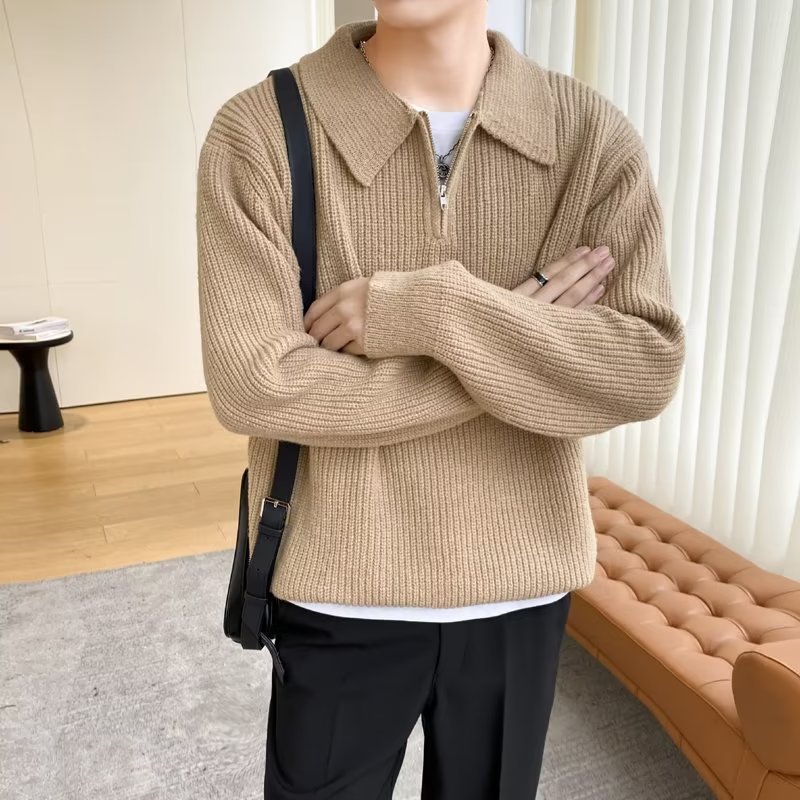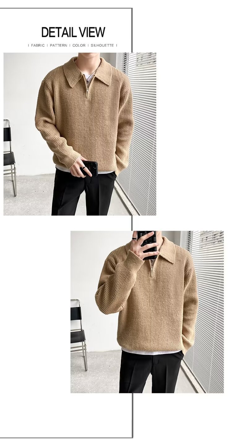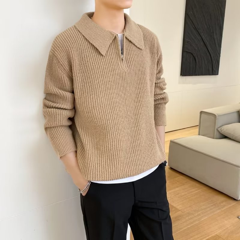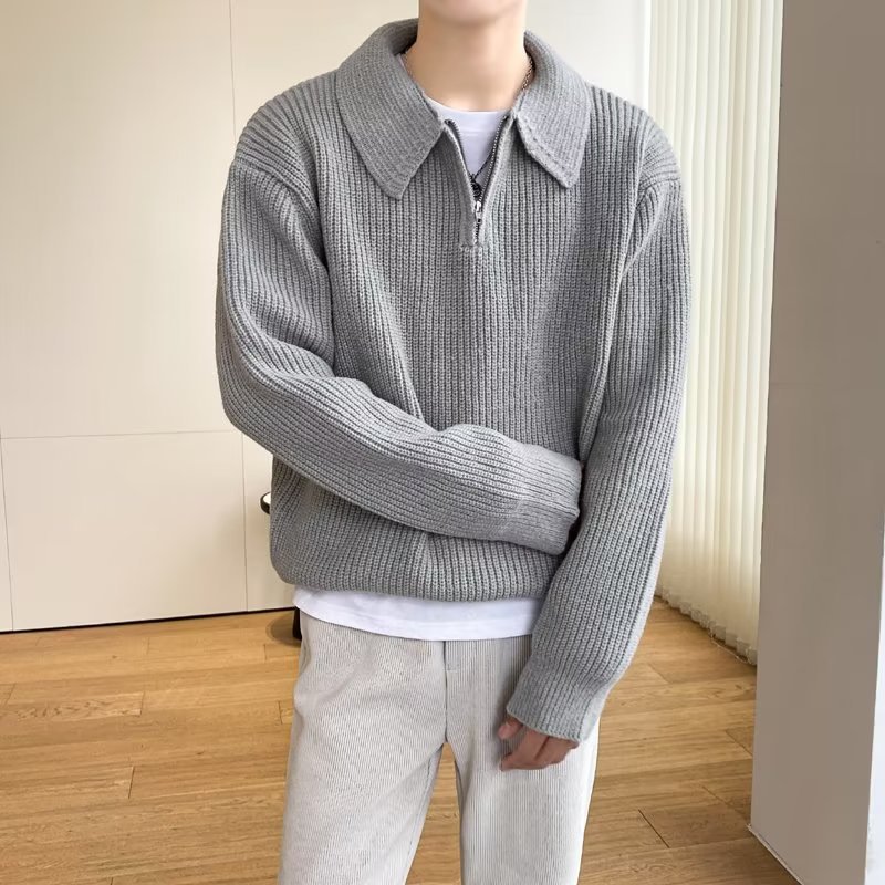 Retro coreano chic otoño e invierno estilo perezoso cuello POLO hilo suelto casual suéter de punto de manga larga para hombre